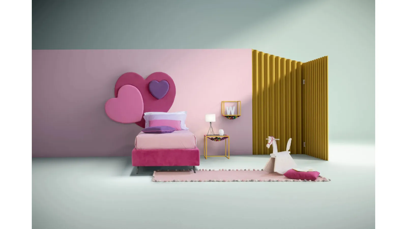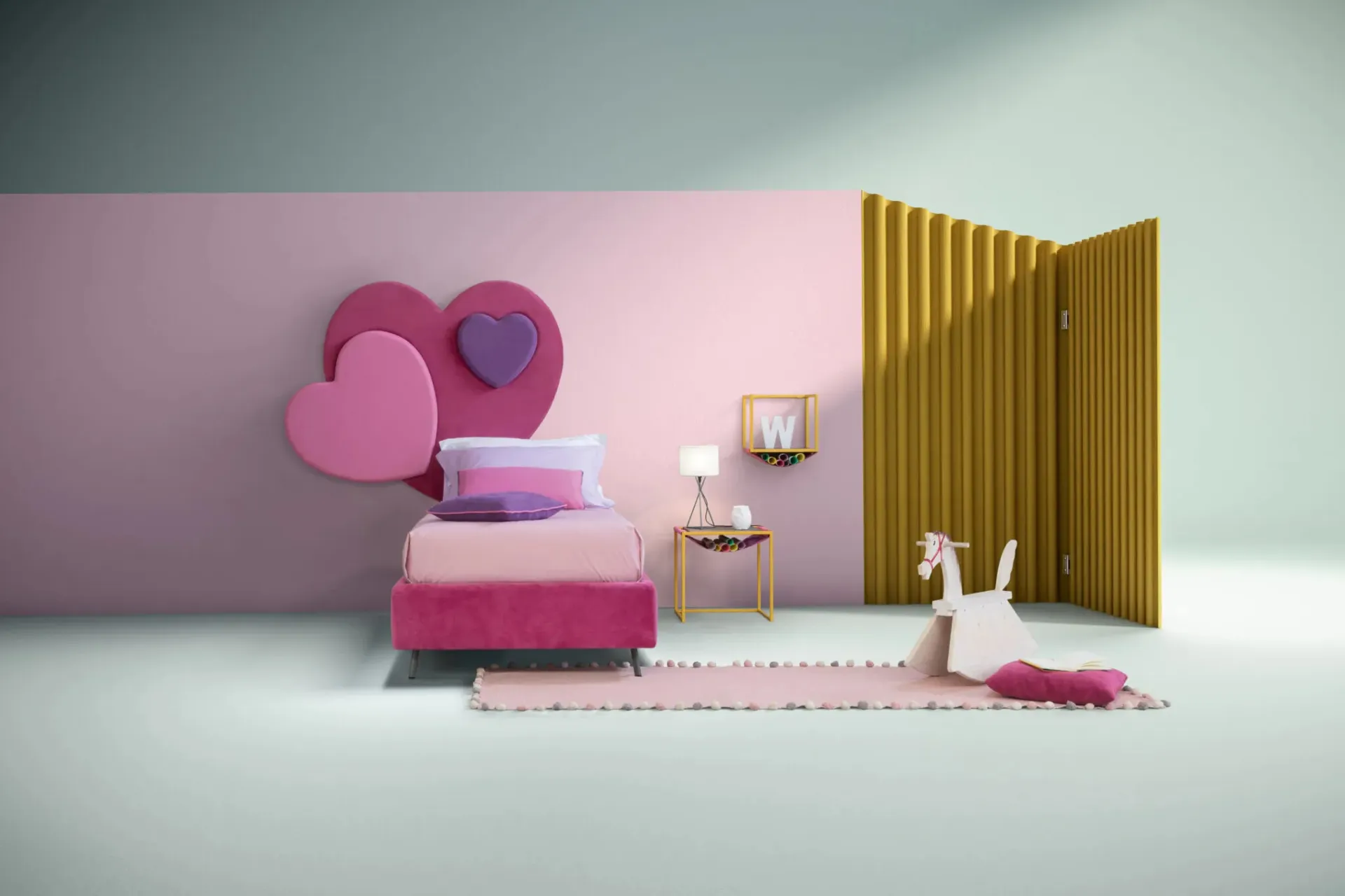 The padded single beds for children's rooms available in our store solve any space and functionality issues, while simultaneously ensuring a unique style. Discover more about the Sweet single bed by Bside in the photo: it is the solution to create a cozy, beautiful, and well-organized environment, ideal for your children. A wide range of modern fabric beds awaits you: the Bside brand offers multiple versions of beds that always meet the children's demands. Fine materials and non-toxic paints characterize the brand's proposals: if the room has limited measurements, there are different solutions available, always able to combine functionality and ergonomics.