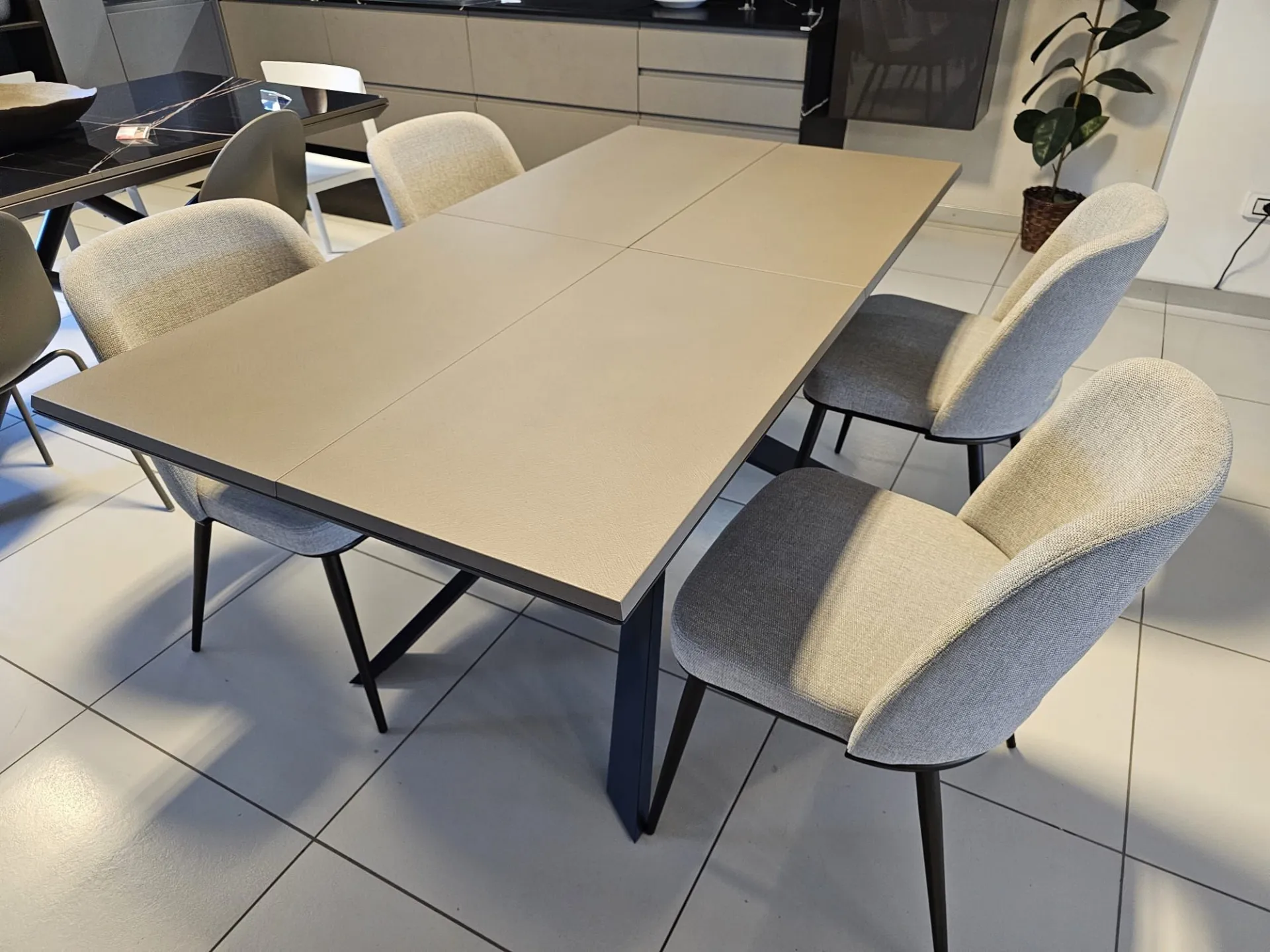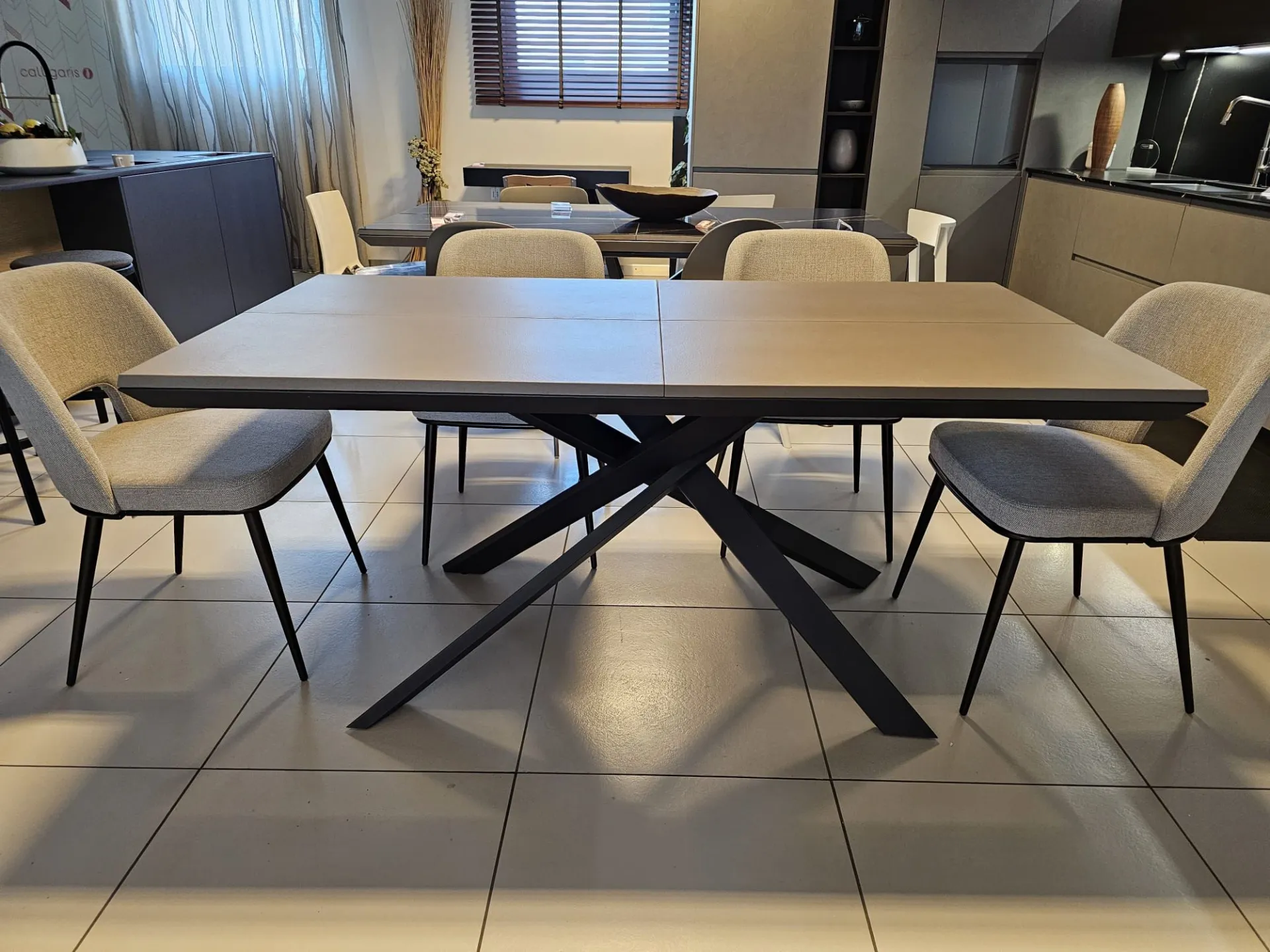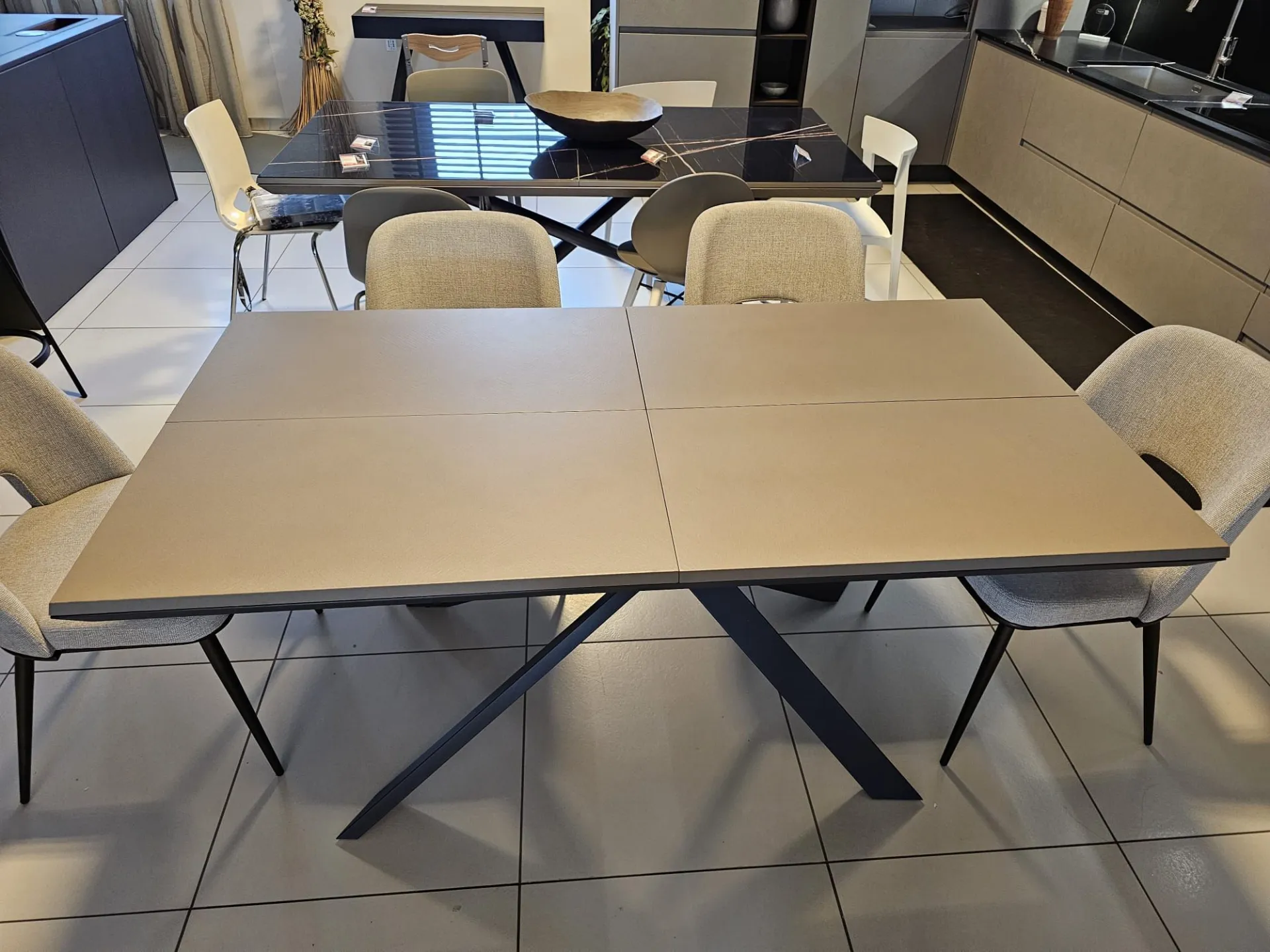 Extendable table model 4x4 with Tortora Cement CM90 top, Graphite MT98 metal frame and base CLOSED size cm L.170xP.90 OPEN size cm L.224)xP.118