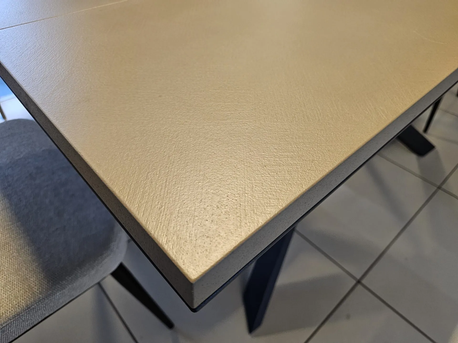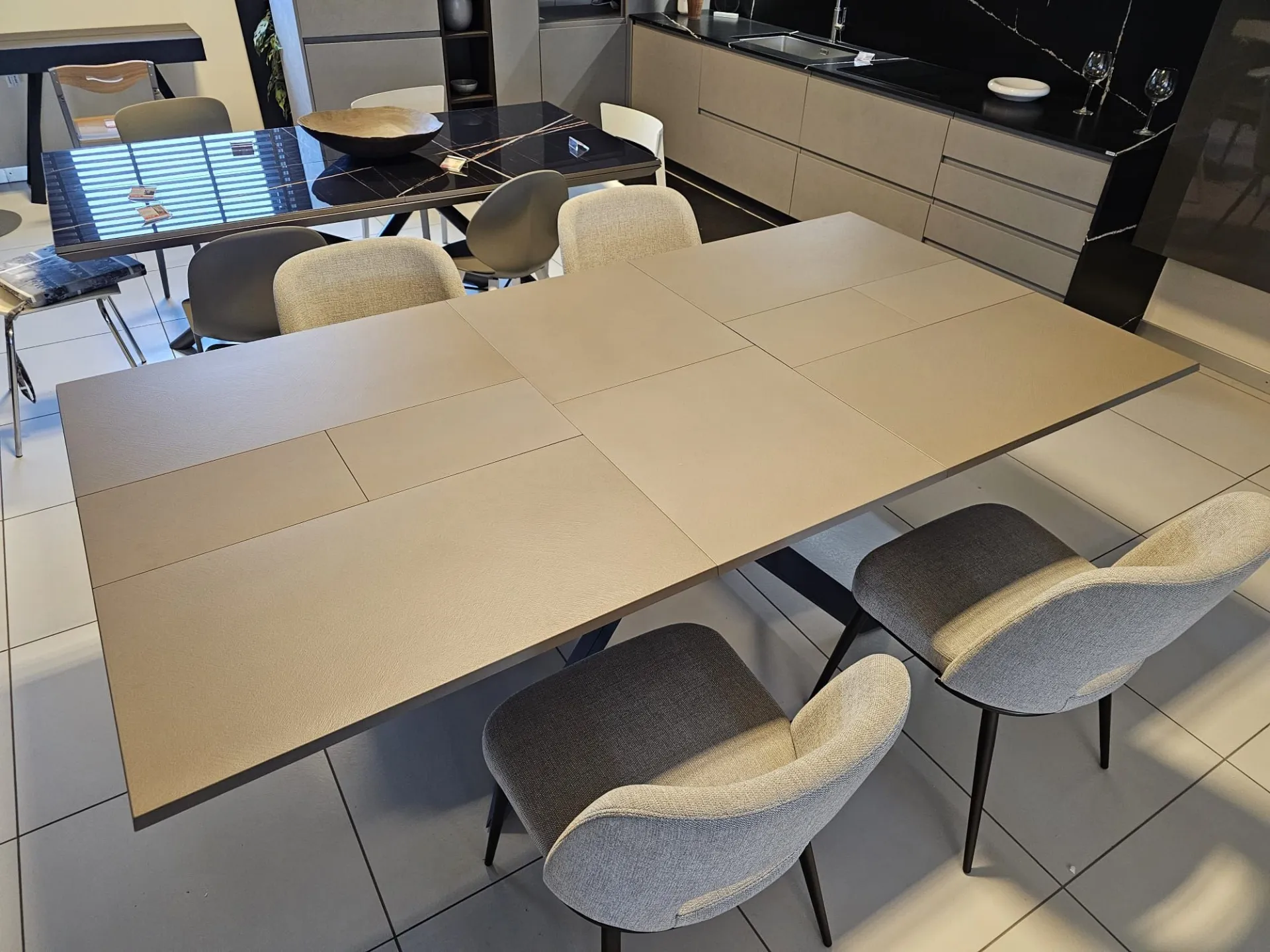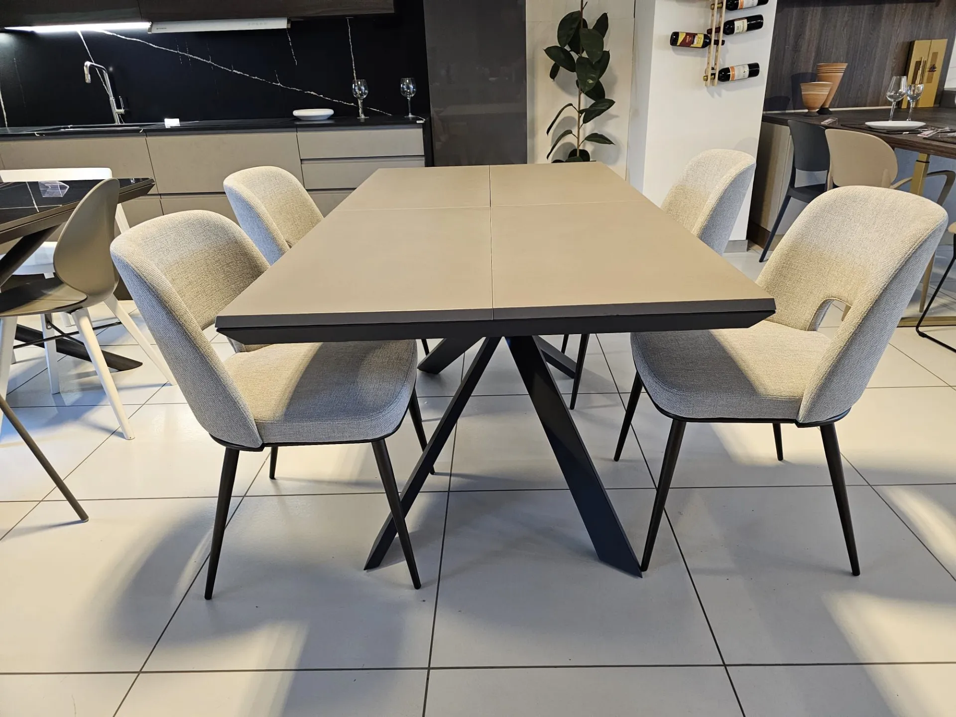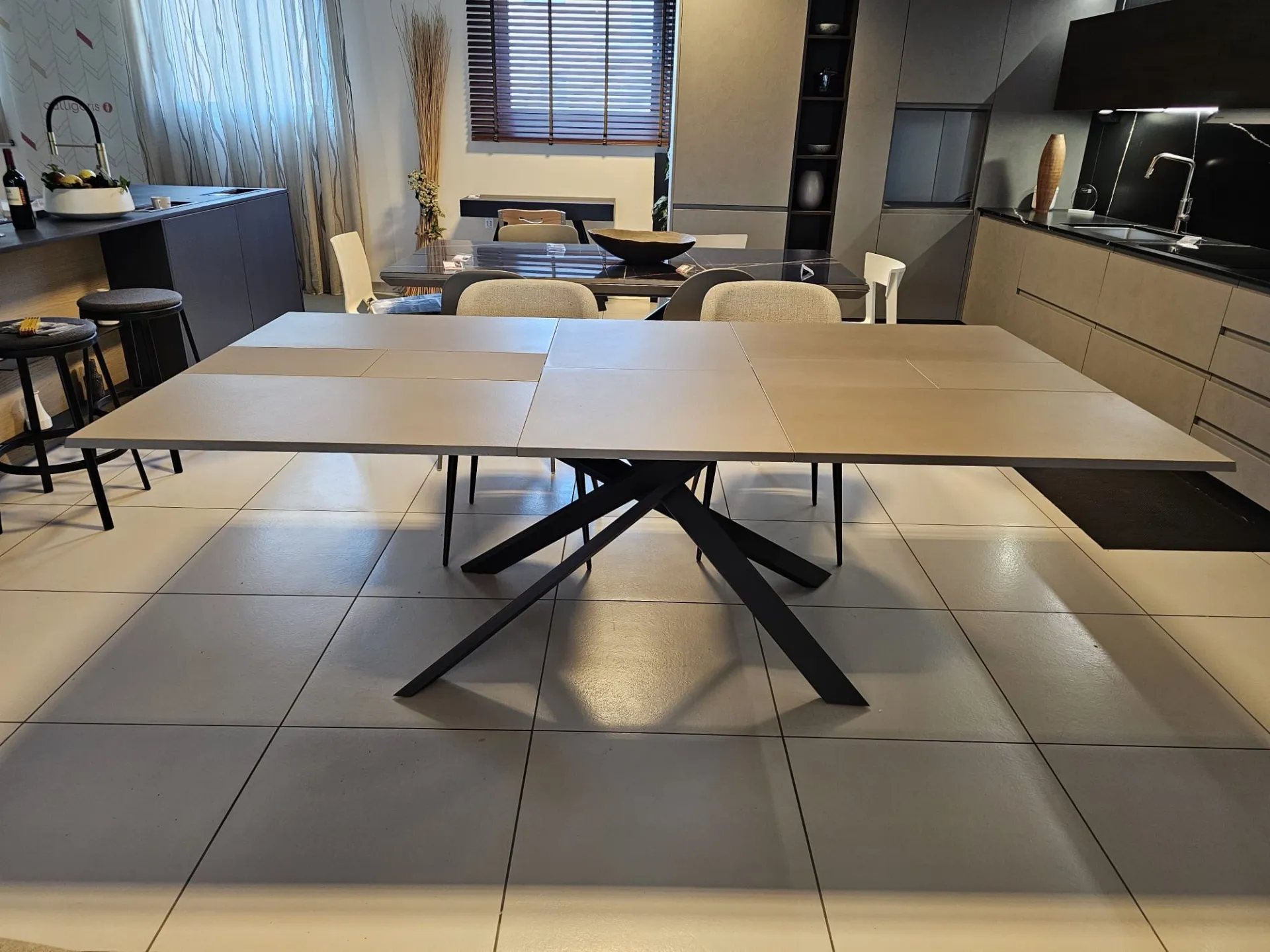Extendable table model 4x4 with Tortora Cement CM90 top, Graphite MT98 metal frame and base CLOSED size cm L.170xP.90 OPEN size cm L.224)xP.118