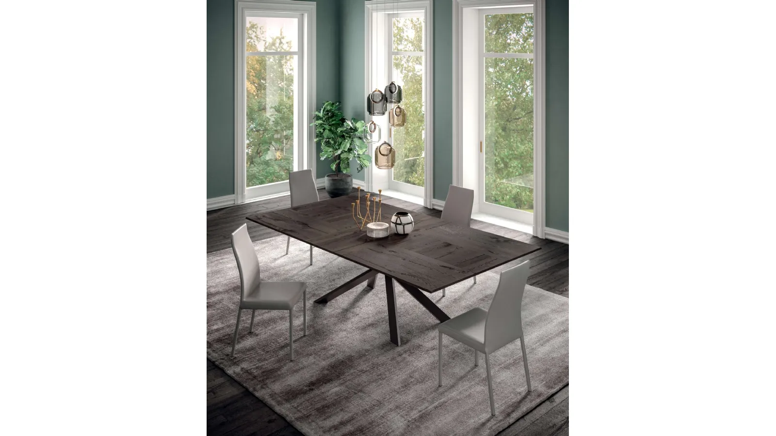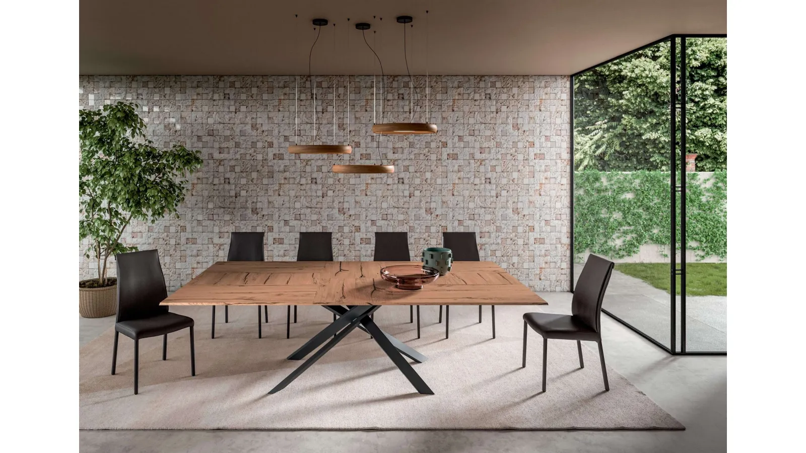 The extendable and expandable 4x4 wooden Ozzio table awaits you to complete a kitchen or dining room with modern accents.