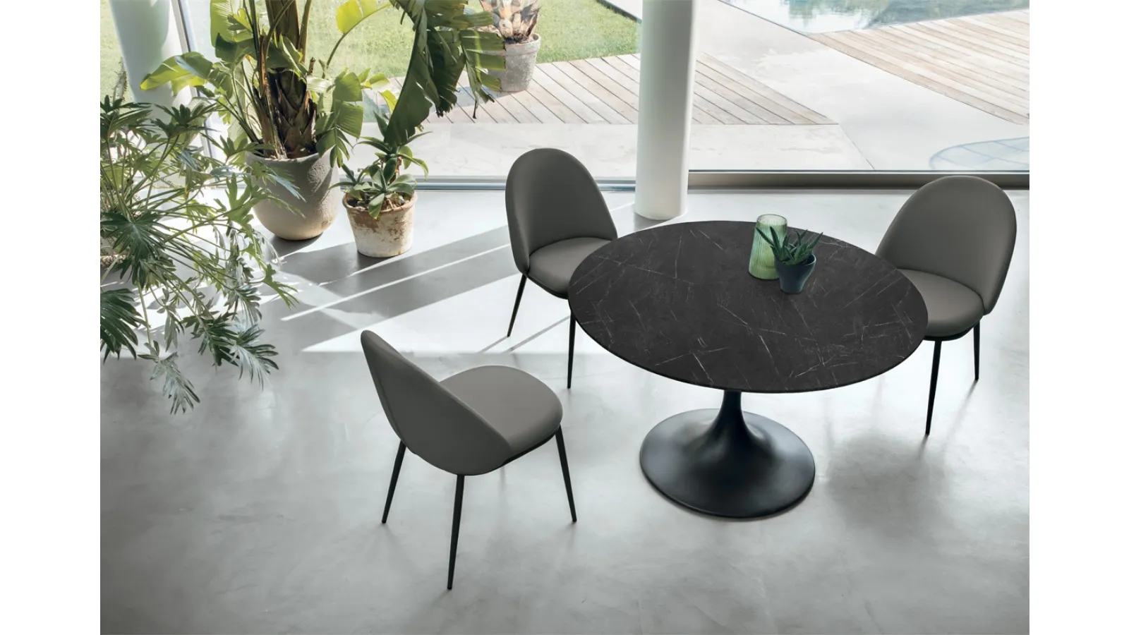 Ideal for creating unique combinations with modern seating and furnishings, the extendable tables from the brand are among the most exclusive solutions on the market, perfect for the living room and kitchen. A model like the one in the photo, paired with the right seats, will complete the style of the rooms in the house dedicated to conviviality. Aiace round table by Target Point: made of durable materials, it is characterized by the strong shapes of the top and an elegant and refined base. If you are looking for a dining table with great design, contact us to receive information and quotes on the model shown in the photo. The well-known brand Target Point, specializing in the production of furniture in stoneware, has chosen a wide range of materials, lines, and tones for its line.