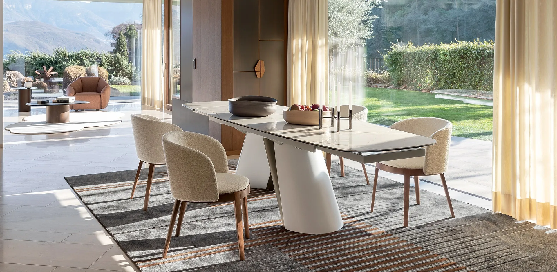 Tables are furniture elements thanks to which it is possible to embellish the living room, the kitchen or other rooms of the house, thanks to precious materials and imaginative chromatic combinations. Tables are essential furnishings in every home: complete your furnishing project and give life to the house of your dreams. Extendable models in ceramic like the one shown in the photo adapt to the most varied living contexts, being truly eclectic and resistant. Extendable Apian table by Calligaris: discover a rich catalog of dining furniture and accessories to complete your spaces, counting on various possibilities of design. Fill out the form and contact us to discover the best Home Furnishings from top manufacturers, tables and chairs under the Calligaris brand.