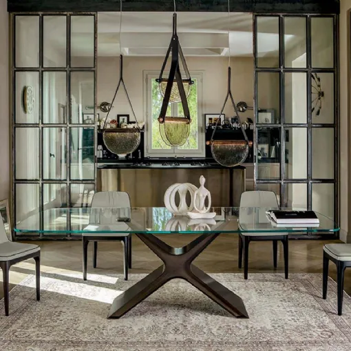 To dine around the table, for parties or simply to chat with friends and relatives, it will be essential to have a good table model at home. The Arago table by Tonin Casa, combined with the seats, embellishes the mood of the domestic rooms par excellence dedicated to conviviality. In our store you will be able to see live the most original proposals of the well-known brand, the result of passion in the furniture sector and attention to style. The dining model in the photo belongs to our vast collection of classic extendable tables by Tonin Casa, always built in quality and resistant materials. In the living room or in the kitchen, the tables are important components, which characterize the style of the room, playing a truly fundamental role. This wooden model warms the home environment thanks to its peculiar qualities of charm, optimizing spaces to perfection and fully enhancing them.