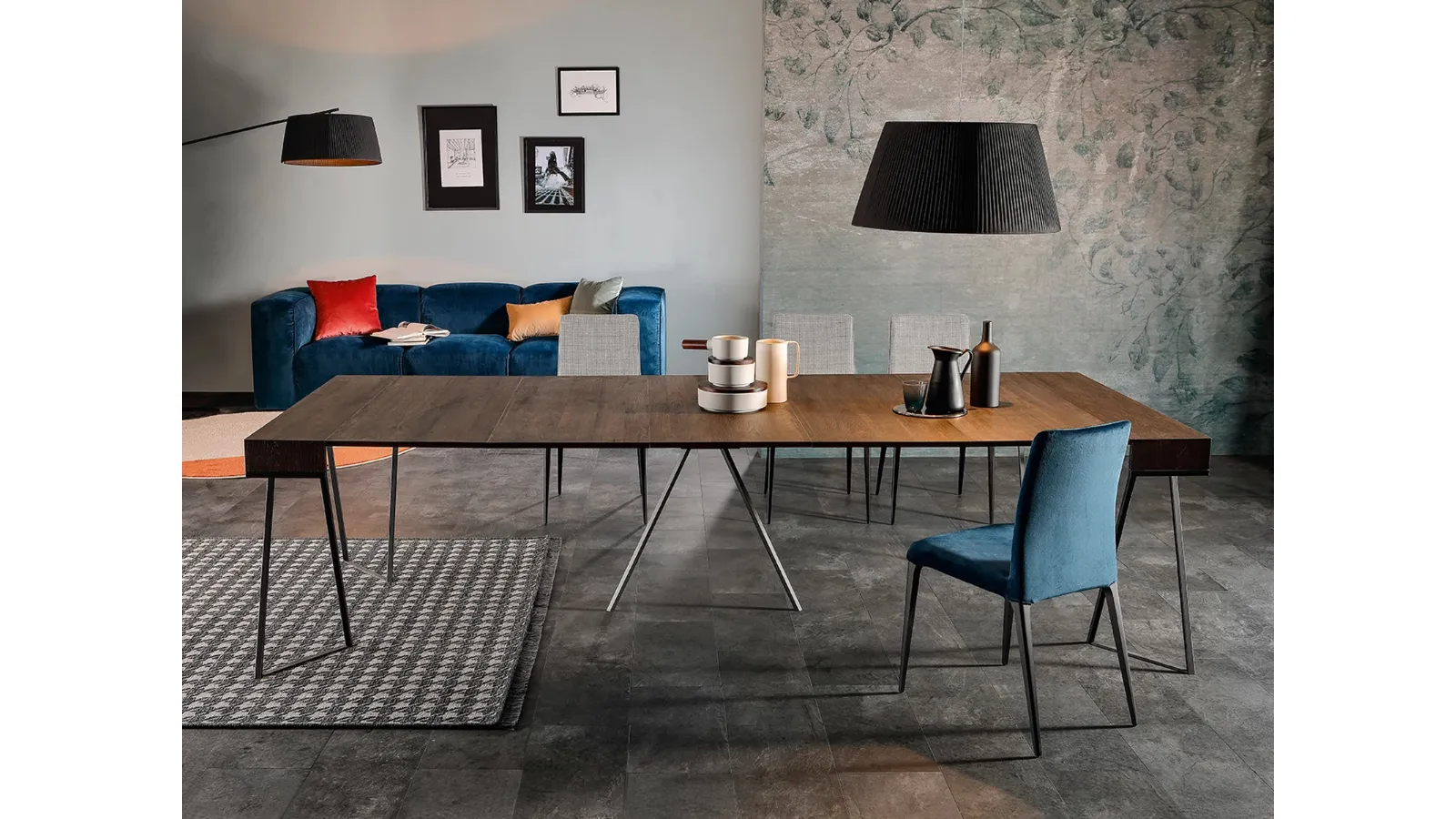 Tables are essential furniture pieces in every home: complete your furnishing concept and bring to life the house you have always wanted. Fill out the form and contact us to discover the best brands in home furnishings, coffee tables and chairs branded Tonin Casa. Tables are furnishing elements with which it is possible to complete the living room, kitchen, or other rooms of the house, thanks to quality materials and imaginative color combinations. Wood console models, like the one shown in the photo, adapt to various living contexts, being truly eclectic and robust. The extendable Beverly console from Tonin Casa: discover a wide range of furniture and dining accessories to complete your interiors, with various customization options available.
