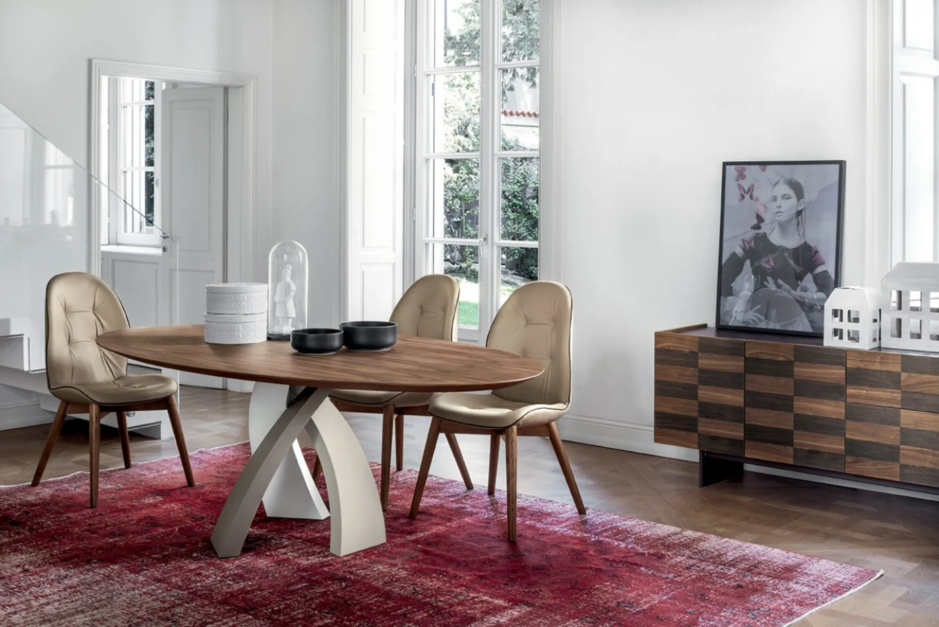 Il Tavolo Eliseo di Tonin Casa si distingue per la sua raffinata estetica e l'ingegneria dei materiali. Il piano, dalla distintiva forma ellittica, è offerto in una varietà di essenze lignee pregiate o in vetro temperato, saldato con precisione a raggi UV su una robusta piastra d'acciaio. La sua base, un'opera di design in metallo curvato e verniciato, assicura stabilità e un impatto visivo leggero. Le opzioni di finitura per il piano spaziano dal Noce Canaletto al Rovere Scuro, Frassino nero, e un'ampia gamma di marmi come Alaska White e Statuario Altissimo, oltre a vetri trasparenti e fumé. La base è disponibile in eleganti tonalità opache come Bianco, Nero, Bronzo pietra e Fango, permettendo un'integrazione armonica in ogni ambiente. Questo pezzo d'arredo è concepito per durare, con una cura meticolosa nella scelta dei componenti e nei processi produttivi.