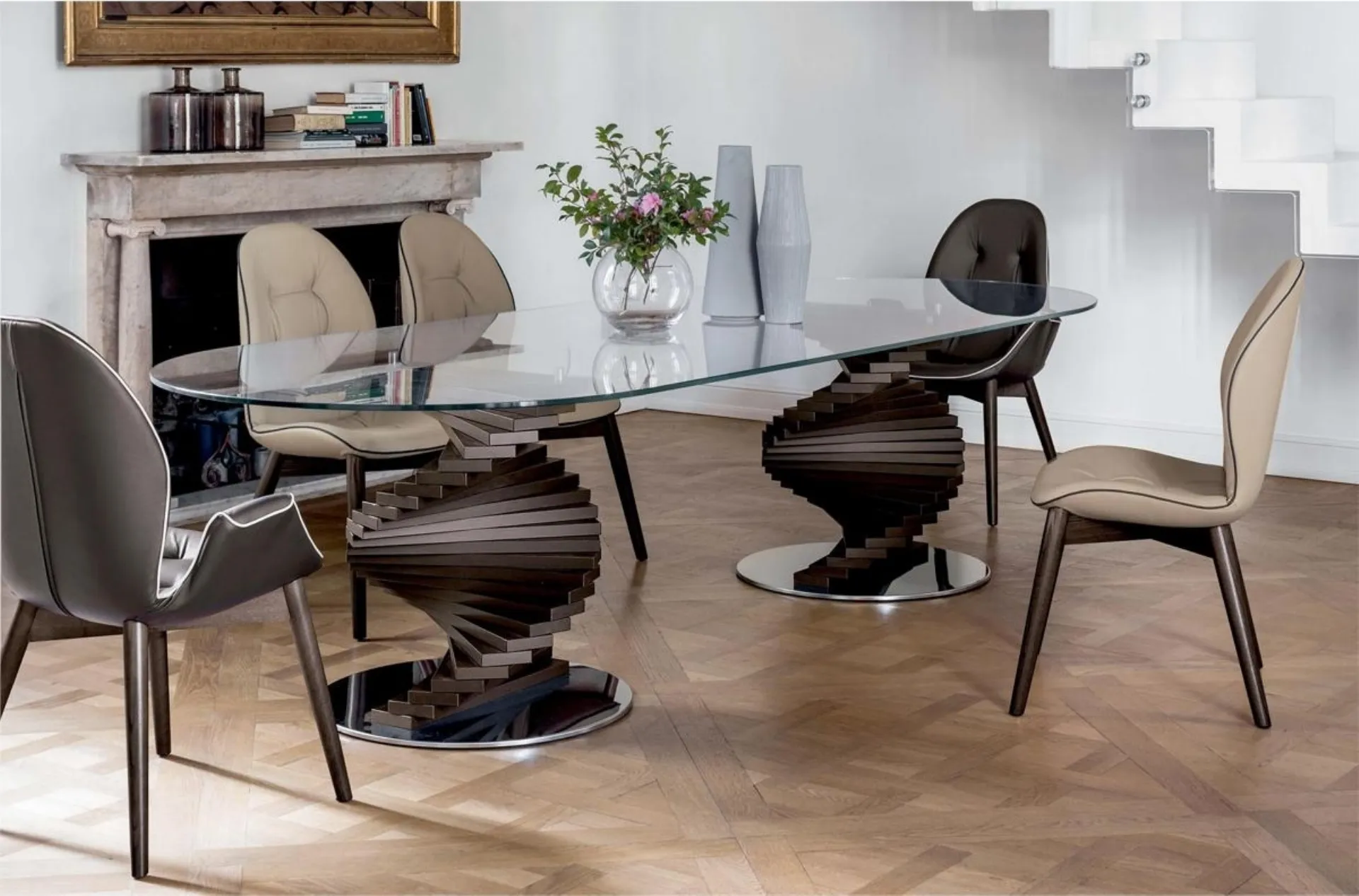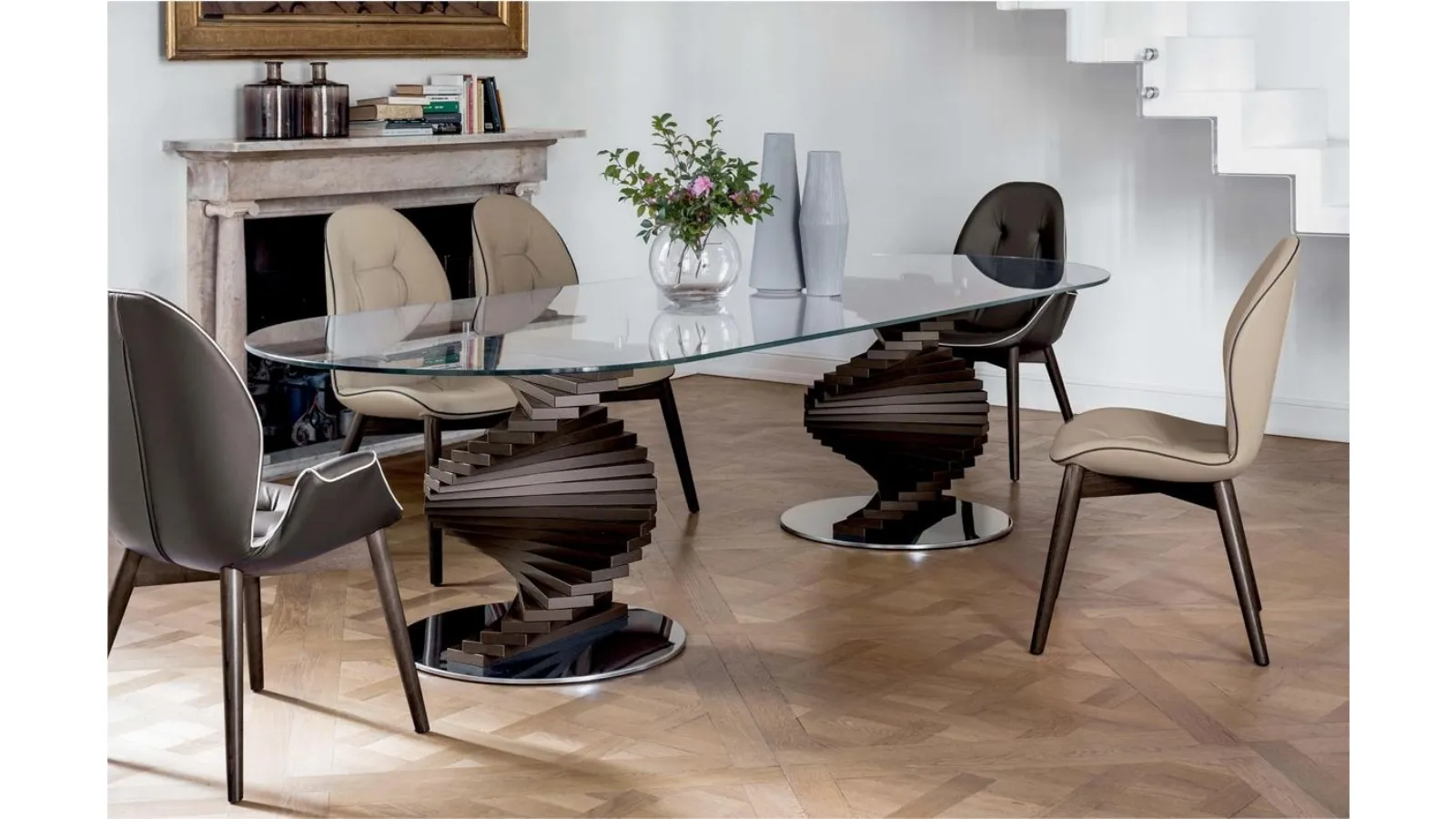 Il magnifico tavolo Big Firenze di Tonin Casa è ora disponibile per essere ammirato presso il nostro showroom Rusconi Arredamenti s.r.l. a Cirimido. Con la sua inconfondibile base scultorea, composta da doghe in massello di noce Canaletto o rovere scuro disposte a spirale, questo tavolo non è solo un mobile, ma una vera opera d'arte che cattura lo sguardo. Il piano in vetro, proposto in diverse finiture e dimensioni, ne esalta la leggerezza e l'eleganza. Il Big Firenze, disponibile con base singola o doppia, è la dimostrazione dell'impegno di Tonin Casa per precisione, qualità e praticità, perfetto per chi cerca un elemento d'arredo di grande impatto. Siamo il punto di riferimento per l'arredamento di alta qualità nella provincia di Como, offrendo soluzioni che uniscono stile e funzionalità.
