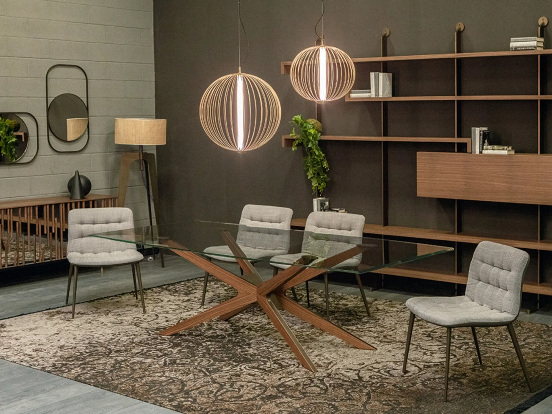 The tables are furnishing elements thanks to which it is possible to enrich the living room, the kitchen area or even other domestic rooms, thanks to quality materials and imaginative color combinations. Fill out the form and contact us to discover the Home Furniture of the best brands, tables and chairs with the Tonin Casa brand. Tables are essential pieces of furniture in every home: complete your furnishing project and give life to the house you have always dreamed of. The fixed glass models like the one in the photo adapt to the most varied spaces and living environments, being truly multifaceted and robust. Blade table by Tonin Casa : discover a rich catalog of furniture and dining accessories to complete your rooms by counting on various customization possibilities.
