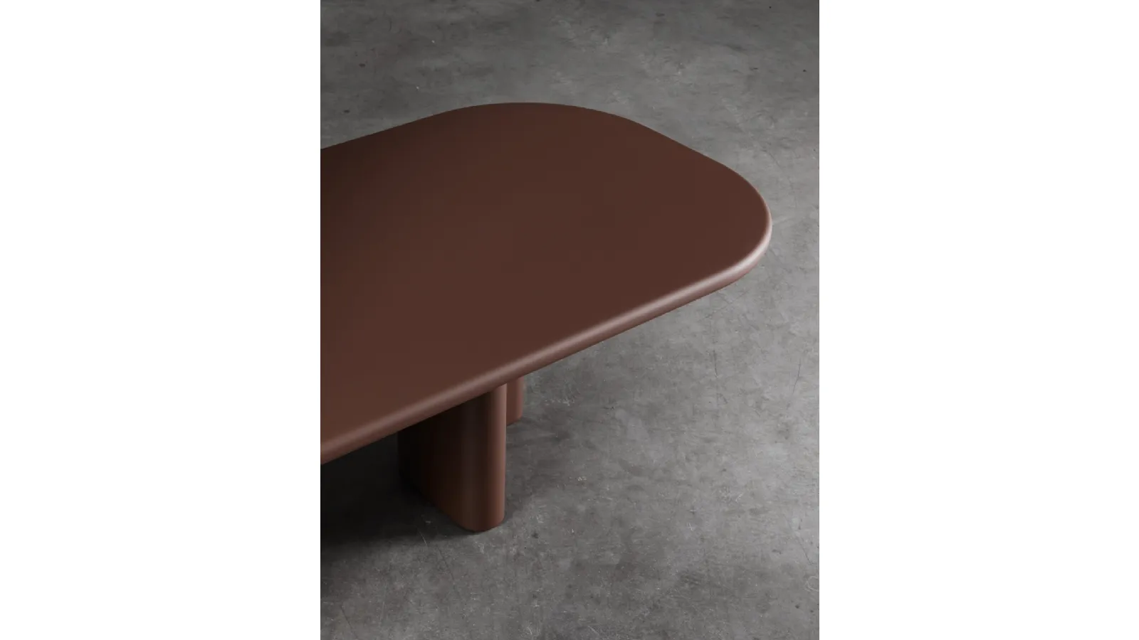 Il tavolo Bonbon si distingue per la sua concezione strutturale avanzata e un'estetica ricercata. Le sue gambe sinuose non sono solo un elemento di design, ma contribuiscono a un dinamico gioco di volumi e luci, conferendo al pezzo una presenza scenica marcata. La robustezza è garantita dagli spessori calibrati, rendendolo adatto a integrare con armonia sia ambienti residenziali che contesti contract. È disponibile in una pluralità di dimensioni, inclusi formati rettangolari e circolari, per adattarsi a diverse esigenze spaziali. Le opzioni di finitura spaziano dal gres porcellanato di alta qualità (con varianti come Calacatta Black e Travertino Navona) alle superfici laccate, proposte in un'estesa palette cromatica che include tonalità dal Blu segnale al Zucca, offrendo ampie possibilità di personalizzazione. La modularità e le opzioni di personalizzazione avanzate rendono questo tavolo la scelta ideale per progetti d'arredo su misura, rispondendo a specifiche esigenze funzionali ed estetiche.