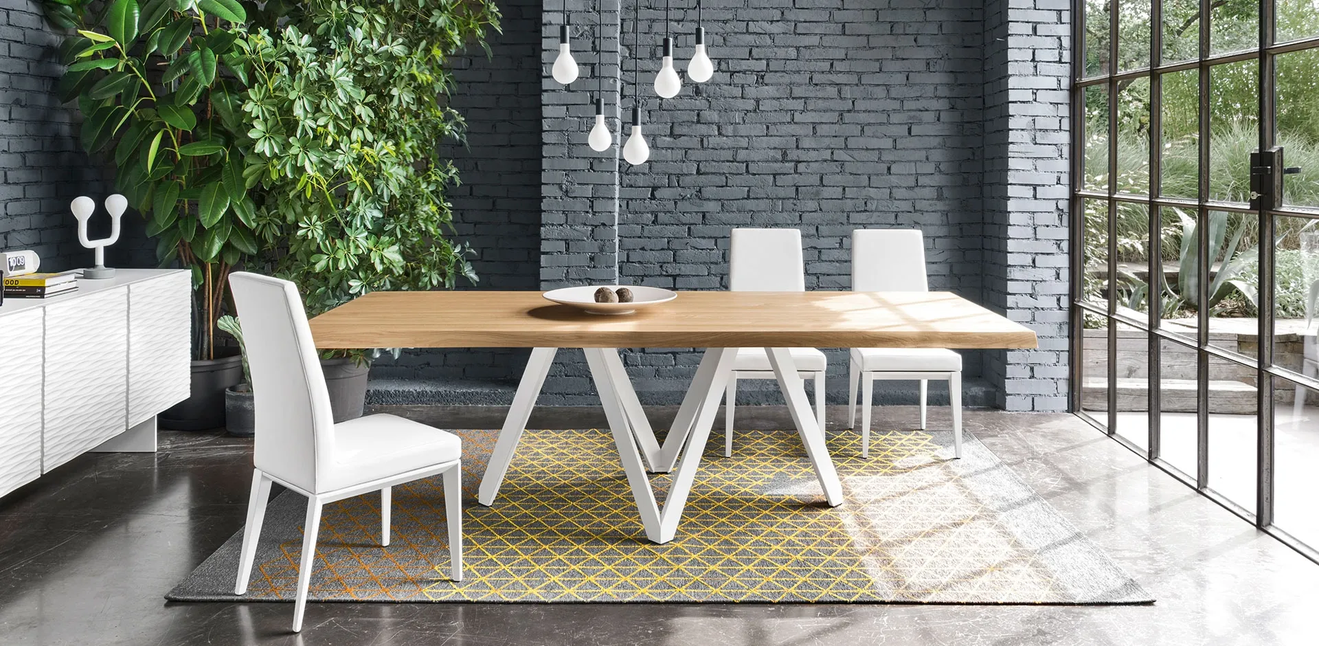 Fixed wooden models like the one visible in the photo adapt to various spaces and living environments, being truly versatile and robust. Tables are furnishing components with which you can enrich the living room, kitchen, or other areas of the house, thanks to fine materials and imaginative color combinations. Calligaris Cartesio wooden table: discover a rich catalog of dining furniture and accessories to complete your interiors, with various possibilities for customization. Tables are essential furniture in every home: complete your furnishing project and bring to life the house of your dreams. Fill out the form and contact us to discover the best brands in home furnishing, including tables and chairs by Calligaris.