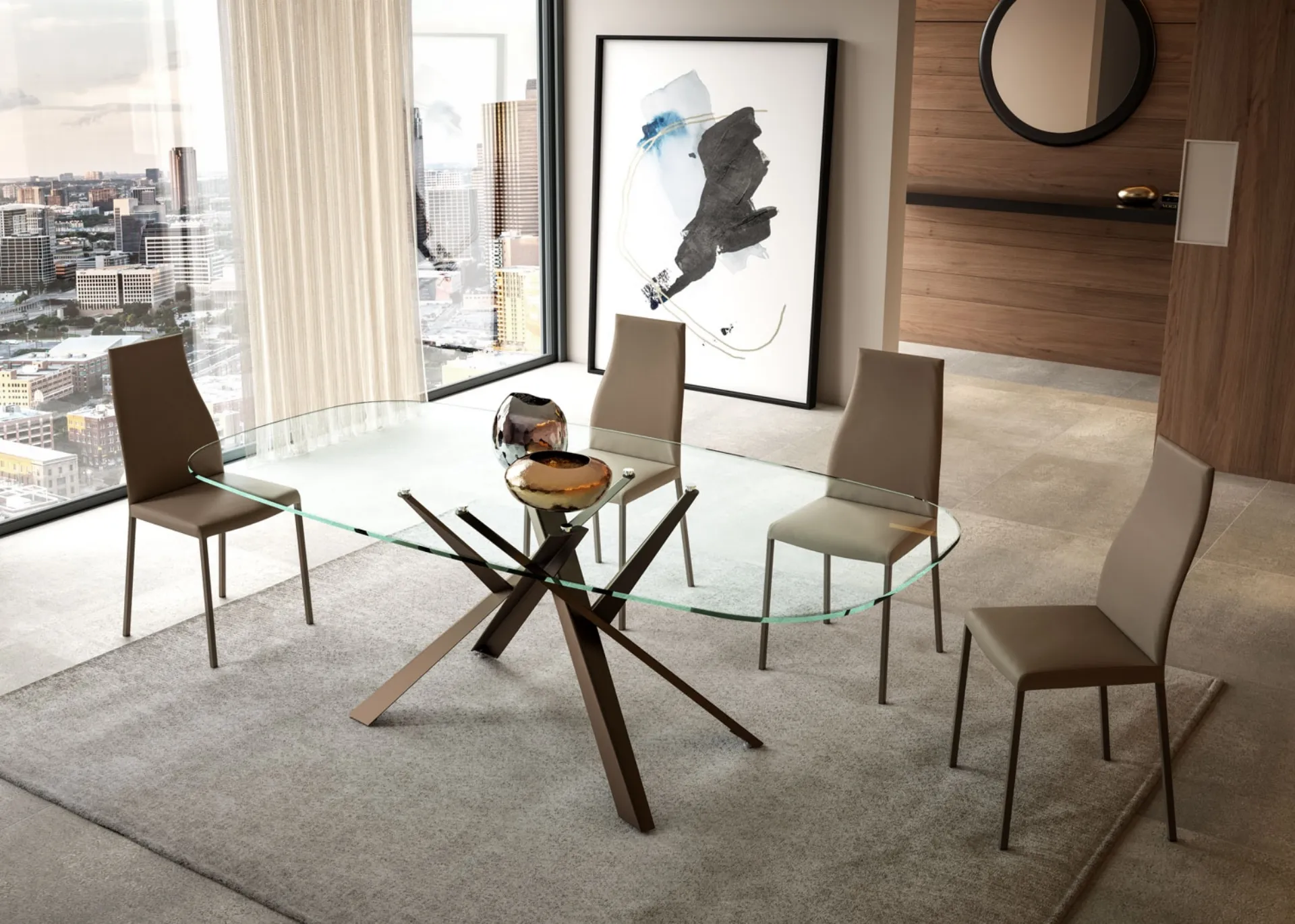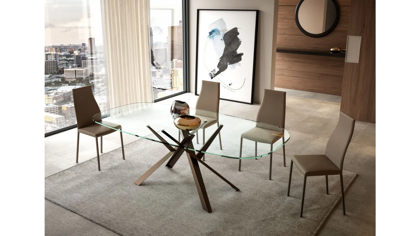 Tables are essential pieces of furniture in every home: complete your furnishing concept and give life to the home you've always wanted. Fill out the form and contact us to discover the Home Furnishings of the best manufacturers, tables and chairs with the Easyline brand. Tables are pieces of furniture thanks to which it is possible to enrich the living room, the kitchen area or even other rooms in the house, thanks to quality materials and imaginative color combinations. The fixed glass models like the one shown in the photo adapt to the most varied living contexts, being truly multifaceted and robust. Diago table by Easyline : discover a rich range of dining furniture and accessories to complete your spaces counting on various customization possibilities.