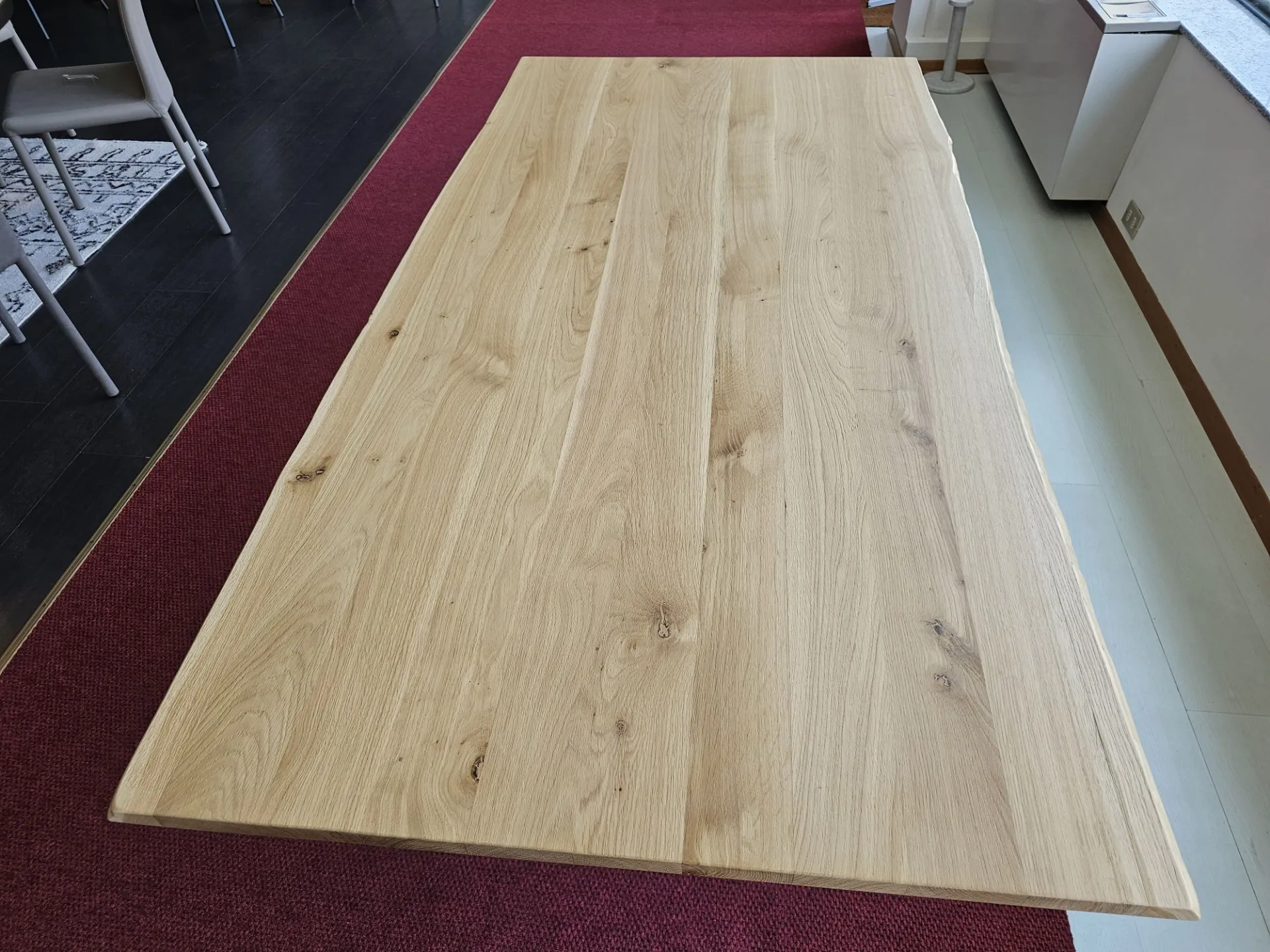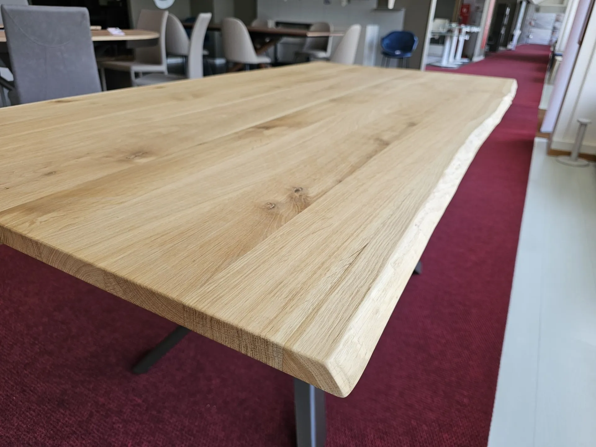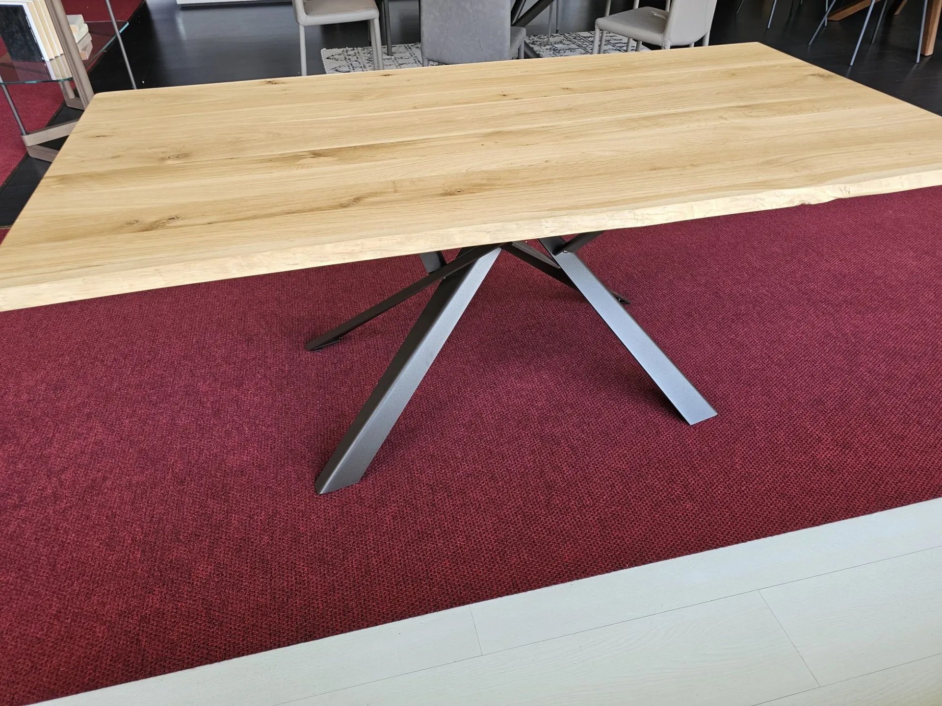 Fixed table model DIAGO, top in solid oak wood with debarked edge, base in bronze painted MT97 metal. MEASUREMENTS: 180x90x74h cm. Contact us for more information!