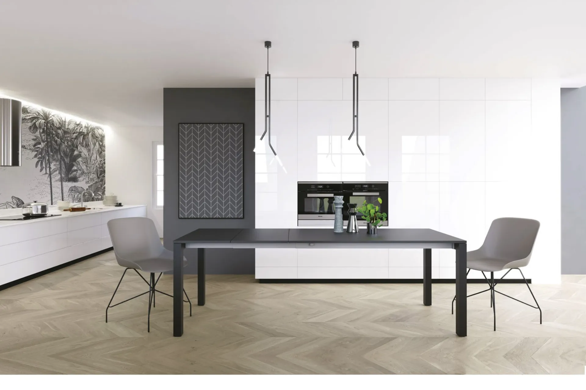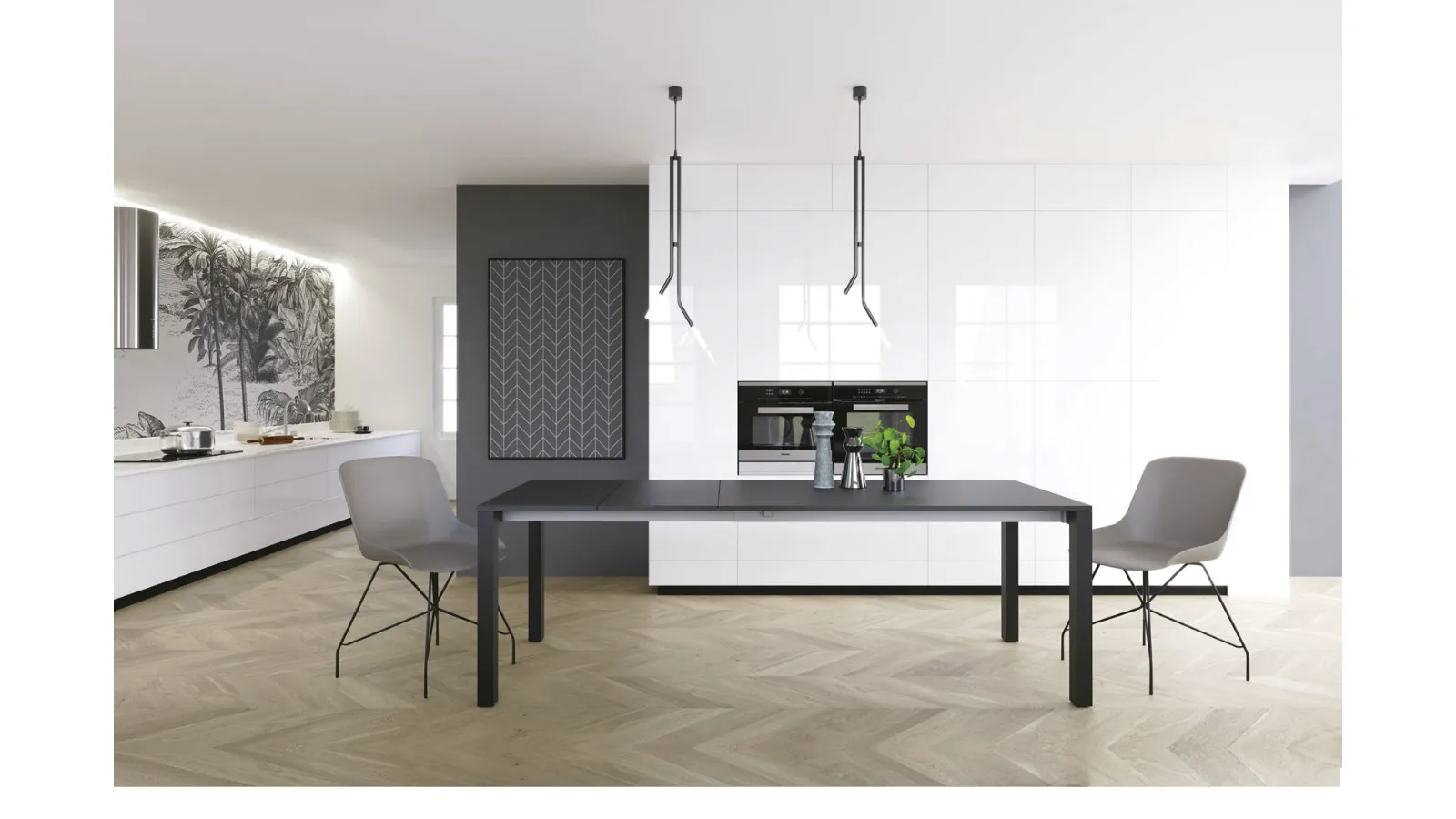 One of our extendable table models will be able to enhance your furniture concept with functionality and style. A respectable table must be made of first-rate materials, so that it is durable and preserves over time the aesthetic features that distinguish it. Discovery extendable table in melamine by Zamagna: in our showroom, a nearly endless choice of beautifully designed compositions is waiting for you. Tables are among the most important furniture and accessory items in the living room and kitchen area, environments dedicated to hospitality where one socializes with family and friends. If you want to ensure a high aesthetic content in your home spaces, but also optimize the space, then our solutions are perfect for you. The exclusive Zamagna brand offers a rich catalog of extendable kitchen tables, including those ideal for perfectly enhancing modern premises.