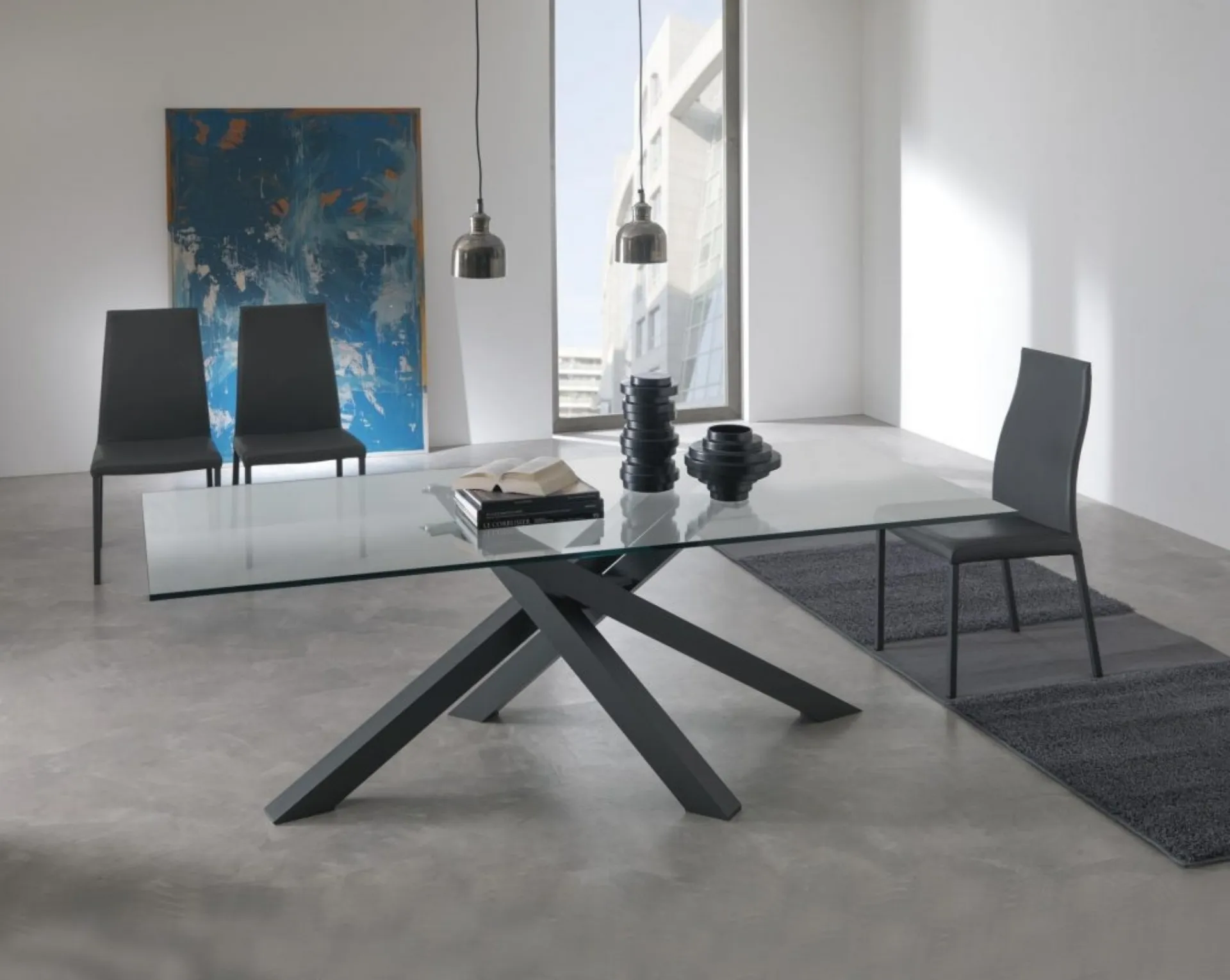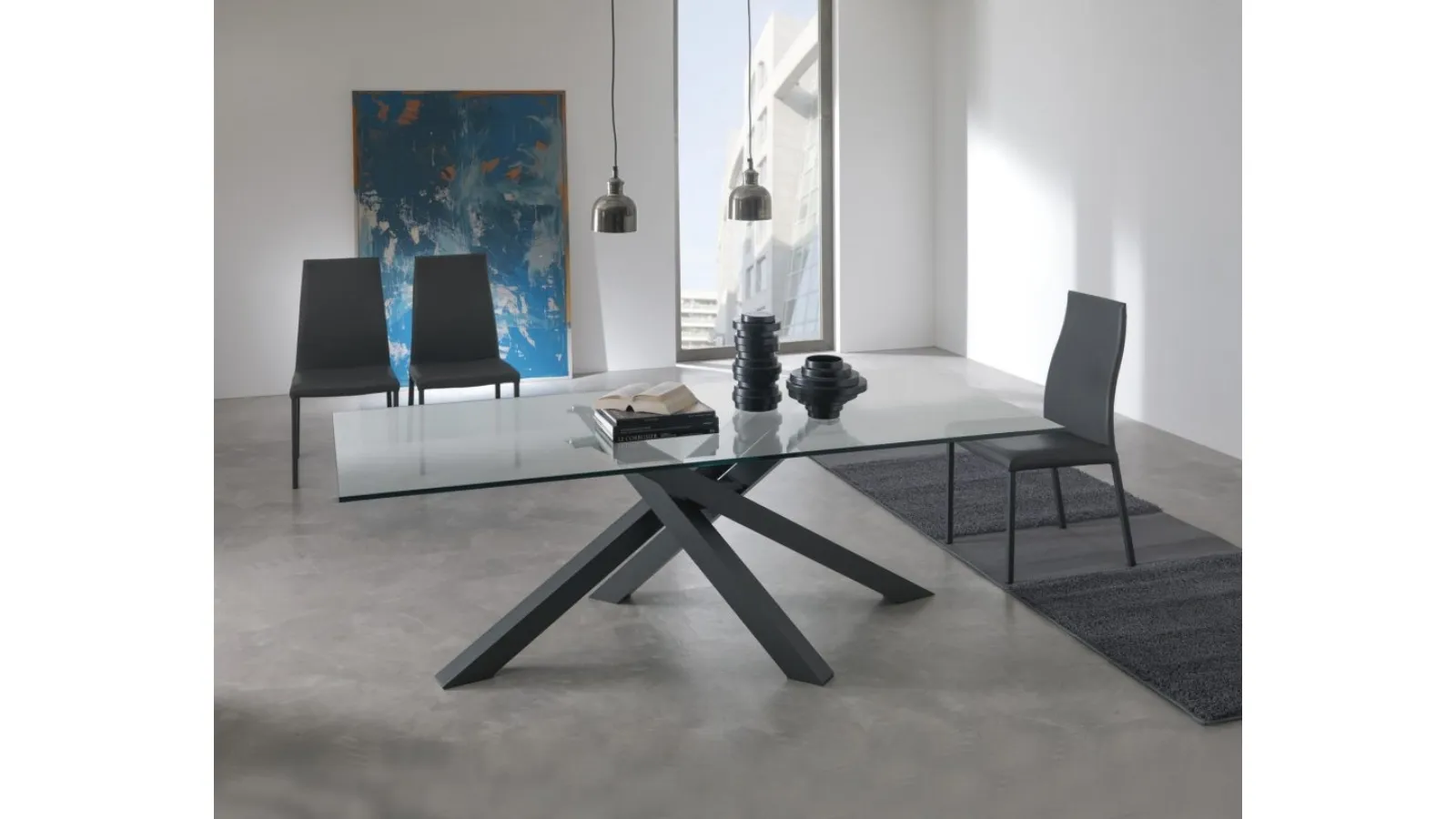 Il tavolo SICS-TIN Duepuntozero Cristallo di Sedie Brianza si distingue per un design essenziale e moderno, concepito per integrarsi con stile e funzionalità negli ambienti living e dining contemporanei. La sua struttura innovativa a gambe incrociate, realizzata in alluminio verniciato disponibile nelle finiture opache antracite, bianco, bronzo, nero e cashmere, non solo conferisce stabilità ma ottimizza anche lo spazio e il comfort. Il piano in cristallo aggiunge un tocco di eleganza e personalità, riflettendo la luce e ampliando visivamente l'ambiente. La versatilità è garantita dalla disponibilità di modelli allungabili e da dimensioni variabili, come le configurazioni da 160x90 cm (estensibile fino a 210/260 cm) o 200x100 cm, offrendo soluzioni adattabili a diverse esigenze spaziali. Questa soluzione d'arredo rappresenta la perfetta fusione tra un design innovativo e l'impiego di materiali di alta qualità, garantendo durabilità e prestazioni estetiche superiori nel tempo.