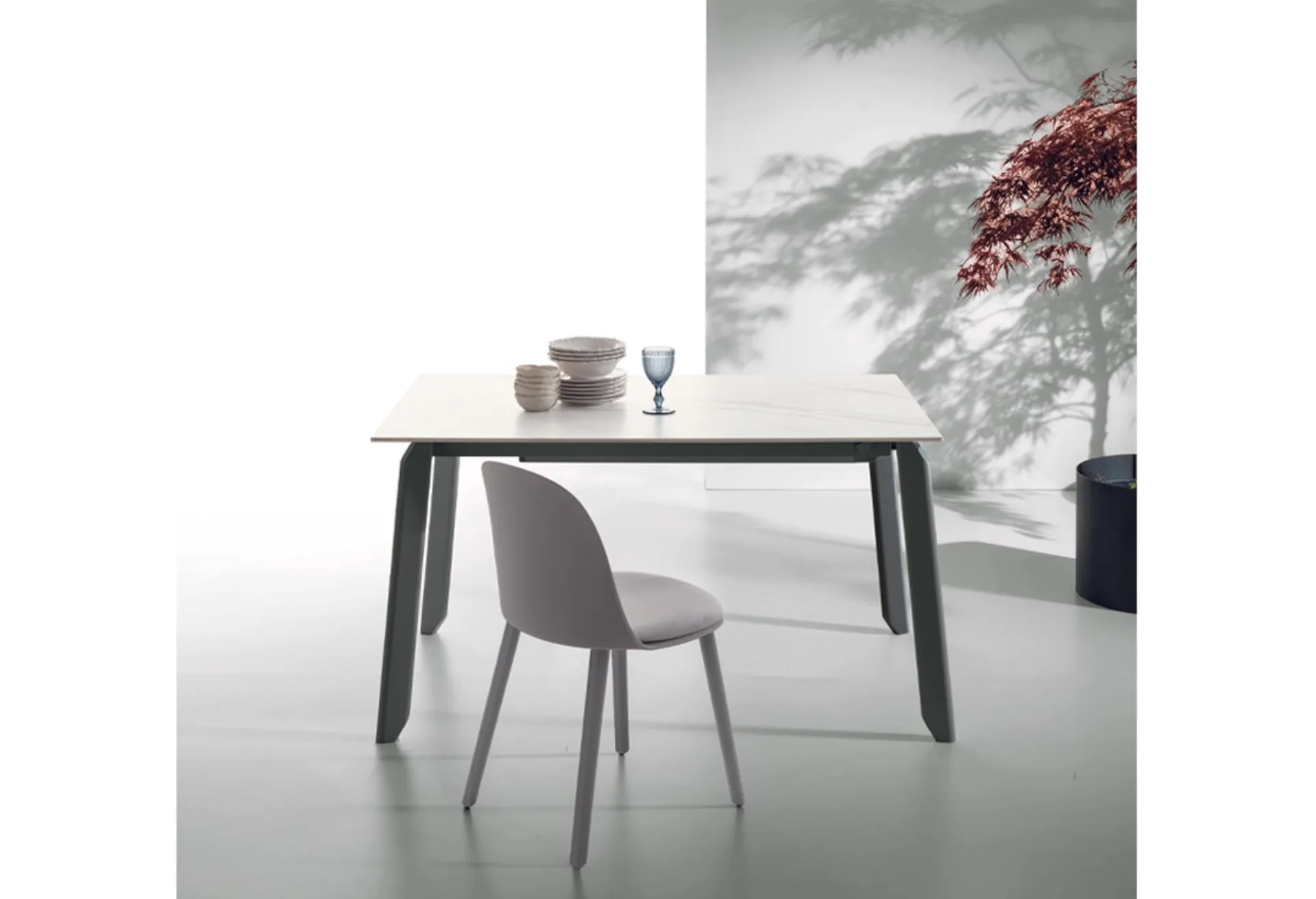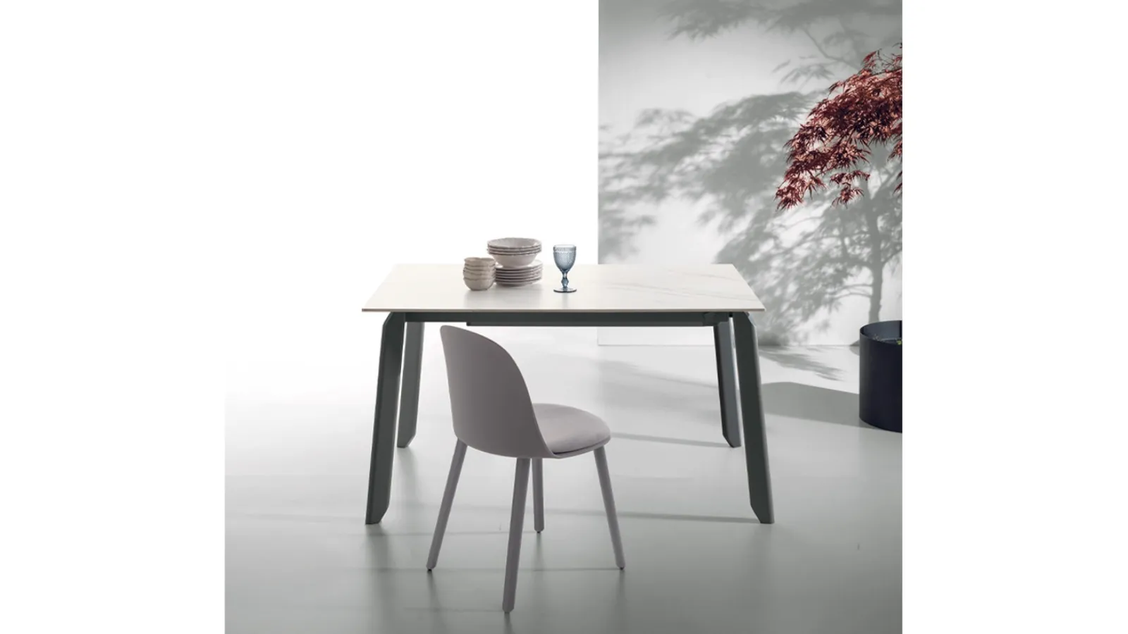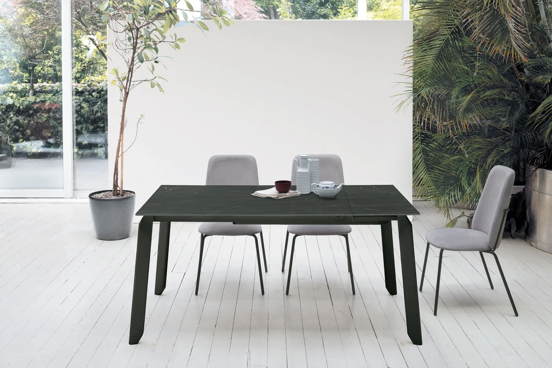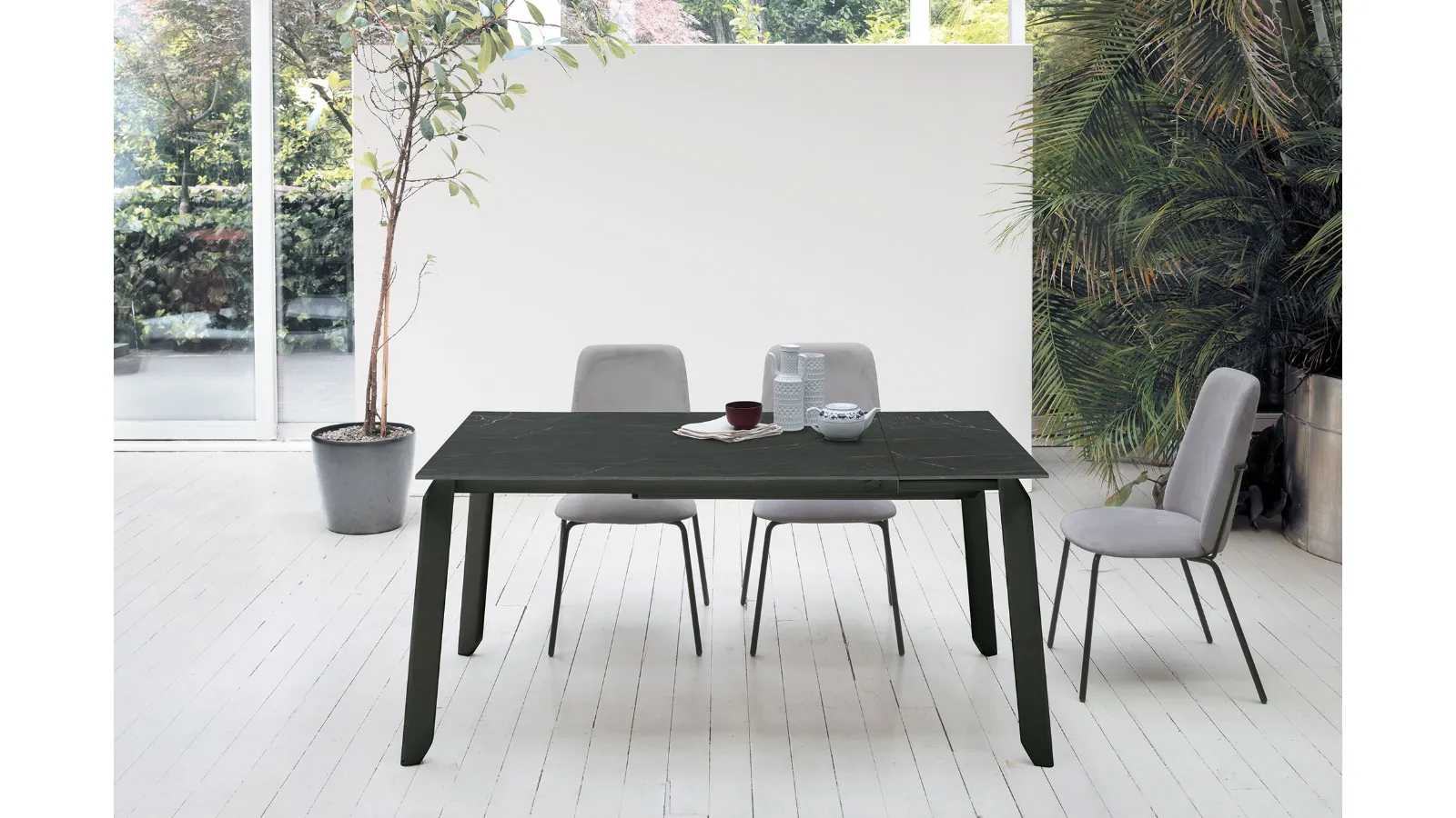 The extendable porcelain stoneware Efeso table from Target Point is waiting for you to complete a kitchen or dining room with modern references.