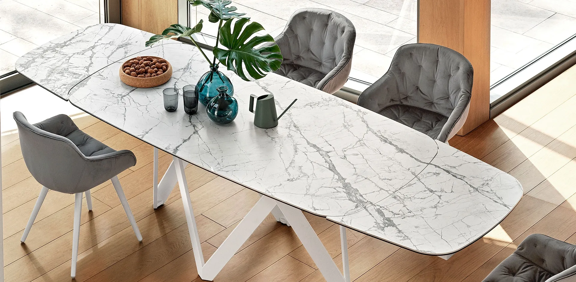 Prefer high-quality ceramic furniture and accessories from the best brands to create functional interiors without neglecting aesthetic value. In-store, you will find a wide range of extendable tables from top brands, including the dining model shown in the photo. In our dedicated Home Furnishings website, you can find everything you need for your living room or kitchen. Whether you want to change your modern furniture at home or purchase it for the first time, you can experience the most exclusive solutions on the market with us. When choosing the right table for you, it is important to consider measurements, lines, materials, and style in order to organize the space effectively with excellent aesthetics.