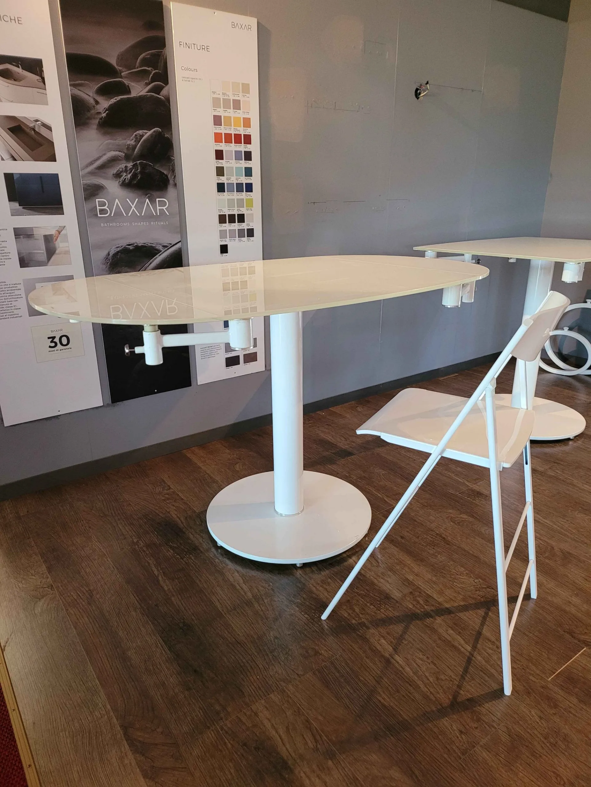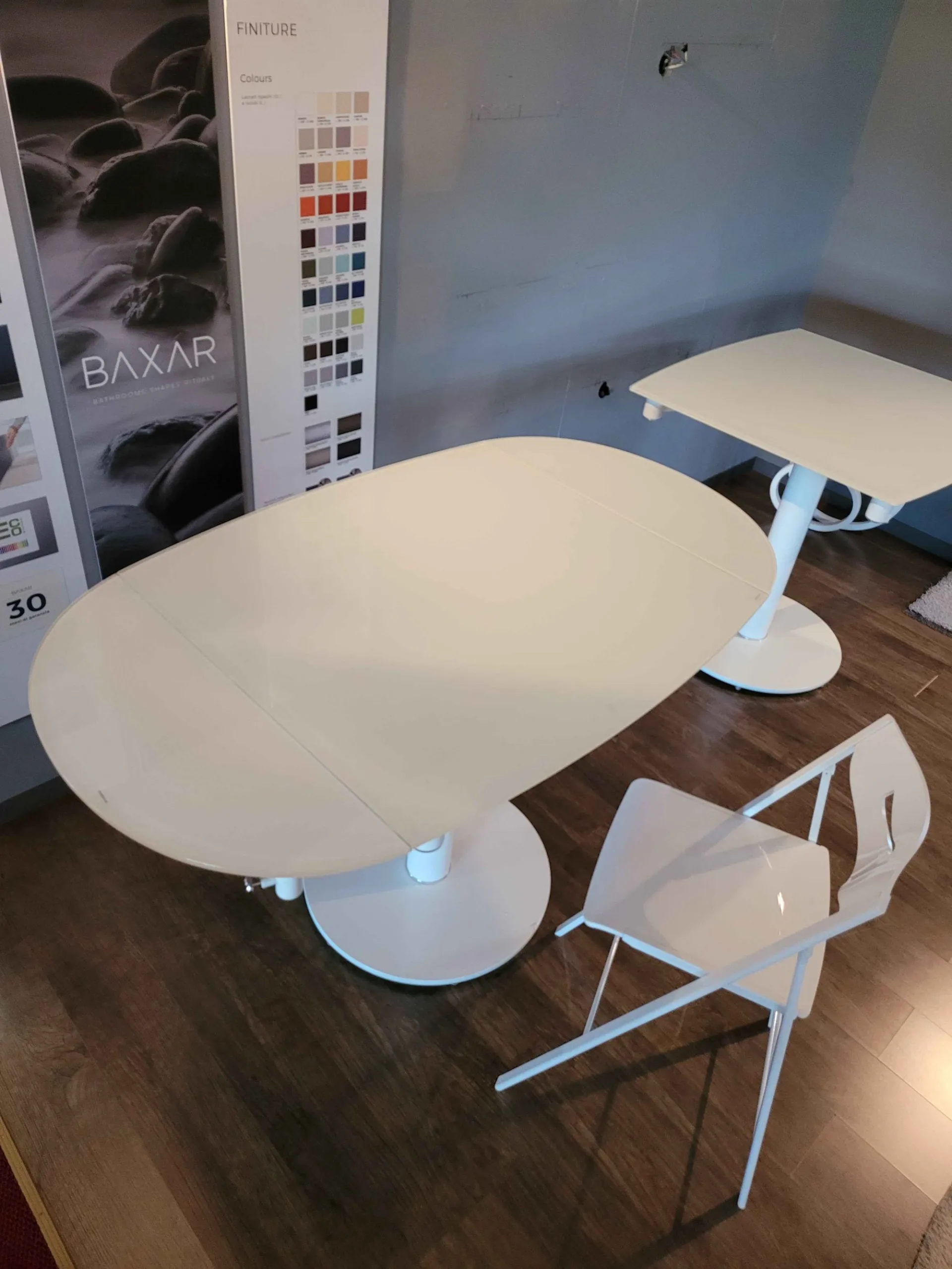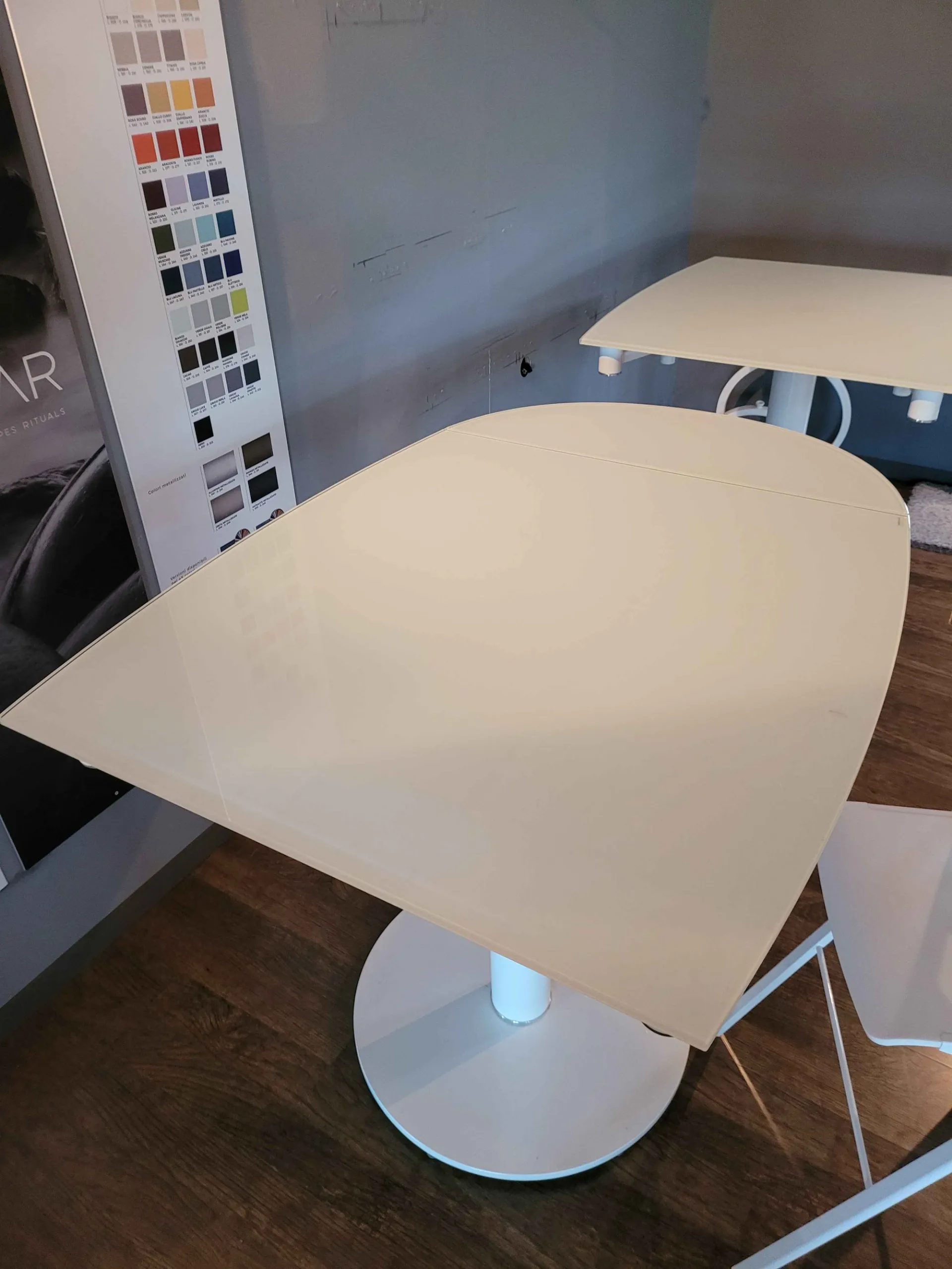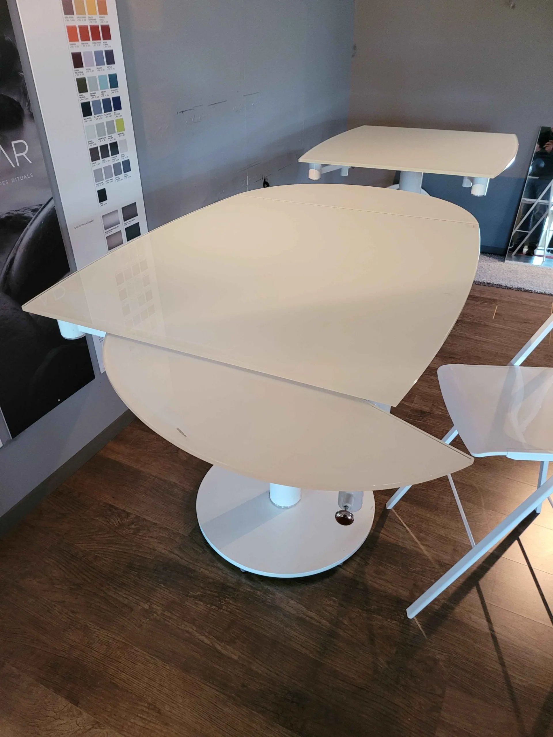 EXTRA table top in crystal clear white, structure matt white, cm.94x100 (130-160)