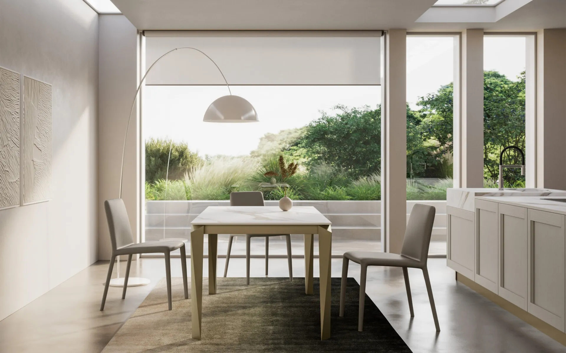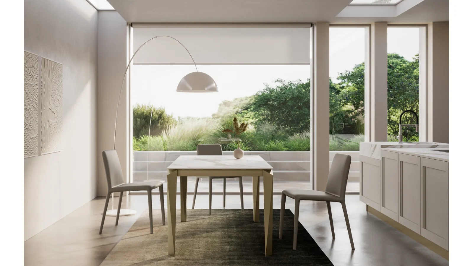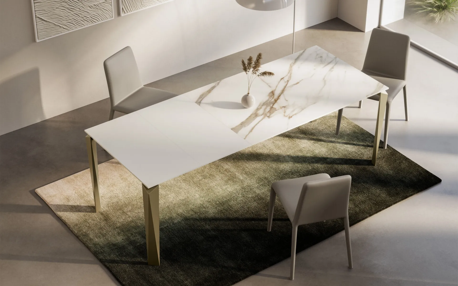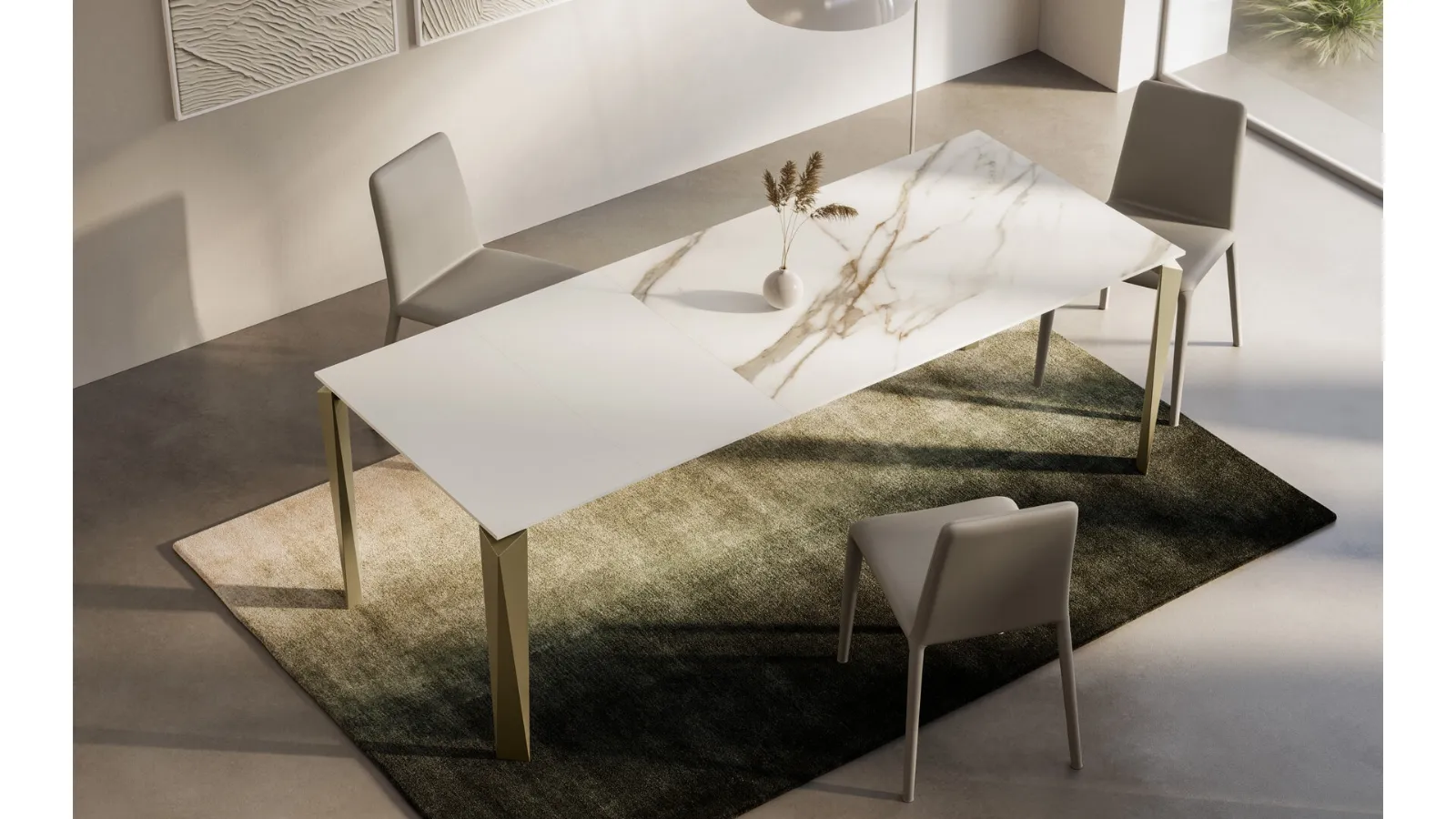 Tables are essential pieces of furniture in every home: complete your furnishing concept and bring life to the house you have always desired. Fill out the form and contact us to discover the best brands of home furnishings, tables, and chairs from Arredo3. Tables are furnishing components that allow you to enhance the living room, kitchen area, or other rooms in the house, thanks to top-quality materials and imaginative color combinations. Extendable table Face gres by Arredo3: explore a rich catalog of dining furniture and accessories to finalize your spaces with different design options. Extendable gres models like the one shown in the photo adapt to a variety of spaces and living environments, being truly versatile and durable.