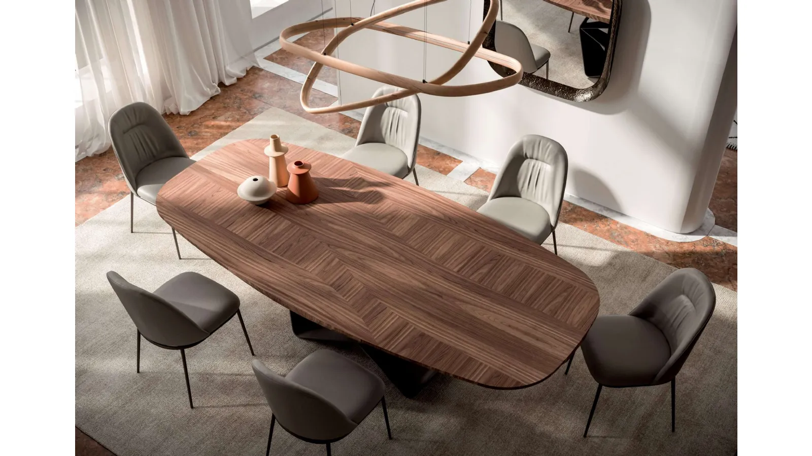 If you are looking for a dining table with great design, contact us and receive information and quotes on the model shown in the photo. Gem table in Ozzio wood: made with quality materials, it is characterized by the strong lines of the top and an elegant and refined base. The well-known and renowned brand Ozzio, a leader in the production of wooden furniture, has chosen for its collection a wide range of materials, lines, and colors. Ideal for creating unique combinations with design seats and accessories, the brand's fixed tables are among the most beautiful solutions on the market, perfect for the living room and kitchen. A model like the one in the image, paired with the right seats, will enrich the atmosphere of the rooms dedicated to socializing.