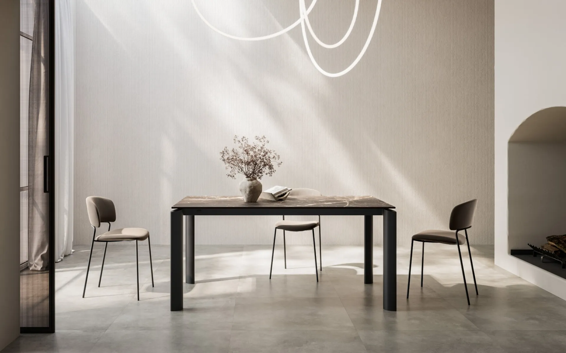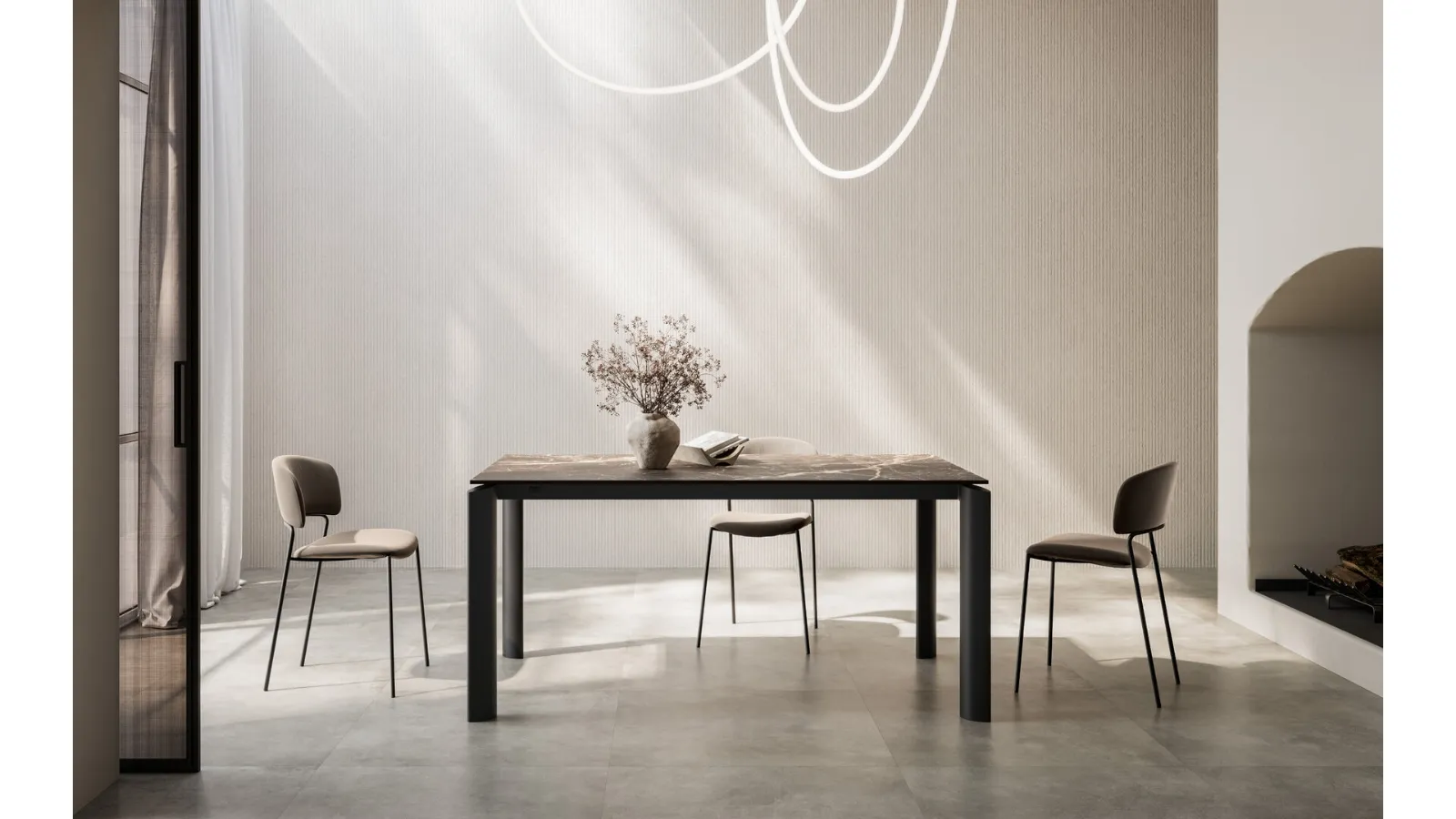 The extendable tables Arredo3, including this Icaro stoneware dining model for modern spaces, await