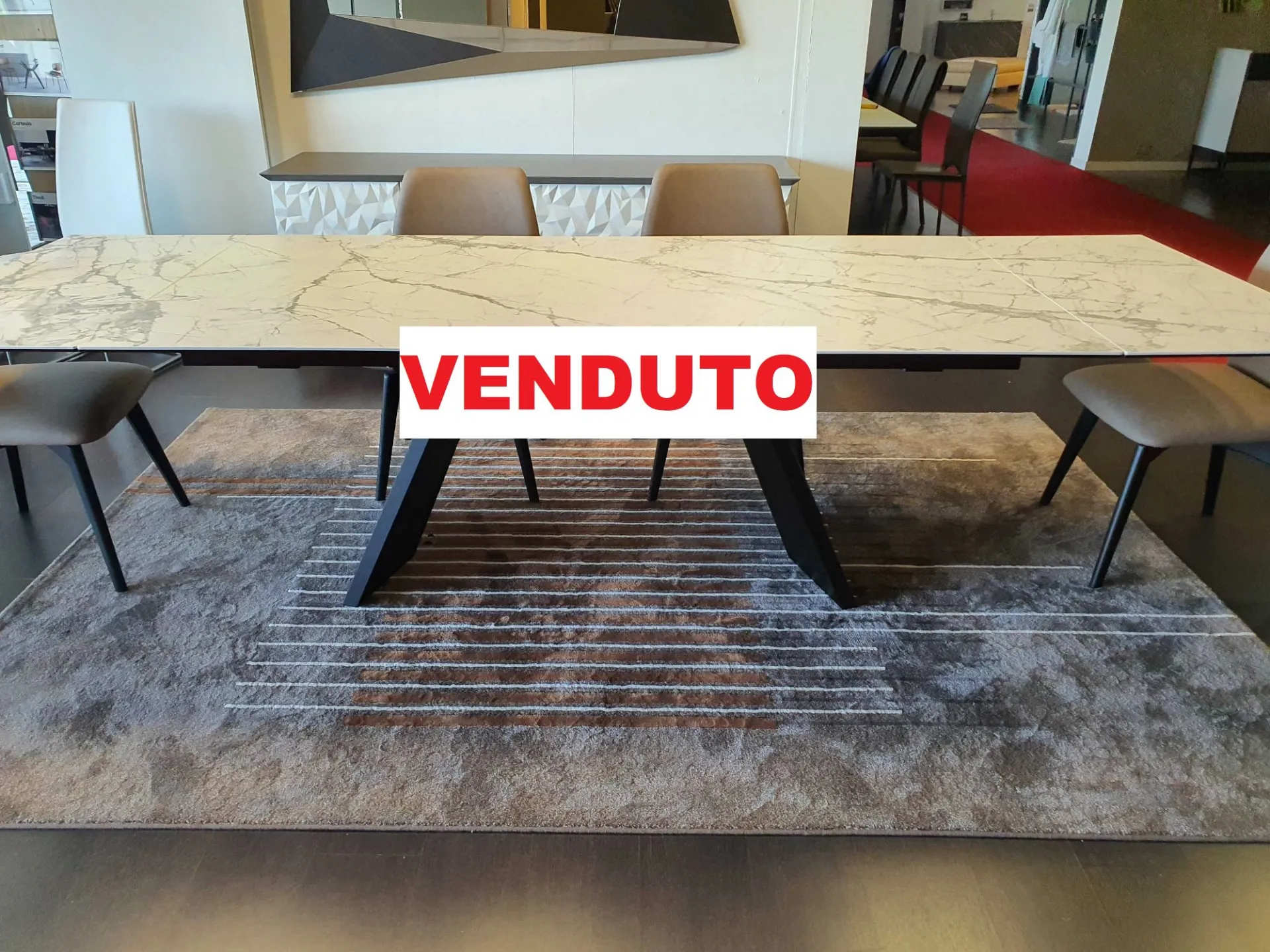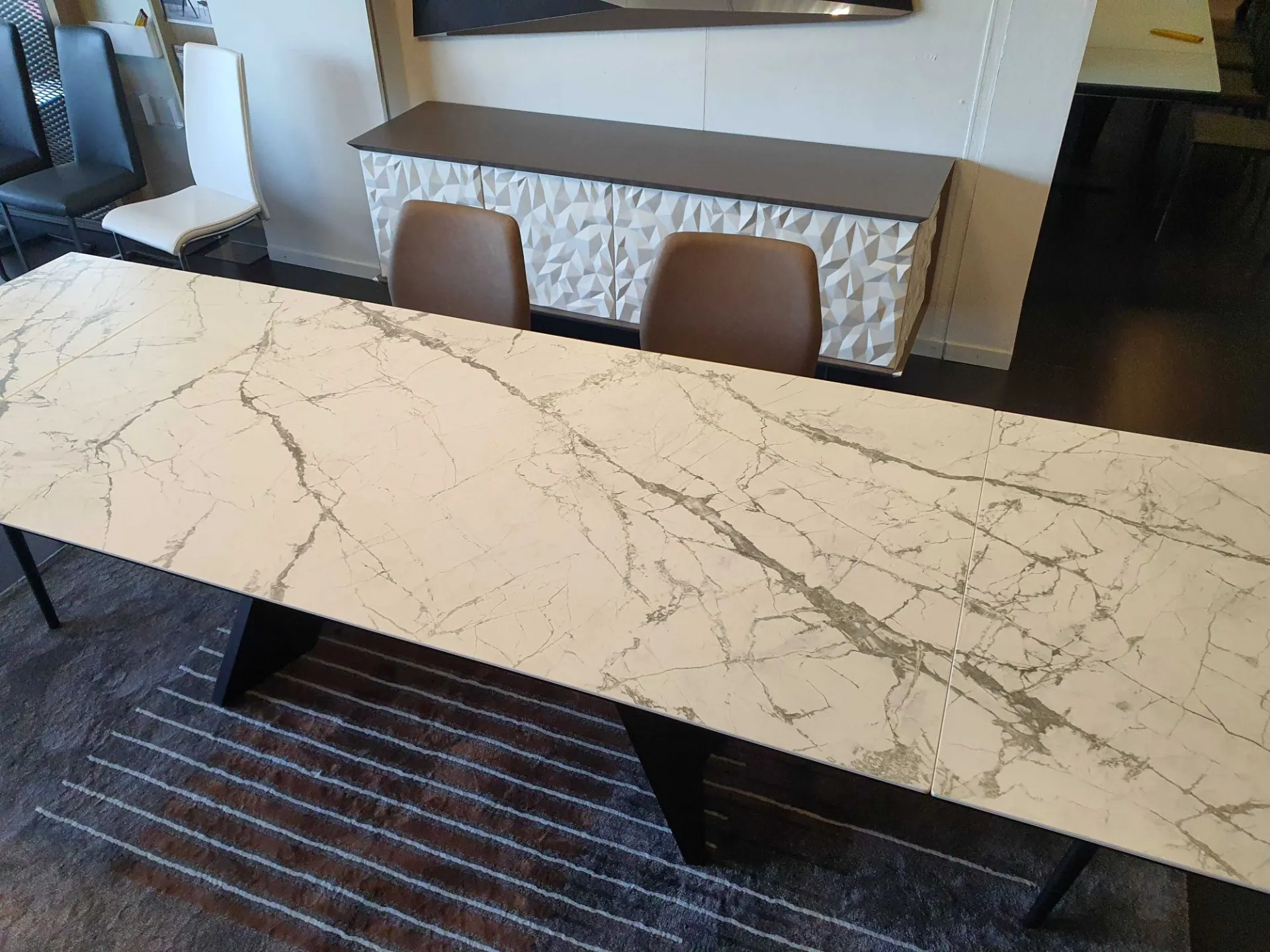 Tablemod.IcaroCS4114-R200withtopP9CeramicMarbleSilkWhite, legsP15Lfrassinonero, boxP15metalloneroopaco, cm.200 (300) x100prof.