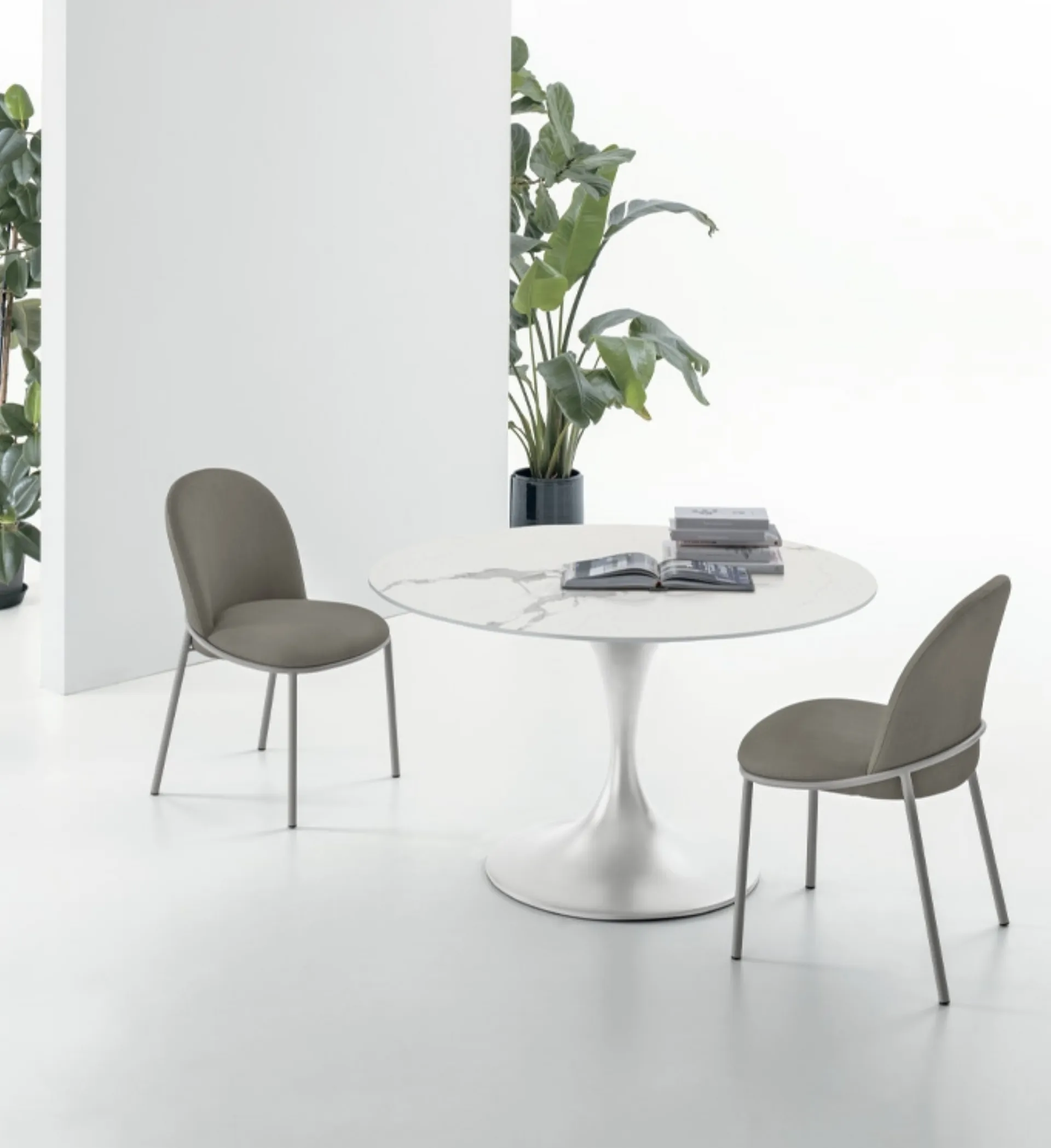 Il tavolo Jazz di Target Point si distingue per la sua sofisticata ingegneria e l'estetica essenziale. Realizzato con un robusto basamento centrale in metallo verniciato, il suo design scultoreo evoca l'armonia di uno strumento musicale, supportando con stabilità un piano dalle finiture impeccabili. La versatilità è garantita dalle opzioni fisso o allungabile, quest'ultima con un pratico meccanismo a libro che permette di espandere la superficie senza compromettere lo stile. La scelta dei materiali, tra cui laminato effetto marmo e gres porcellanato, assicura durabilità e un'estetica raffinata. Disponibile con diametri di 90 cm o 120 cm, entrambi con altezza standard di 75 cm, si integra perfettamente in ogni ambiente. La sua struttura robusta e i materiali di pregio lo rendono una scelta ideale per un ambiente che valorizza la durata e l'eleganza funzionale.