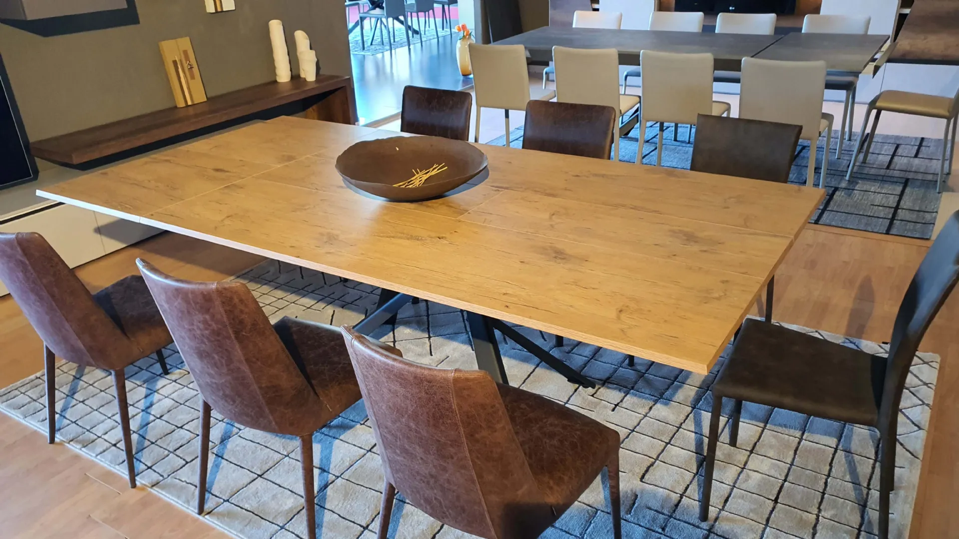 During the purchase of the table that suits you, it is necessary to evaluate measurements, lines, materials, and style, in order to organize the space with great aesthetic value. If you wish to renew the modern furniture pieces you have at home or buy them anew, with us you can see the most exclusive solutions on the market in person. In the showroom, a wide range of extendable tables from the best manufacturers is waiting for you, including the dining model visible in the photo. In our dedicated website for Home Furnishing, you will find everything you need for the living room or kitchen. Prefer laminate furniture and accessories from the best manufacturers to conveniently complete your interiors without ever forgetting about aesthetics.