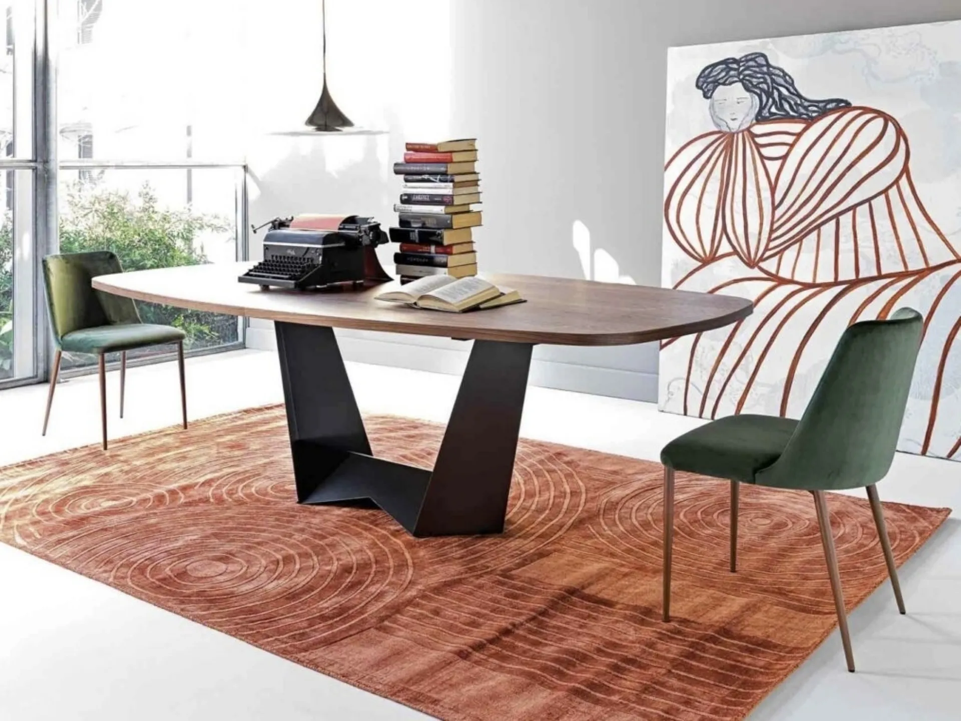 A model like the one in the photograph, combined with the right chairs, will be able to enhance the mood of domestic rooms absolutely dedicated to hospitality. If you are looking for a high quality dining table, contact us and receive information and quotes on the model visible in the photo. The well-known and well-known brand Sedie Brianza, specialist in the production of wooden furniture, has chosen a large variety of materials, shapes and shades for its collection. Midnight table by Sedie Brianza : made of quality materials, it is characterized by the decisive shapes of the top and by a refined and elegant base. Ideal for creating unique combinations with design chairs and accessories, the brand's fixed tables are among the most original solutions on the market, ideal for the living room and kitchen area.
