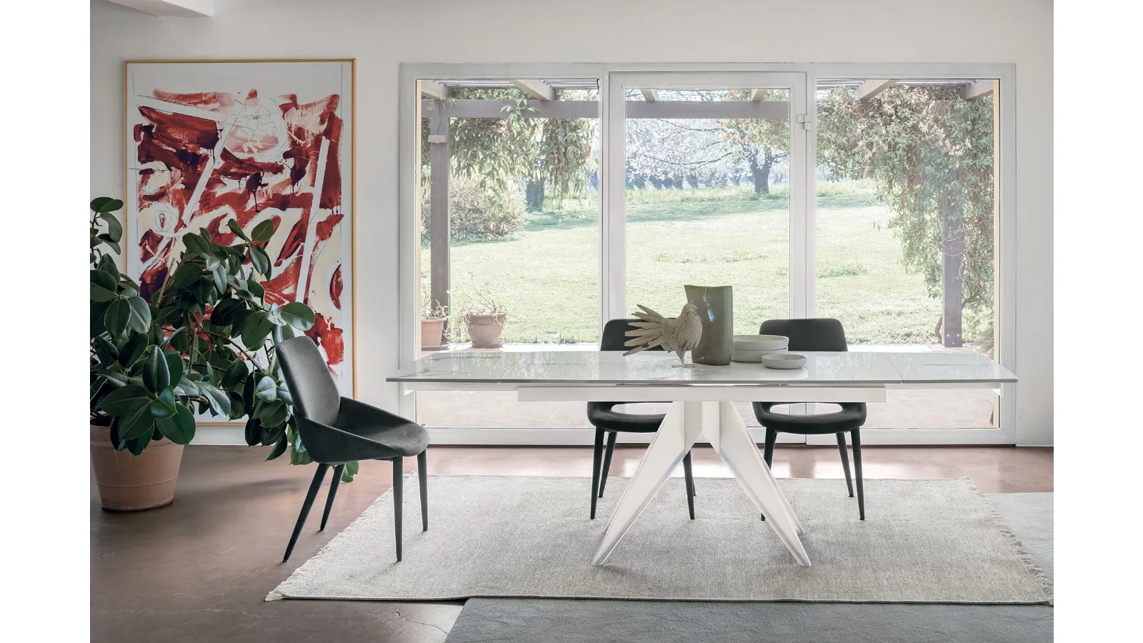 Lunch model Minosse, which is part of the modern extendable dining tables line.