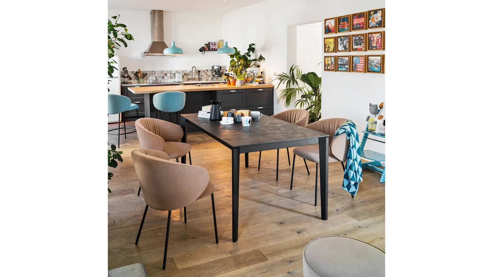The choice of kitchen tables is really important if you want to complete your home furnishings: the available spaces, color combinations and finishes must be considered. Here you will find a rich range of melamine furniture and accessories from the best brands, ideal for completing your interiors. Pentagon extendable table by Connubia : with this model you can enrich modern spaces ensuring maximum modularity and maximum planning of the extendable tables. Contact us for info and quotes or discover the various most original Connubia melamine kitchen proposals in the shop, an example of all the quality guaranteed by the brand.