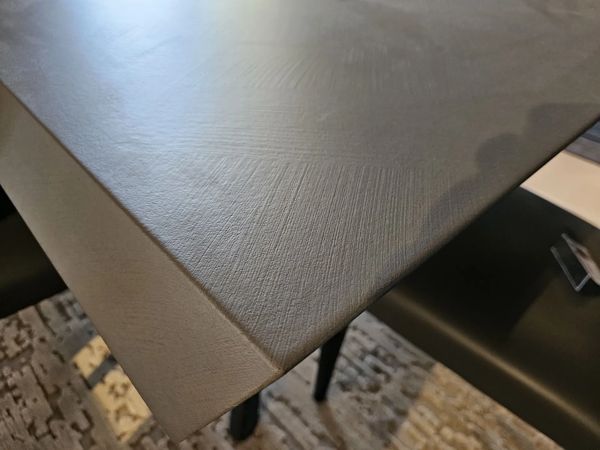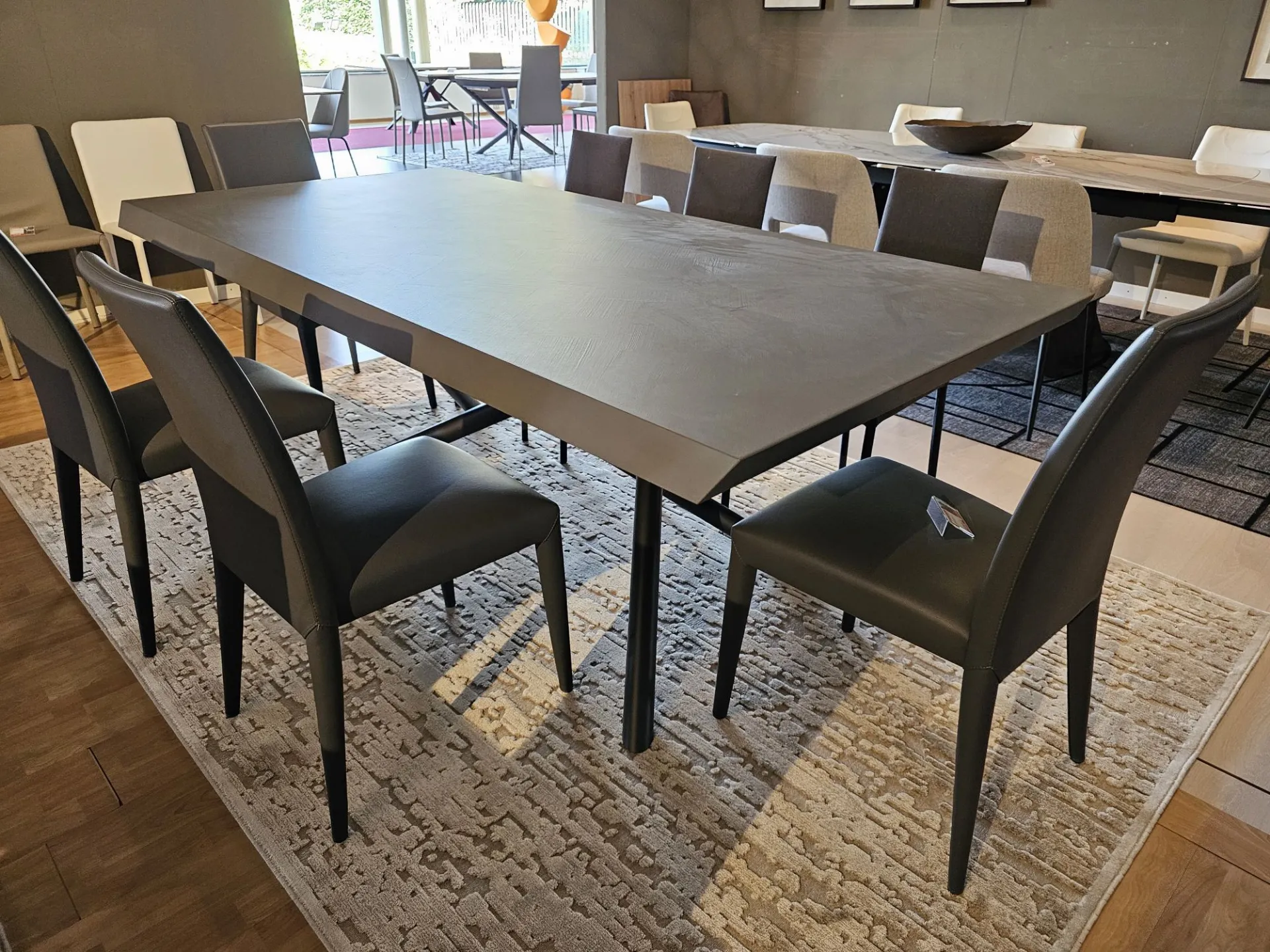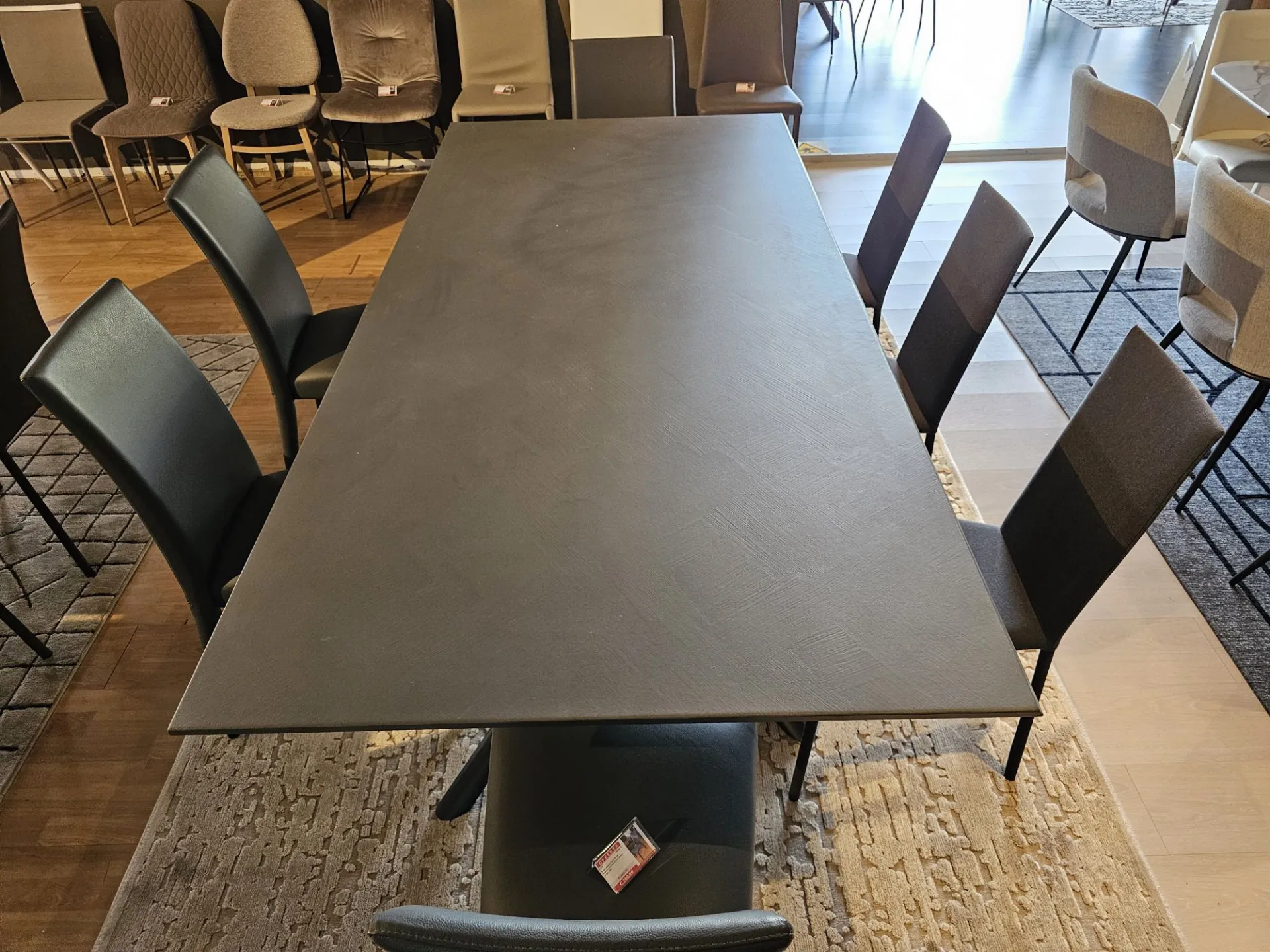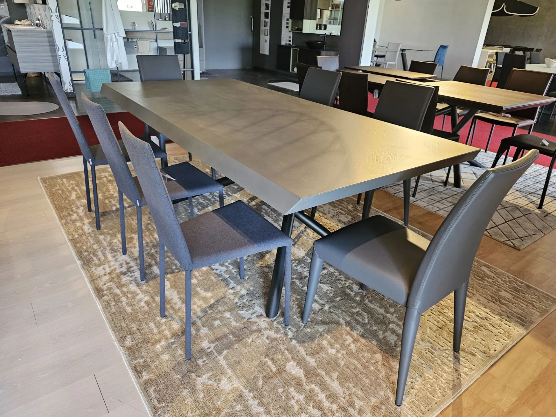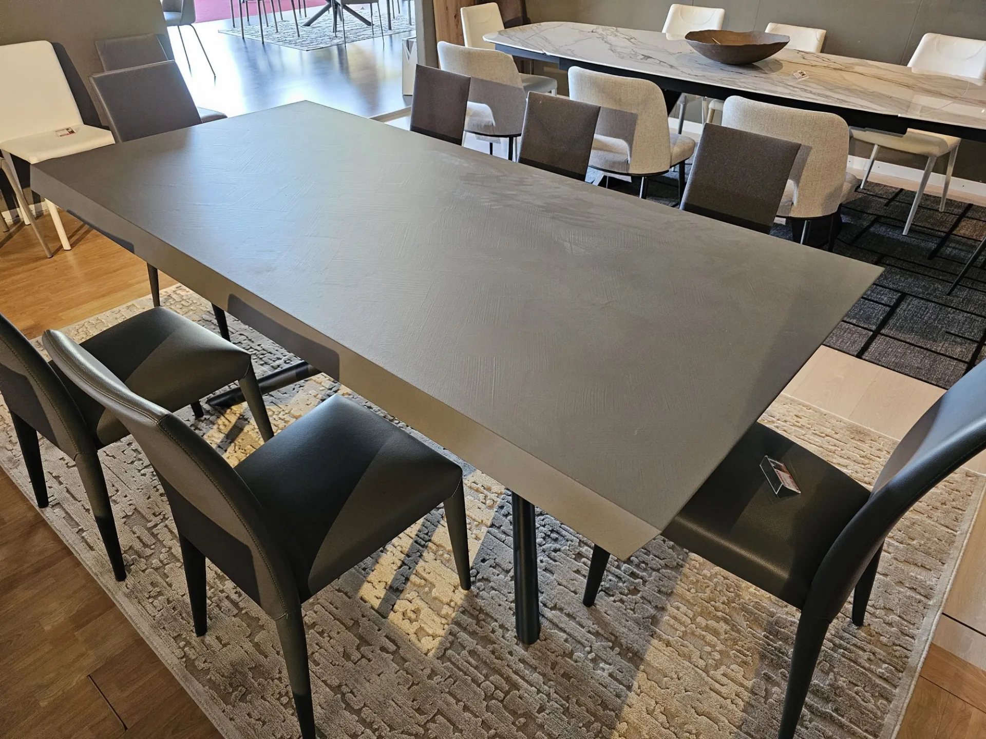 Fixed table mod.RANDOM with a thick top in Cement CM61 finish and bronze metal base MT97. The table measures cm. 220x110x77.5h. Contact us for more information.