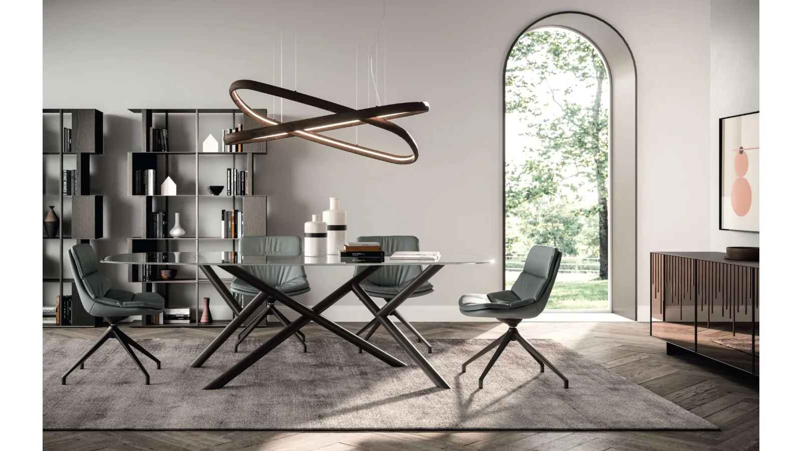 Fixed glass table Random by Ozzio: in our store you will find an almost infinite range of high quality furnishing compositions. One of our fixed table models will be able to embellish your interior design project with practicality and design. Tables are among the most important furniture and decorative objects in the living room and kitchen, spaces dedicated to hospitality where one gathers with friends and family. The exclusive brand Ozzio offers a rich catalog of fixed dining tables, including those ideal for enhancing modern spaces perfectly. A quality table must be made of durable materials, so that it is resistant and preserves its aesthetic qualities over the years. If you want to ensure a high aesthetic value in your home environments, but also make good use of the shape and size of the rooms, then our solutions are perfect for you.
