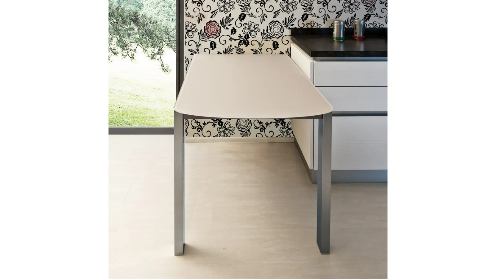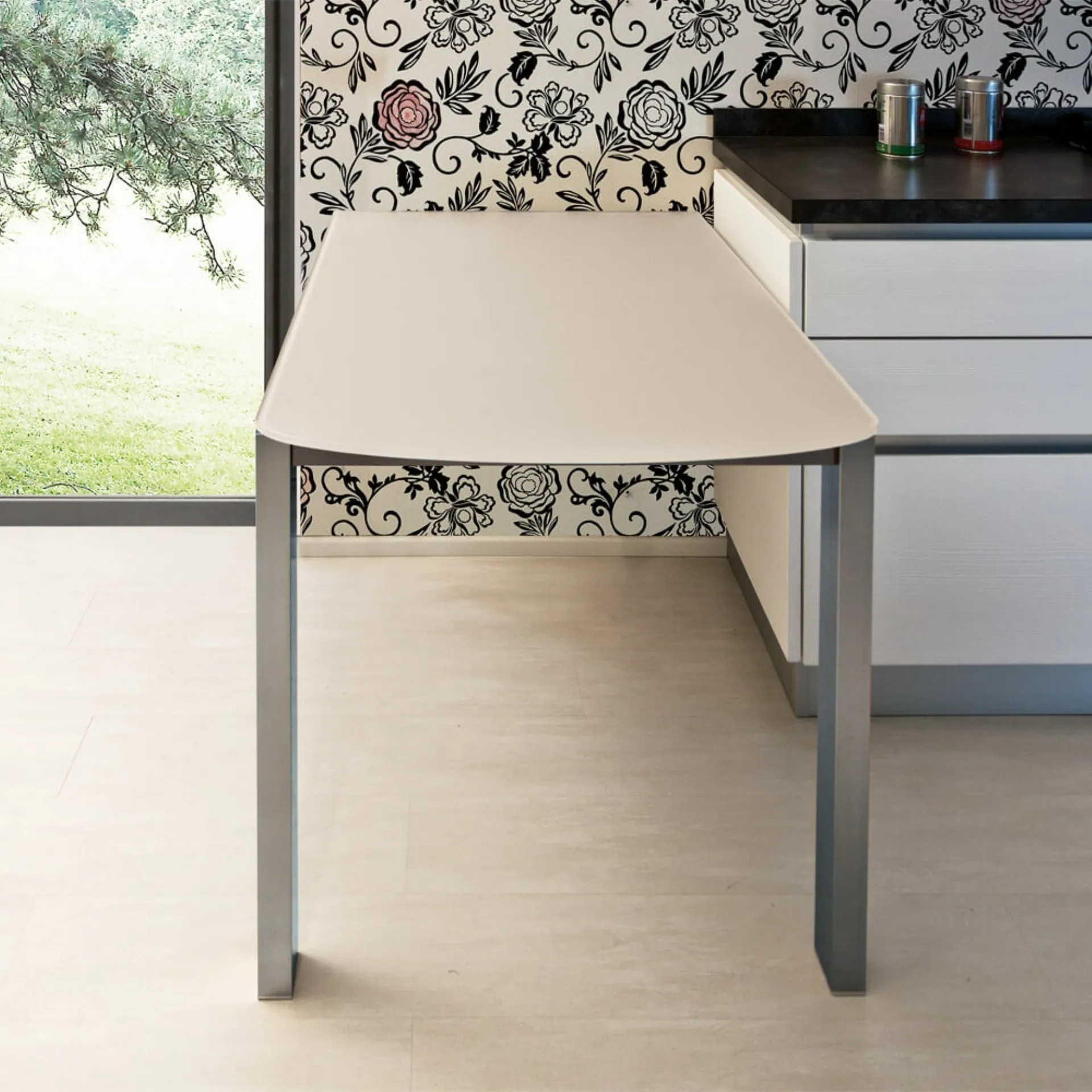 A model like the one in the photograph, combined with the right seats, will enrich the look of the rooms in the house dedicated to hospitality. The well-known and renowned brand Ponti Terenghi, a leader in glass furniture, has chosen a wide range of materials, lines, and shades for its series. Ideal for creating unique combinations with modern seats and accessories, the extendable tables by the brand are among the most original solutions on the market, perfect for the living room and kitchen. Ponti Terenghi's S10 Voilà table: made of durable materials, it is characterized by the distinct shapes of the top and an elegant and refined base. If you are looking for a kitchen table with great design, contact us and receive information and quotes on the model visible in the photo.