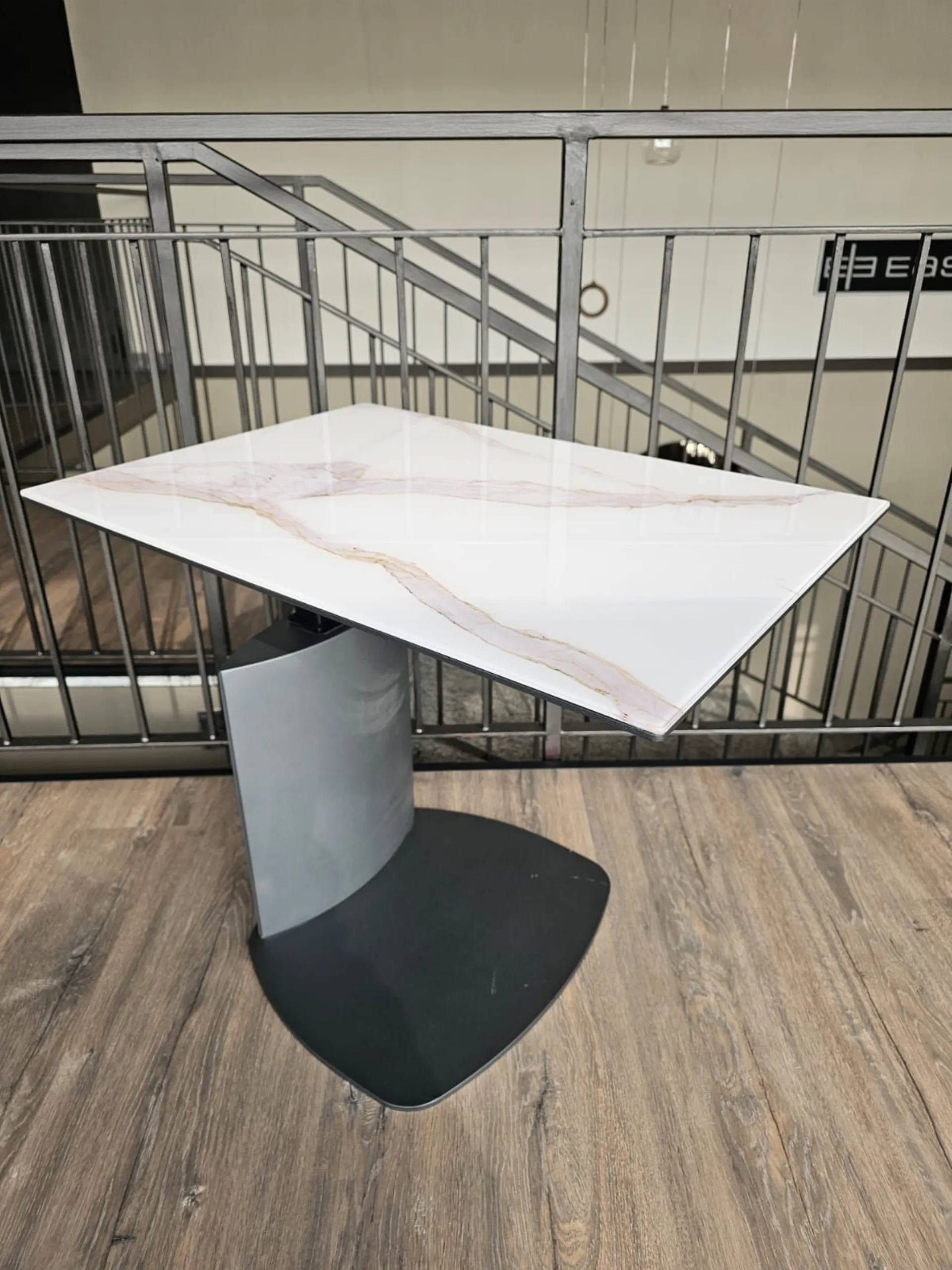 Coffee table with rectangular top in glossy Calacatta Gold MG05. Metal frame in graphite color MT98. Product available for immediate delivery.