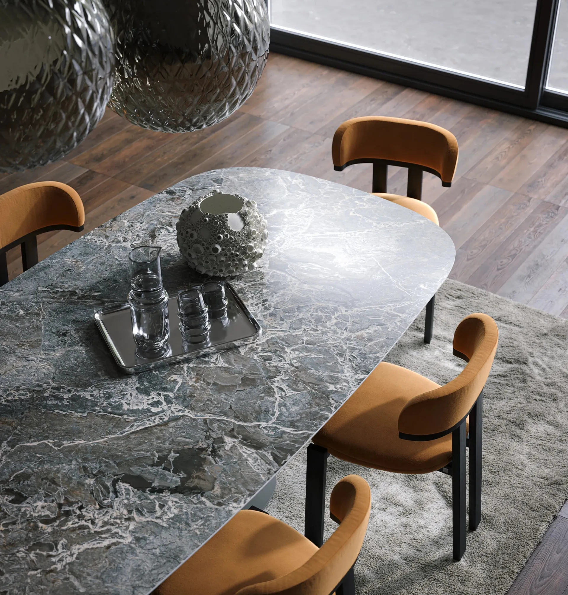 Fixed ceramic models like the one in the photo adapt to a wide variety of living contexts, being truly versatile and sturdy. Tables are furnishing elements with which you can enrich the living room, kitchen, or other rooms in the house, thanks to quality materials and imaginative color combinations. Fill out the form and contact us to discover the best brands of furniture for the home, coffee tables, and chairs under the Tonin Casa brand. Tonin Casa's Sipario ceramic table: discover a rich range of dining furniture and accessories to complete your rooms, relying on various customization possibilities.