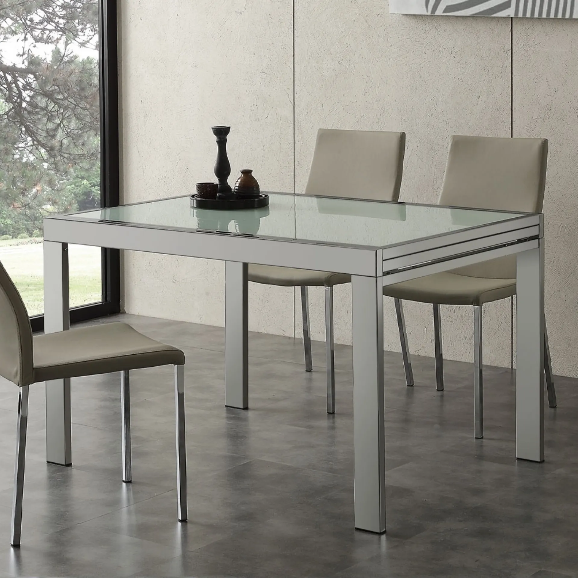 The well-known and well-known La Seggiola brand, leader in the production of glass furnishings, has chosen a wide range of materials, shapes and shades for its collection. If you want a great design dining table, contact us and receive info and quotes on the model visible in the photo. A model like the one in the photograph, combined with the right chairs, will be able to enhance the mood of the rooms of the house dedicated par excellence to conviviality. Ideal for creating unique combinations with modern chairs and accessories, the brand's extendable tables are among the most original solutions on the market, ideal for the living room and kitchen. Space extendable table by La Seggiola : made of quality materials, it is characterized by the decisive shapes of the top and an elegant and sophisticated base.
