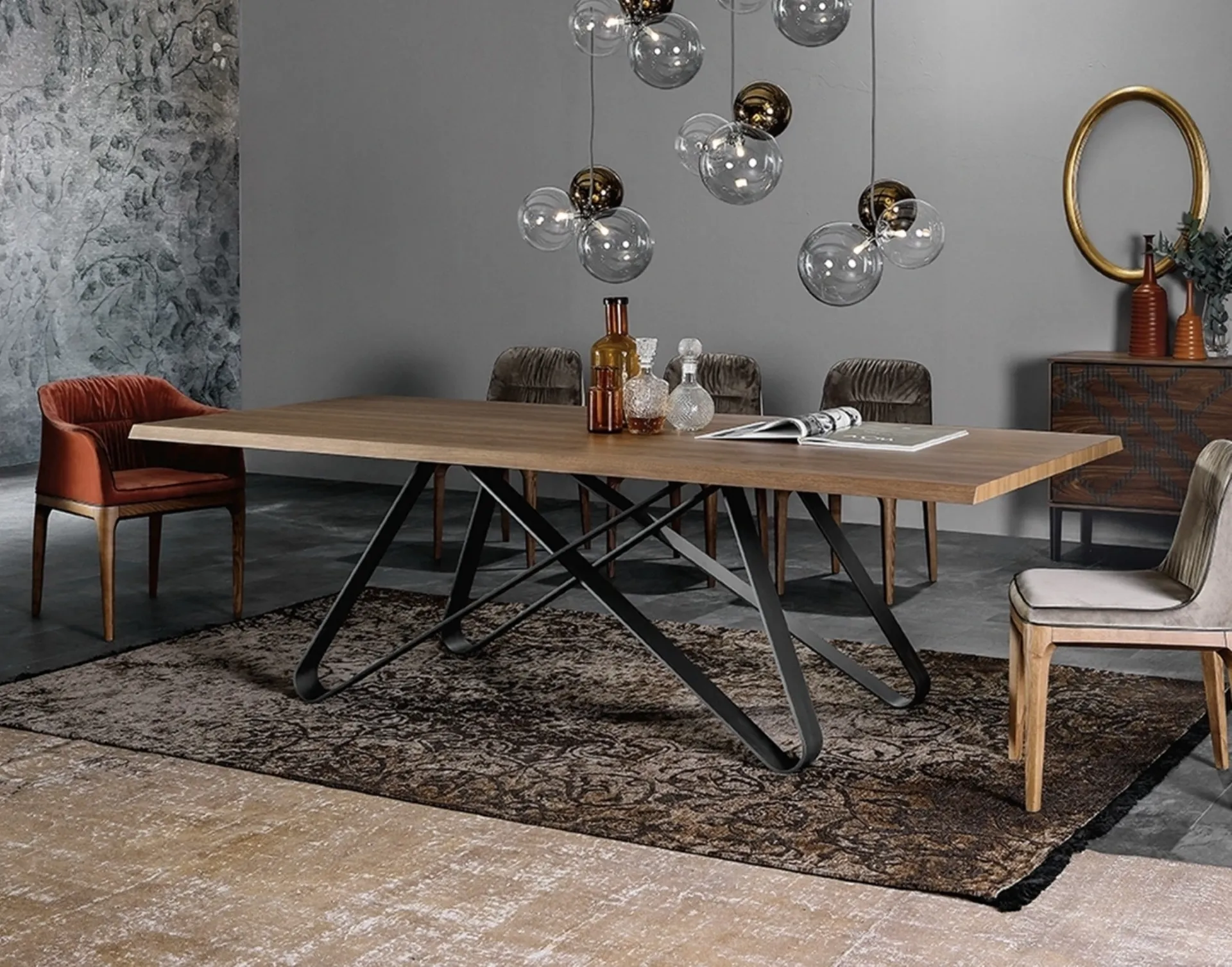 The quality of the materials and the innovation of production make this model of Status Table with metal base and wooden top by Tonin Casa the ideal choice to complete your home. One of the wooden dining models we offer certainly finds its place in rooms with design references, equipping them with logic and rationality. In order not to fall into error, the choice of the ideal solutions for you must evaluate the style of the furniture, the dimensions of the environment and dedicated occupations. With the fixed tables that we offer in the store, you can touch the most original Tonin Casa solutions and find the one that's right for you. Tables are inevitable furnishings in every home, since they optimize the dining area, the kitchen or an open space living area with practicality and design. These furnishings are the fulcrum of socializing at home: around the table you can meet family and friends for moments in company or to have dinner.
