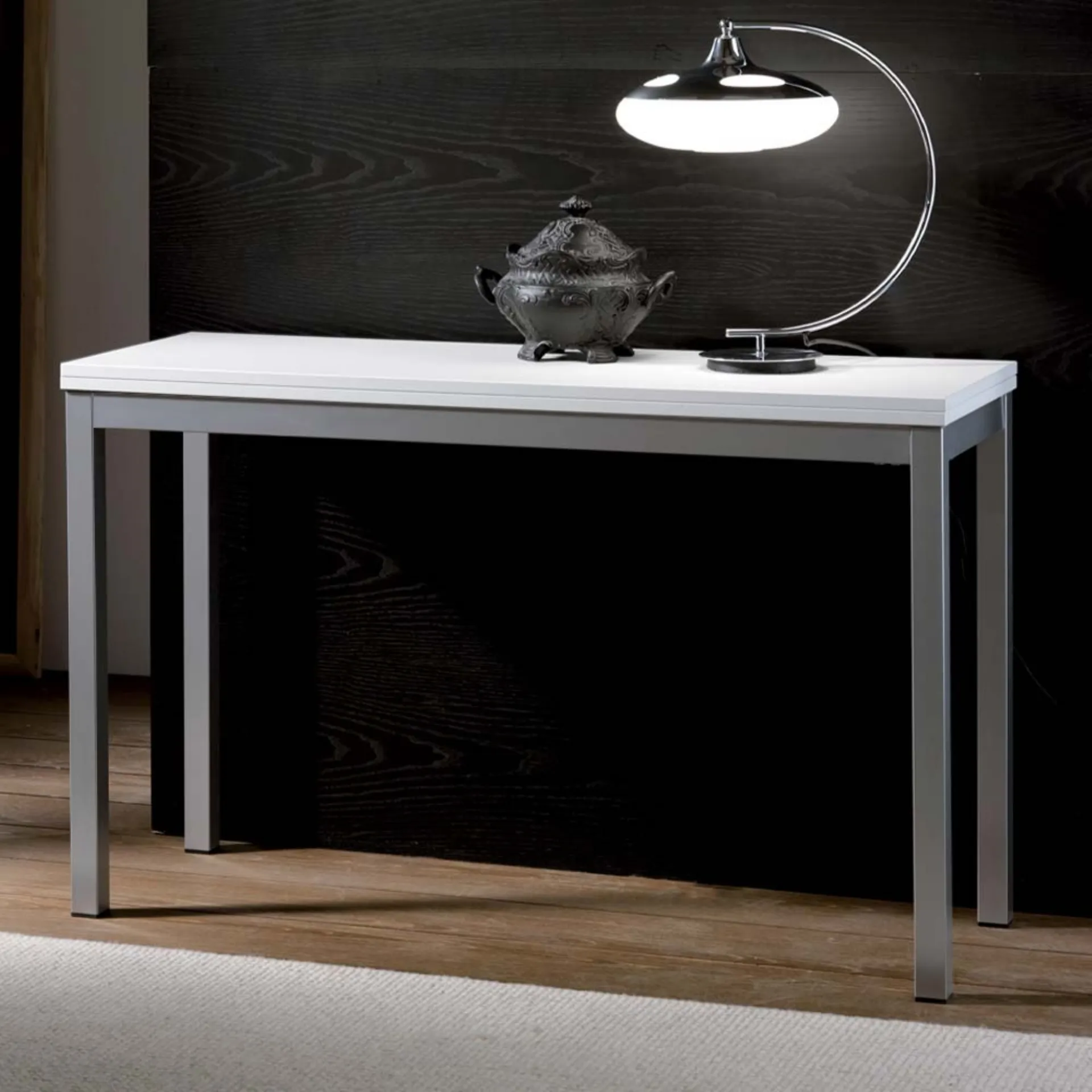 A model like the one in the picture, combined with the right chairs, will enhance the mood of the rooms dedicated exclusively to conviviality. The renowned brand La Seggiola, specialized in the production of melamine furniture, has chosen for its collection a wide range of finishes, lines, and colors. Ideal for creating unique combinations with modern chairs and accessories, the company's console tables are among the most original solutions on the market, perfect for the living room and kitchen. If you desire a dining table with great design, contact us and receive information and quotes on the model featured in the photo. Extension Console Table Strip by La Seggiola: made with high-quality materials, it is characterized by the bold shapes of the top and an elegant and refined base.