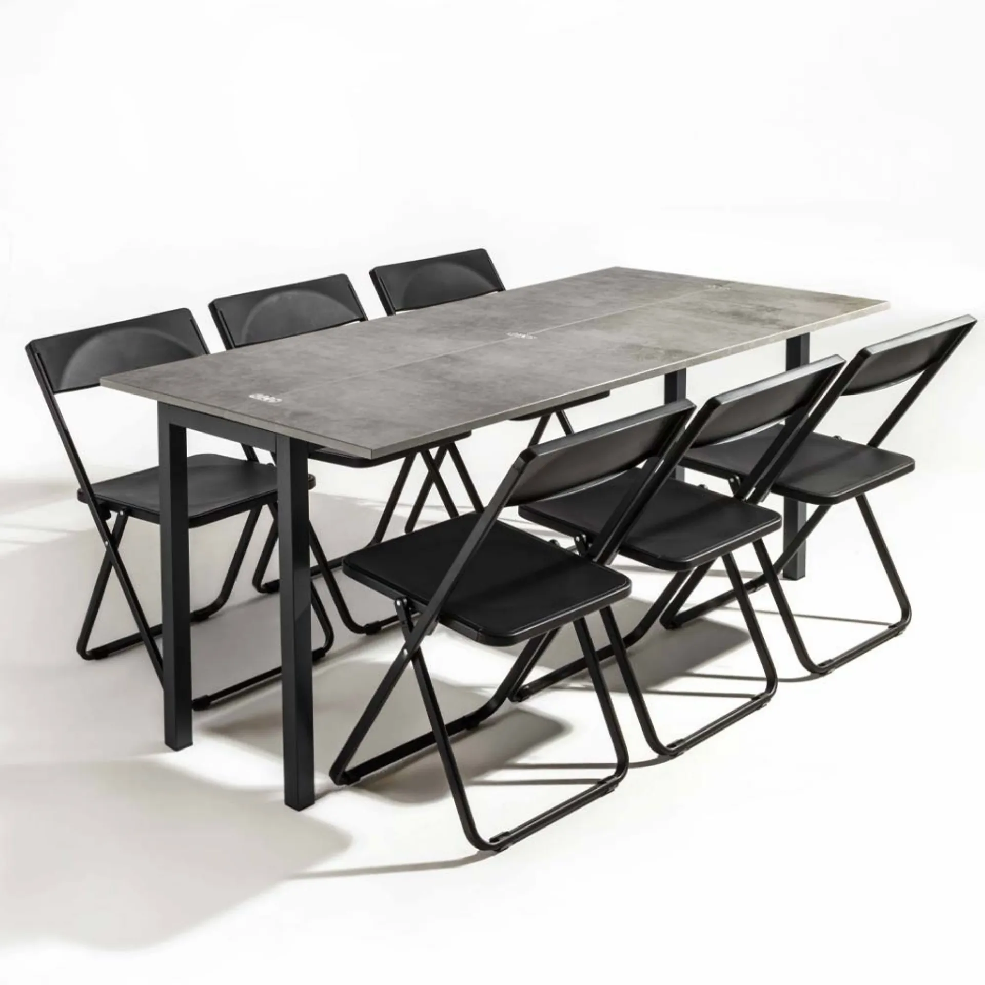 Di che materiali è tipicamente realizzato il tavolo Strip di La Seggiola?Sebbene non siano specificati i materiali esatti per il modello Strip senza una scheda tecnica, i tavoli di La Seggiola sono spesso disponibili con piani in legno, vetro, gres o laminato, combinati con basi in legno o metallo, offrendo un'ampia scelta estetica e funzionale.