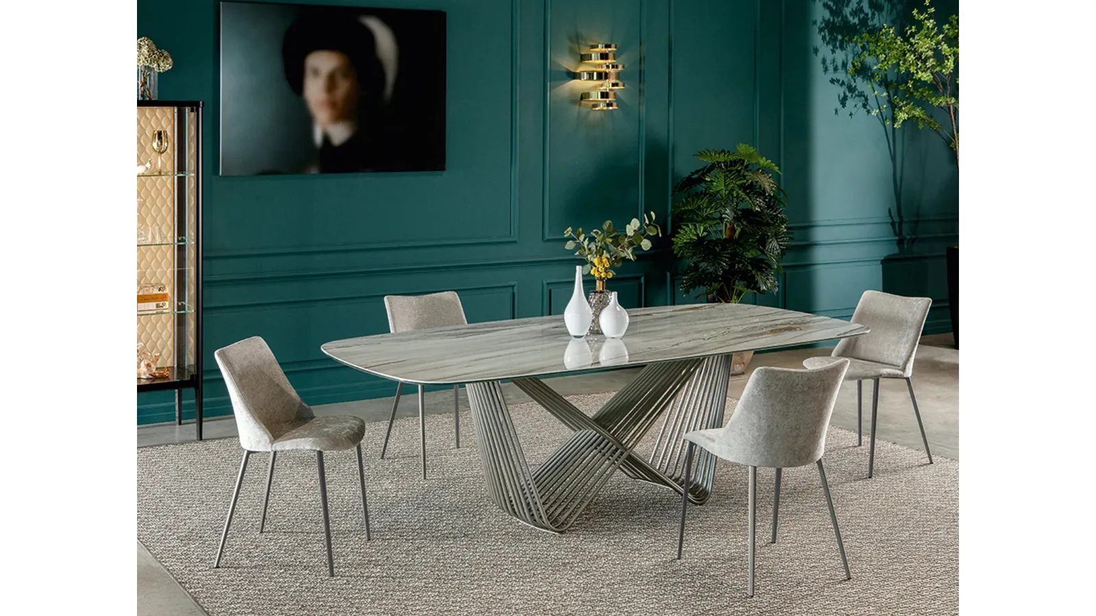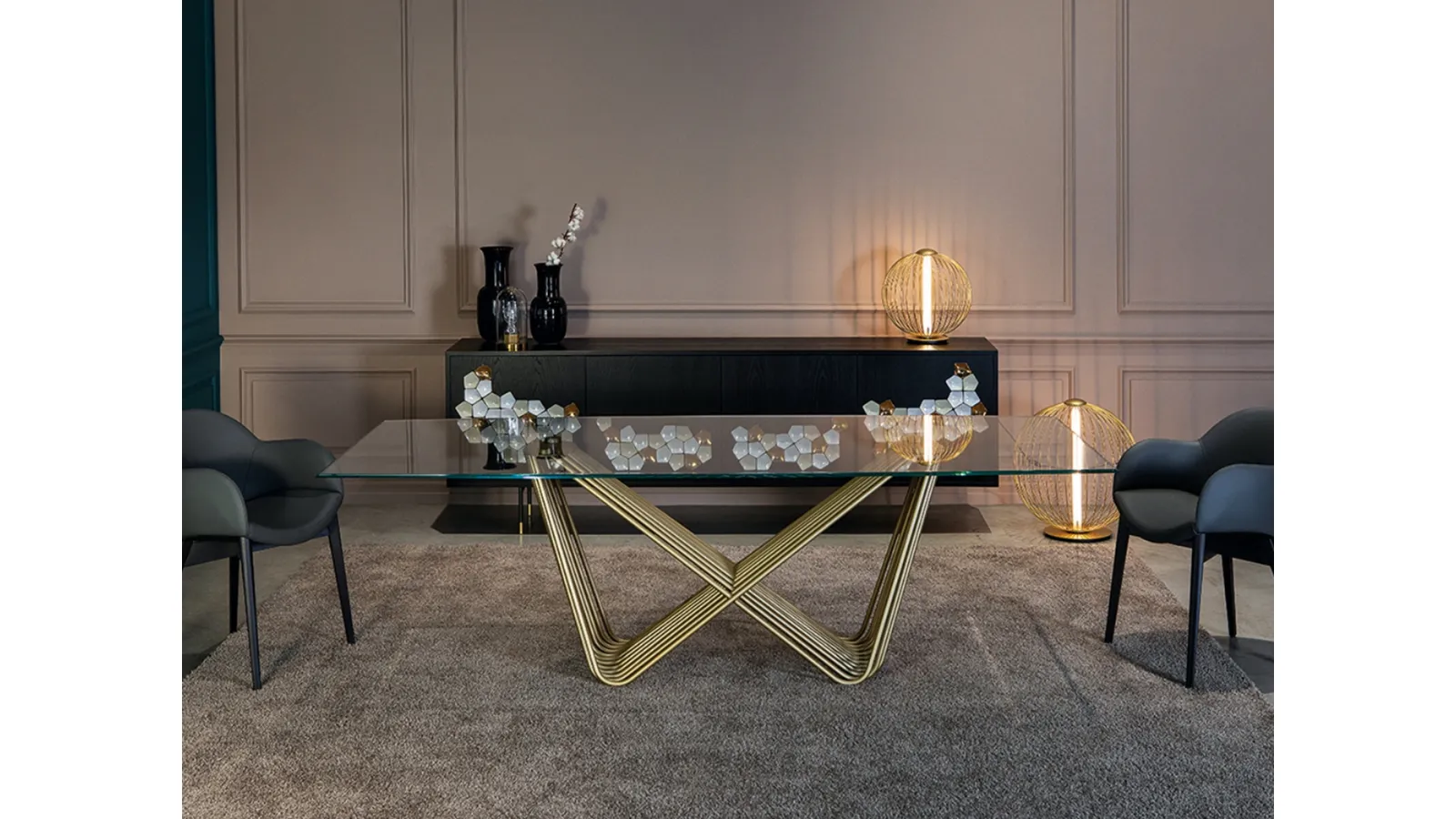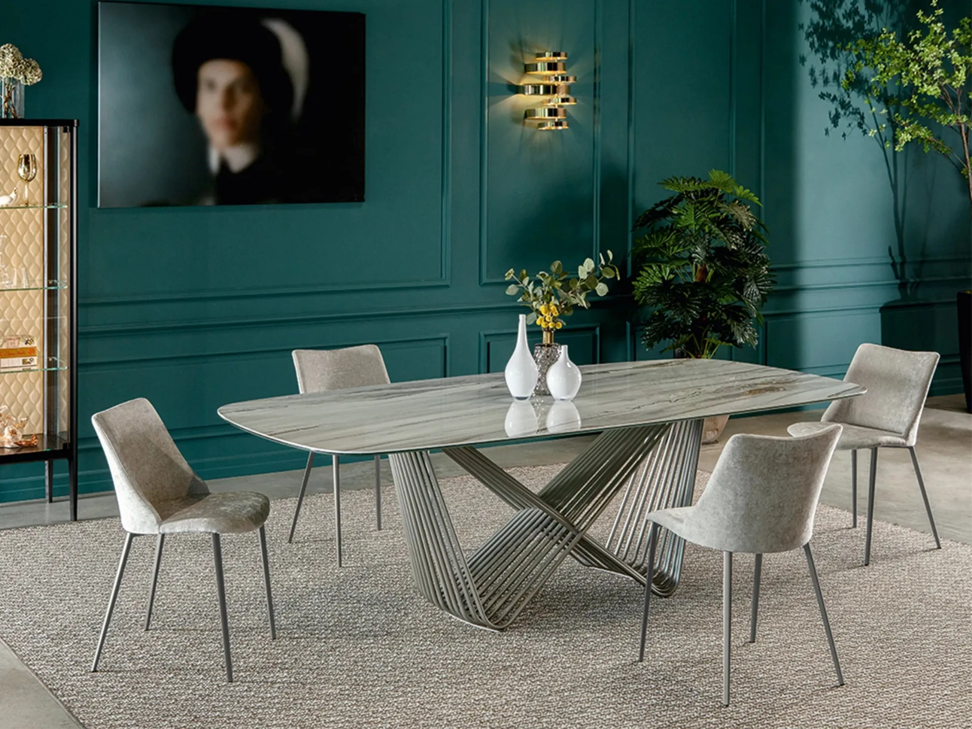 Ideal for creating unique combinations with chairs and design accessories, the fixed tables of the brand are among the most beautiful solutions on the market, ideal for the living room and the kitchen. The renowned Tonin Casa brand, leader in the production of glass furniture, has chosen a great variety of materials, shapes and shades for its series. A model like the one in the photograph, combined with the right seats, will be able to enrich the atmosphere of the rooms of the house absolutely dedicated to hospitality. Tenso table by Tonin Casa : made of precious materials, it is characterized by the decisive shapes of the top and an elegant and refined base. If you want a high quality dining table, contact us and receive info and quotes on the model visible in the photo.
