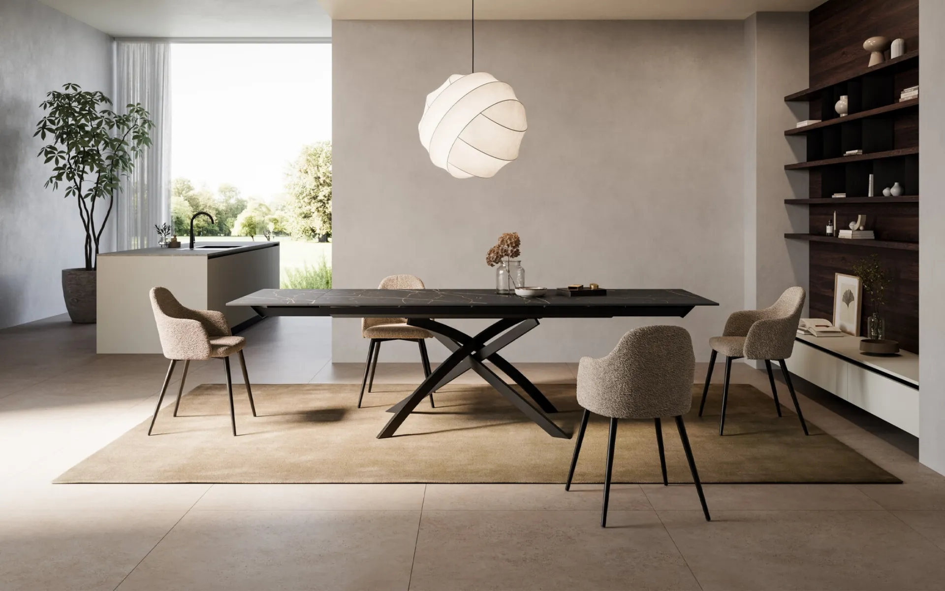 At our store, you will find a wide range of extendable tables from the best brands, including the dining model visible in the photo. When choosing the perfect table for you, you must consider dimensions, lines, finishes, and style to optimize the space with great aesthetic value. Choose furniture and accessories from the best brands to complement your interiors with functionality without ever neglecting the aesthetics. Whether you want to renew the design furniture you have at home or buy them for the first time, you can see the most exclusive solutions on the market in person at our store. In our website dedicated to home furnishings, you will find everything you need for the living room or kitchen area.