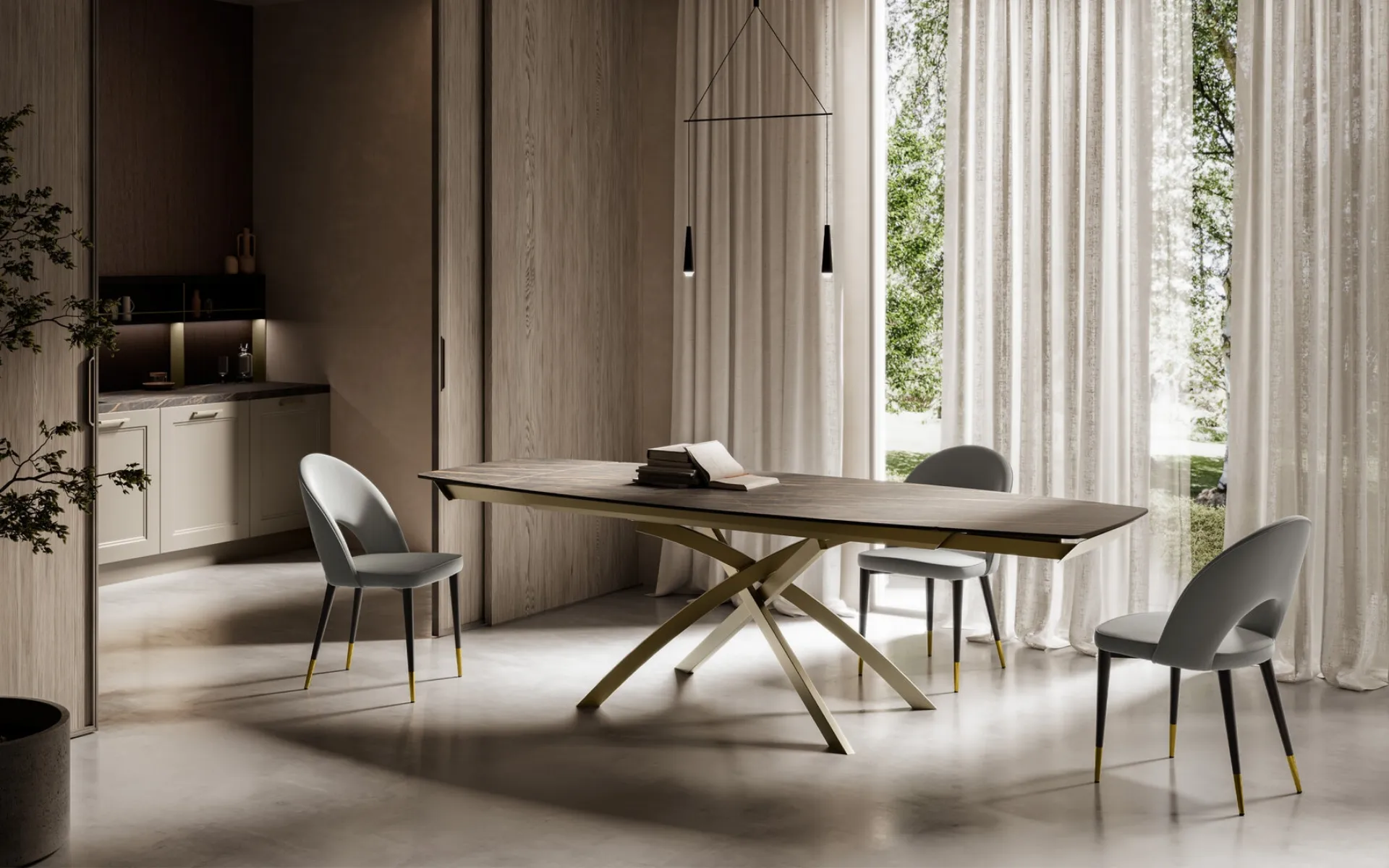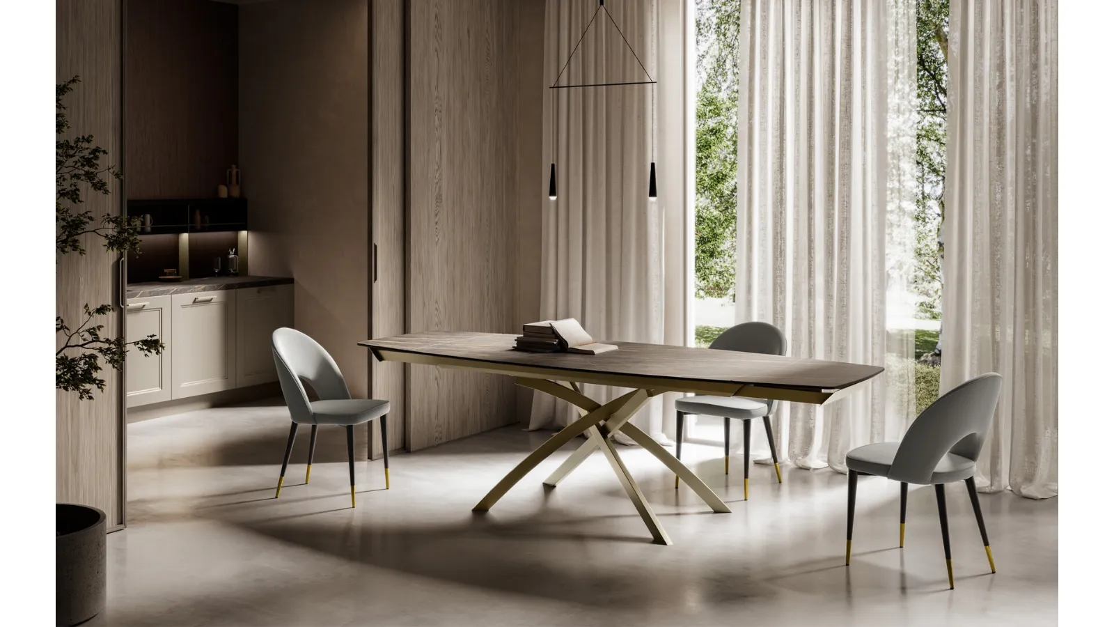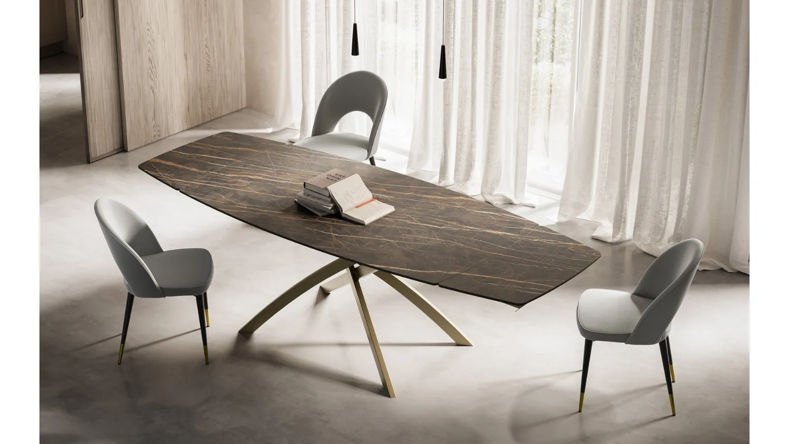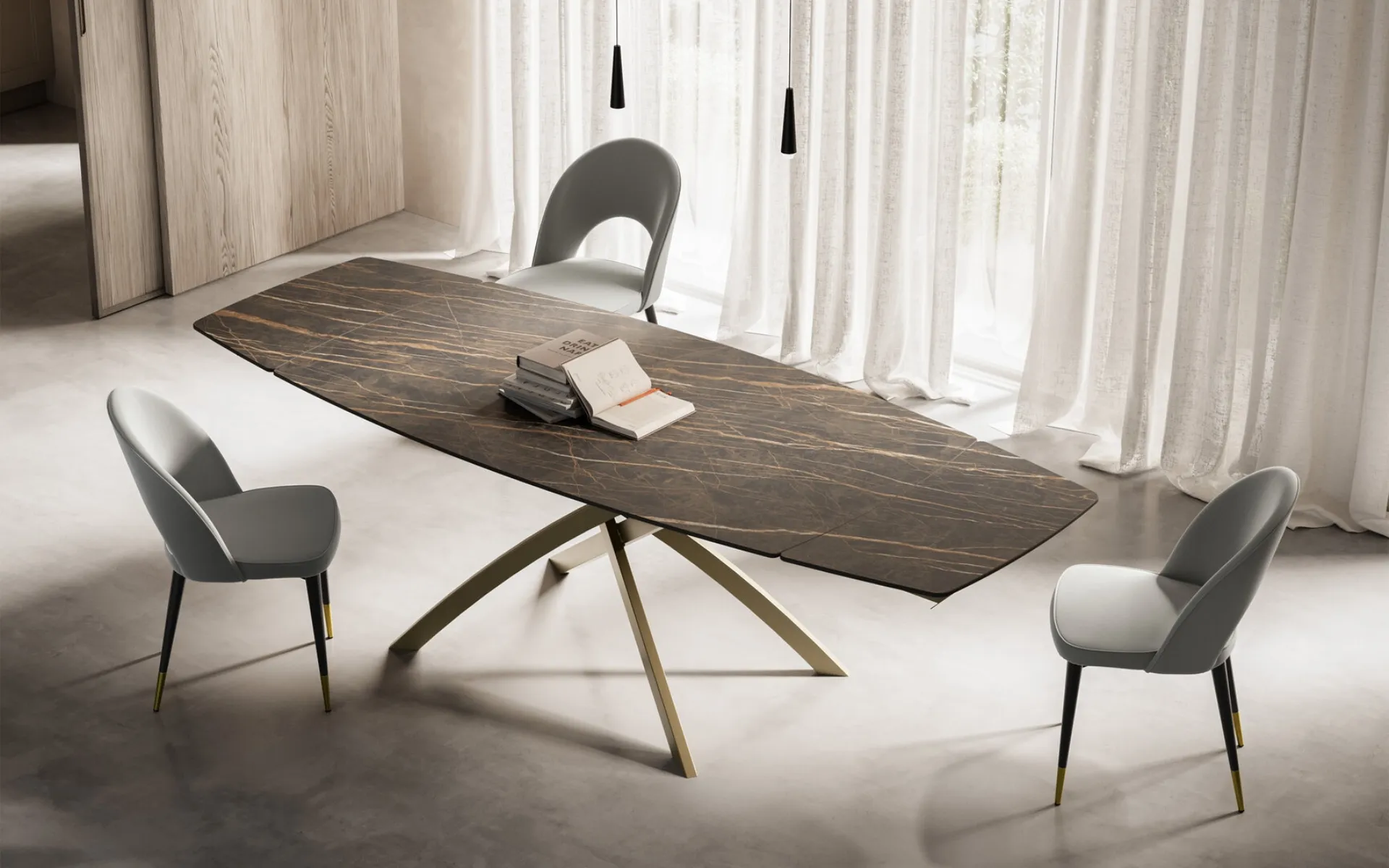 Discover our collection of extendable design tables, where you will also find the Toledo gres model