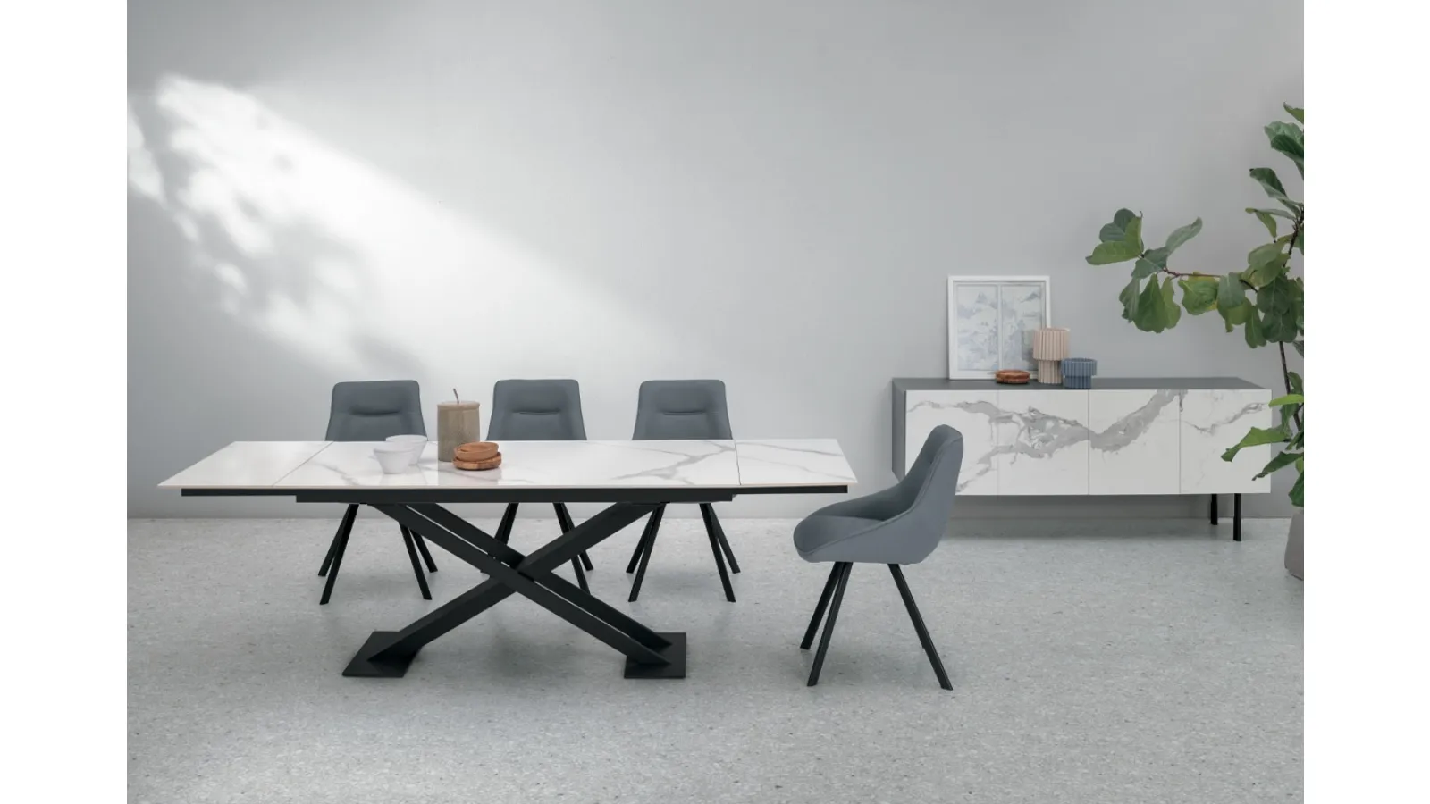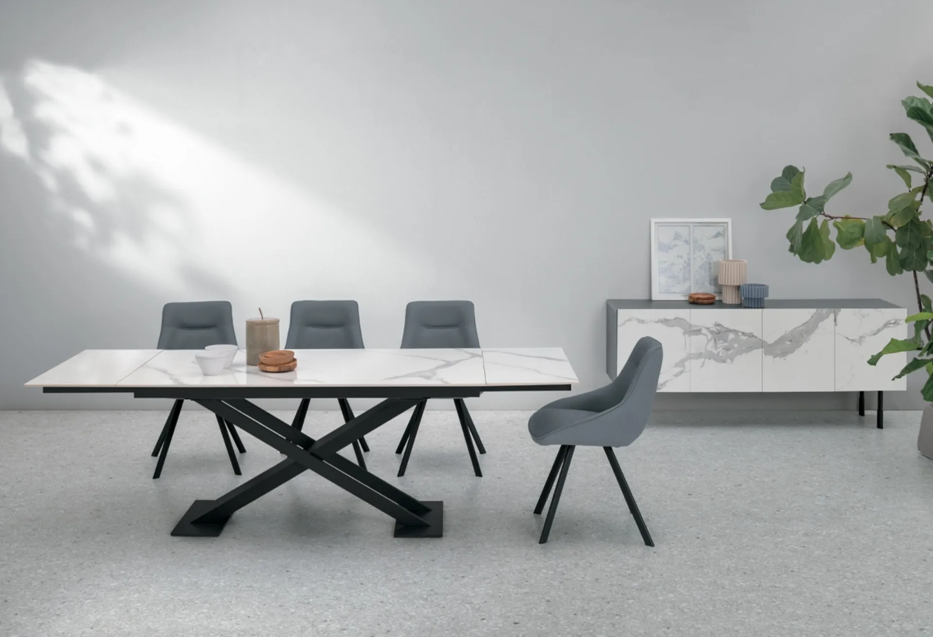 Extendable stoneware models like the one visible in the photo adapt to a variety of living contexts, being truly versatile and resistant. Tables are indispensable pieces of furniture in every home: complete your furnishing concept and bring your dream home to life. Tables are furnishing accessories with which you can embellish the living room, the kitchen area, or even other rooms in the house, thanks to high-quality materials and imaginative color combinations. Extendable Tolomeo table by Target Point: discover a wide range of dining furniture and accessories to complete your interiors with various customization options. Fill out the form and contact us to discover the best brands of home furnishings, tables, and chairs under the Target Point brand.