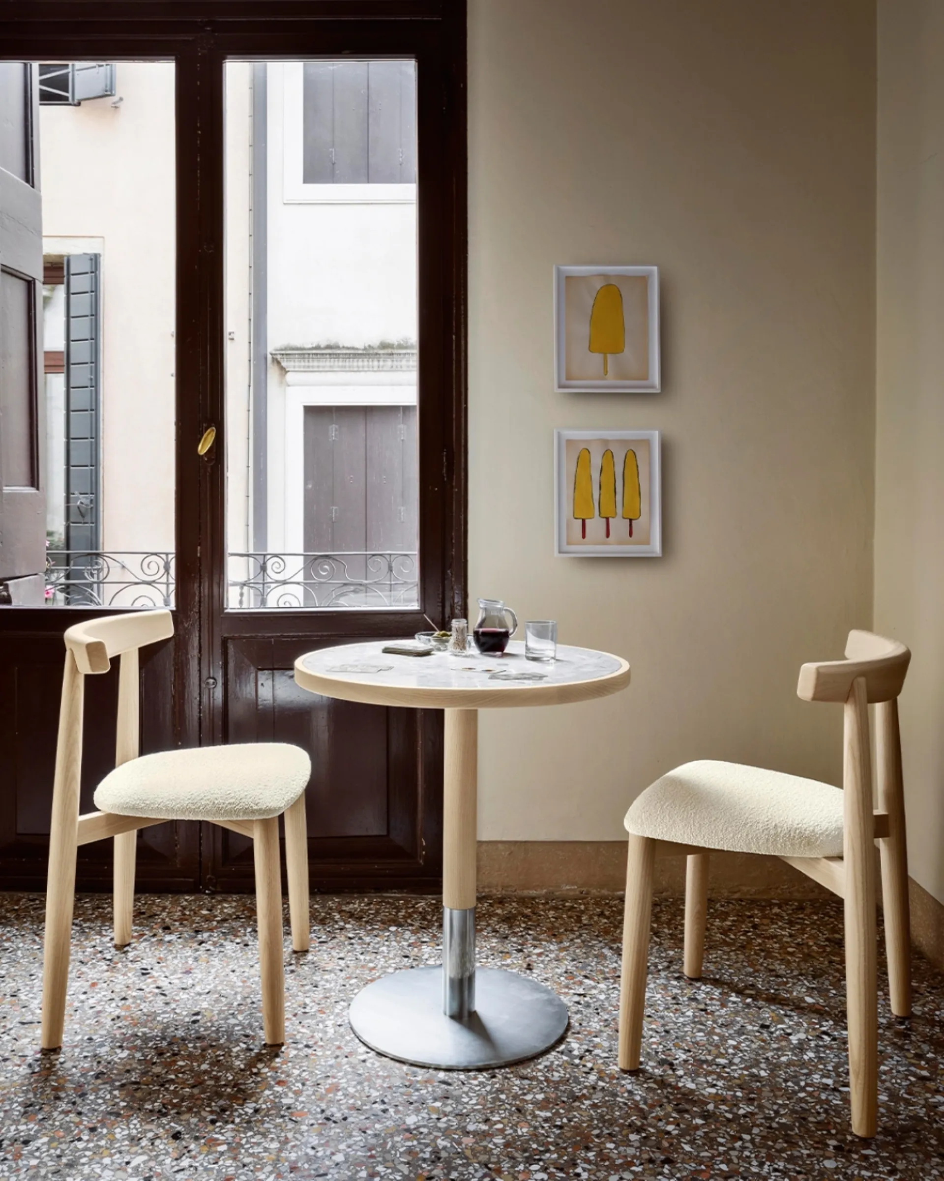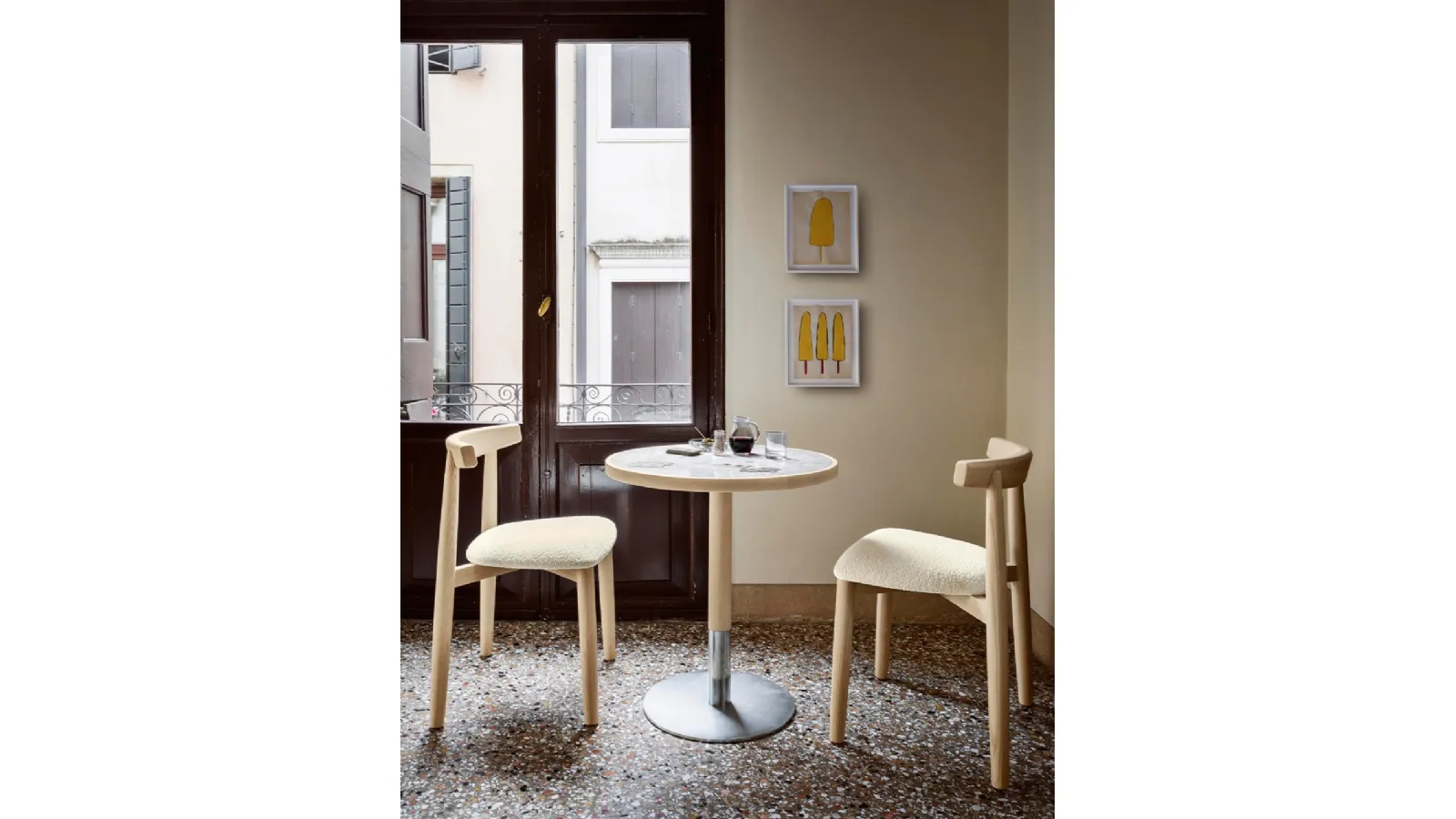 The round Briscola table by Miniforms awaits you to complete a modern kitchen or dining room.