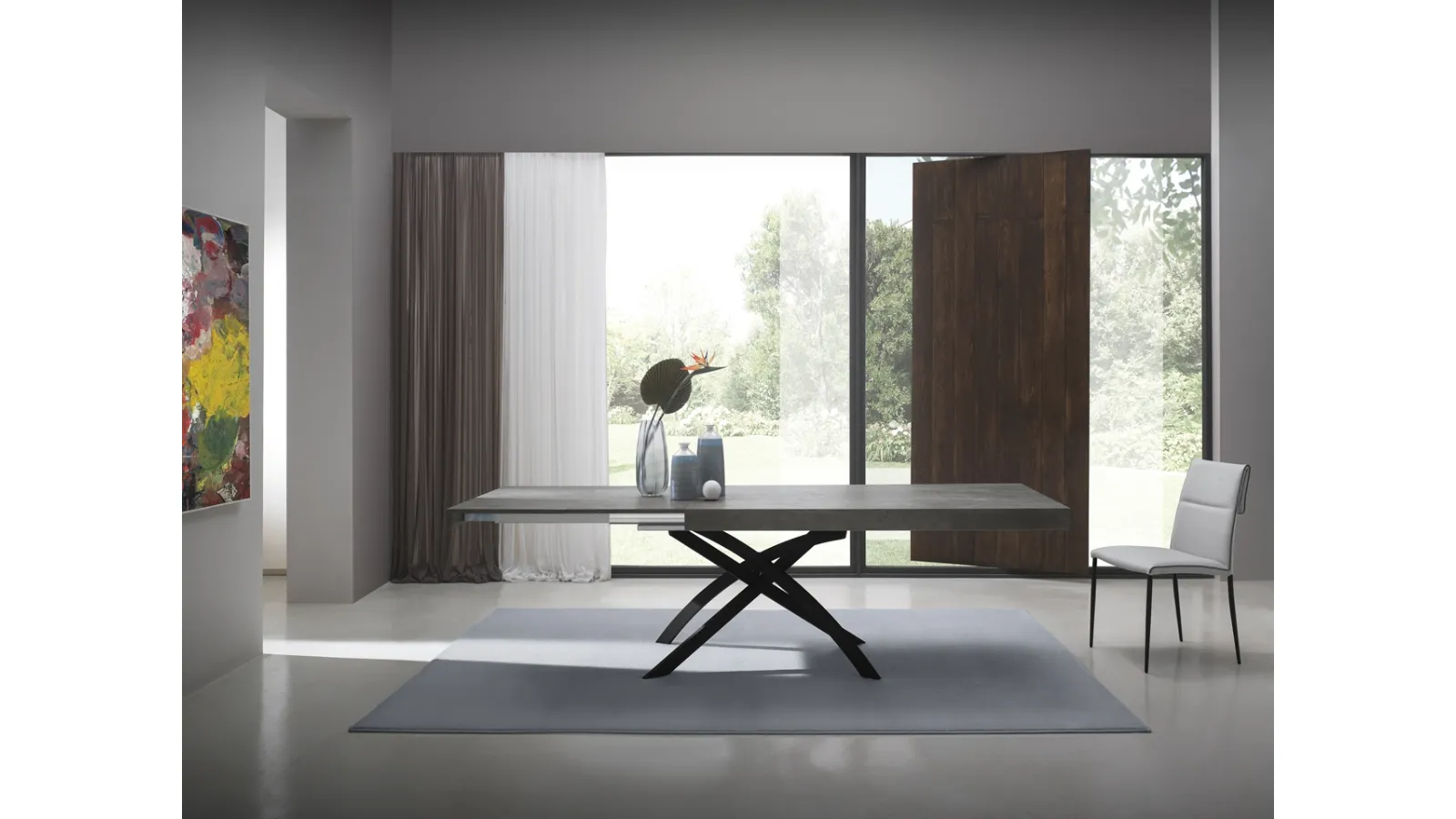 Extendable Twist table in Zamagna cement melamine: with this model you can enhance modern spaces, guaranteeing maximum modularity and customization of extendable tables. In the showroom you can find a rich catalog of furniture and accessories in melamine from the best brands, ideal for completing your spaces. Contact us for information and quotes or discover in store the other most beautiful melamine dining proposals from Zamagna, an example of the quality assured by the brand. The choice of dining tables is fundamental if you want to complete your Home Furnishing: available spaces, chromatic combinations and materials must be taken into consideration.