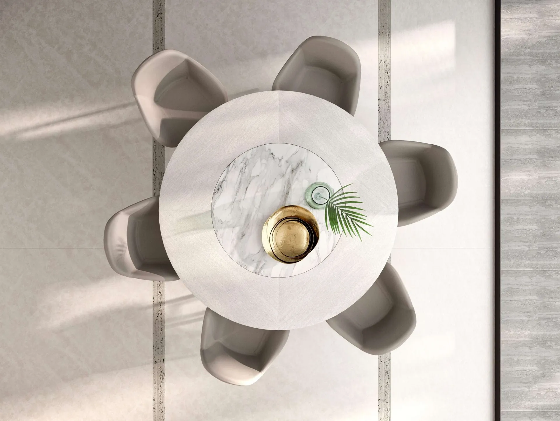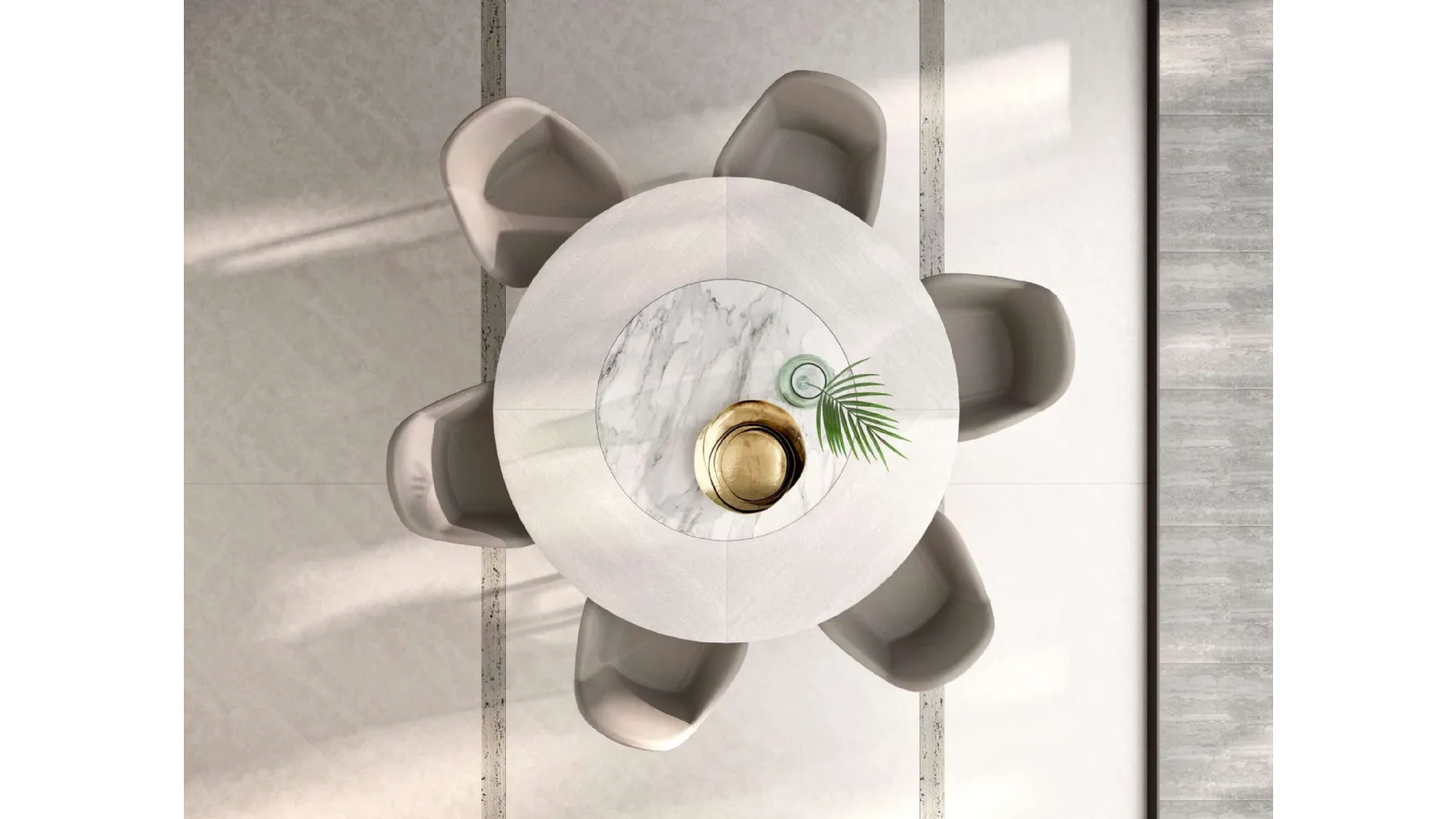 Il tavolo allungabile Veliero di Ozzio Italia si caratterizza per un'estetica innovativa, definita da una robusta base in legno modellata per evocare l'elegnza delle vele. La spaziosa superficie superiore integra un pratico vassoio Lazy Susan in ceramica, dotato di rotazione a 360°, progettato per migliorare l'interazione e la fruibilità durante i pasti. La struttura portante è realizzata in legno di alta qualità, mentre il vassoio girevole è disponibile in ceramica con diverse opzioni di finitura, inclusa la raffinata Ceramica Calacatta (CC07). Questo sistema costruttivo garantisce durabilità e un'esperienza d'uso ottimizzata, sottolineando l'eccellenza dei materiali impiegati e la versatilità delle personalizzazioni disponibili.