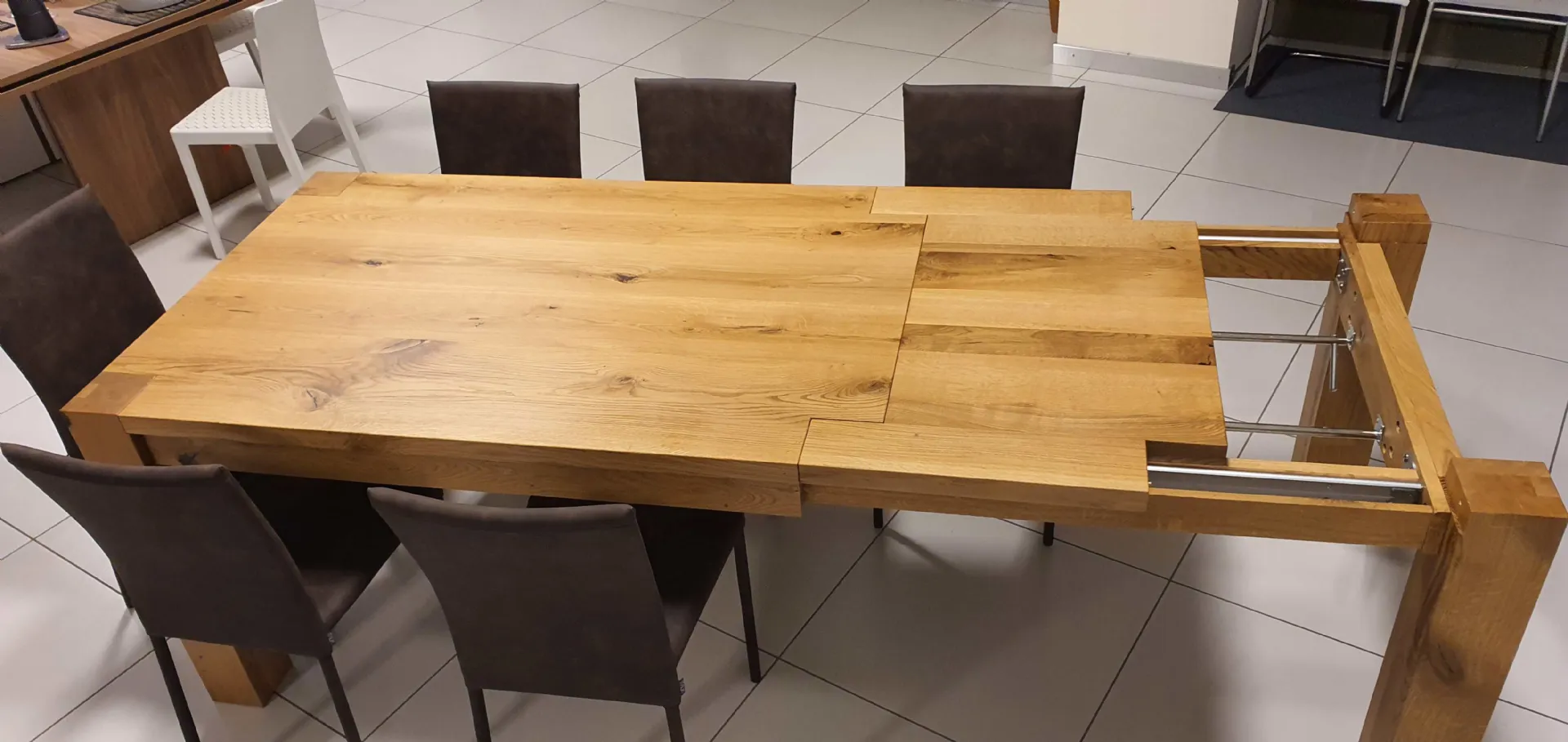 VIVIDO 2 model table characterized by a simple but highly technological design that highlights the tenacity of the wood. Thanks to the integrated wooden extensions with aluminum rails, made in Germany, è guaranteed maximum functionalityà ;.