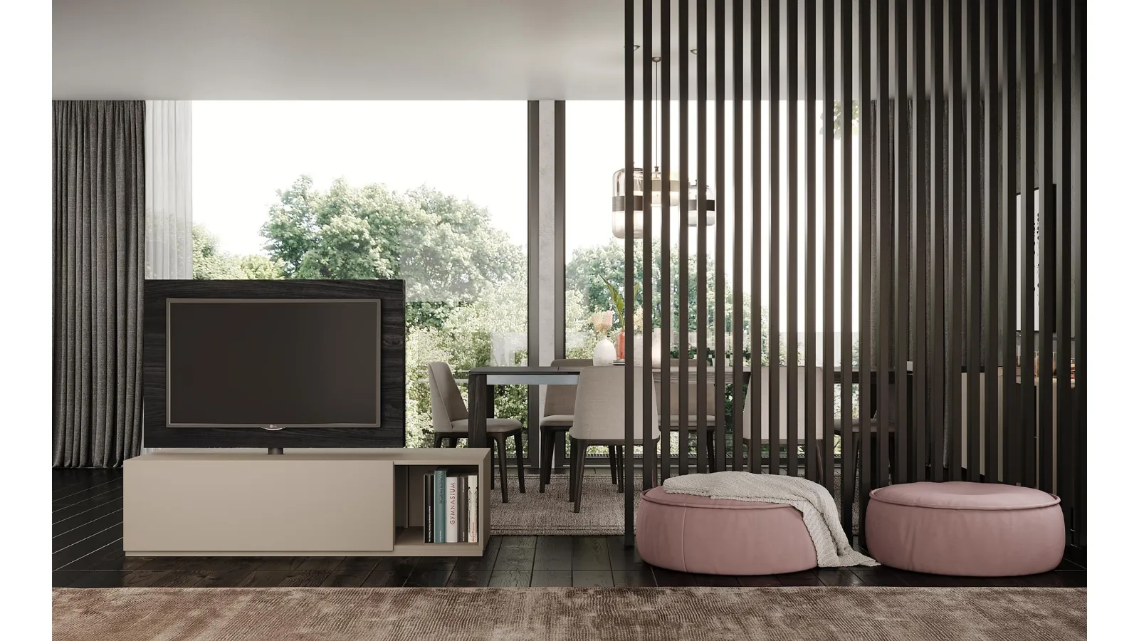 A wide selection of modern TV stands made in matte lacquer awaits you, along with the Free View 360 model.