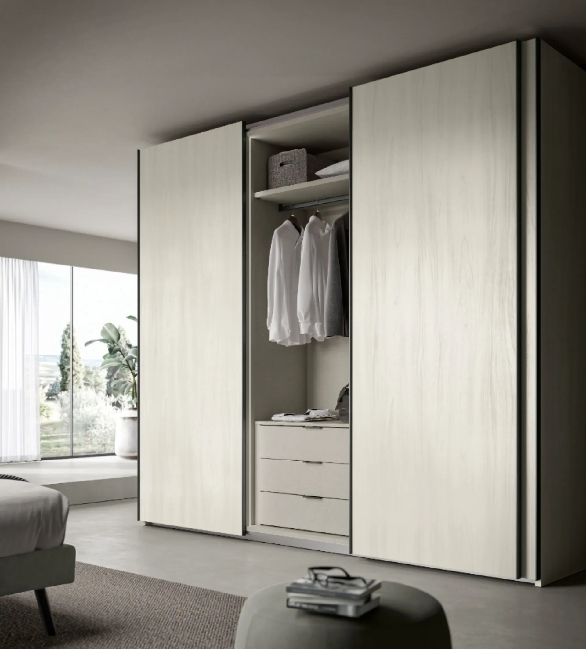 Rusconi Arredamenti offre soluzioni per l'organizzazione interna degli armadi Spagnol Mobili?Assolutamente sì. Grazie alla progettazione 3D e ai rilievi misure in loco, possiamo creare configurazioni interne personalizzate con ripiani, cassetti e accessori, ottimizzando ogni vano del tuo armadio.
