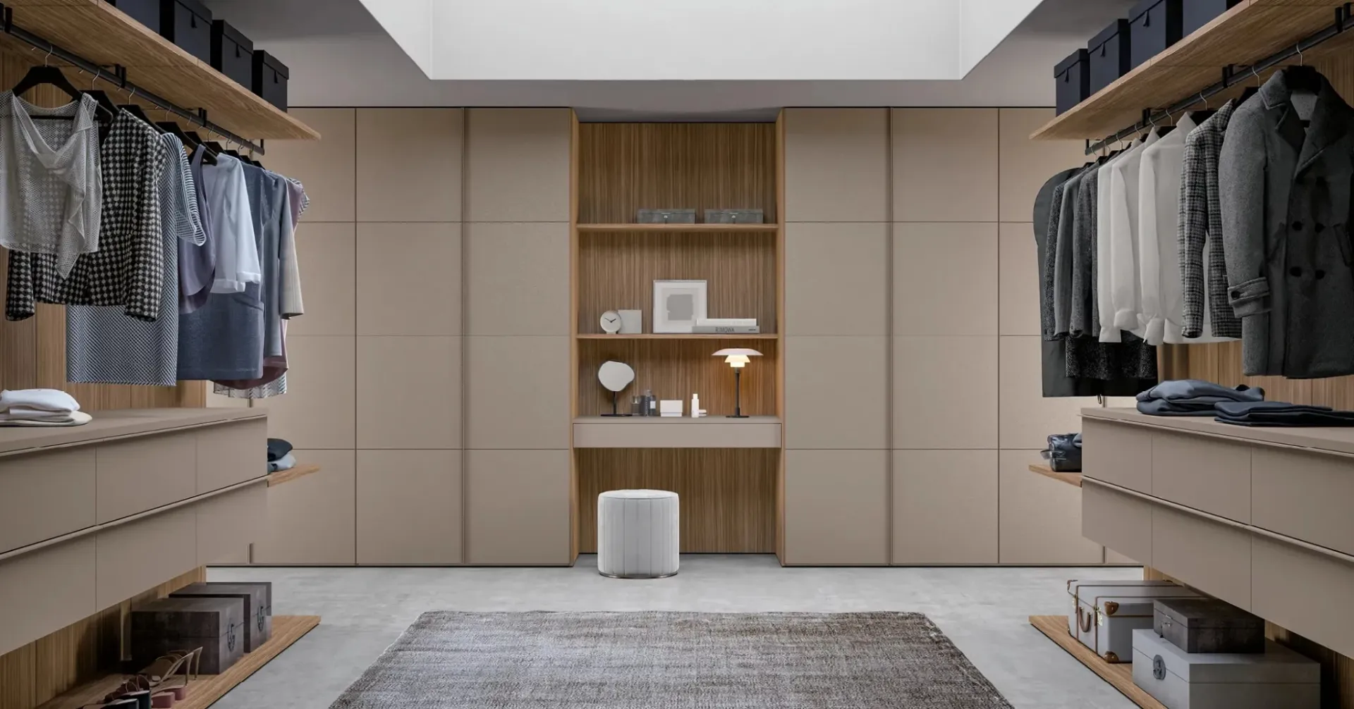 È possibile personalizzare l'armadio "Atelier con Nicchia" e visionare i materiali disponibili?Sì, è possibile personalizzare le dimensioni standard dell'armadio "Atelier con Nicchia". Presso il nostro showroom, potrai visionare un'ampia materioteca con campioni di tessuti, legni e laccati per la tua scelta.