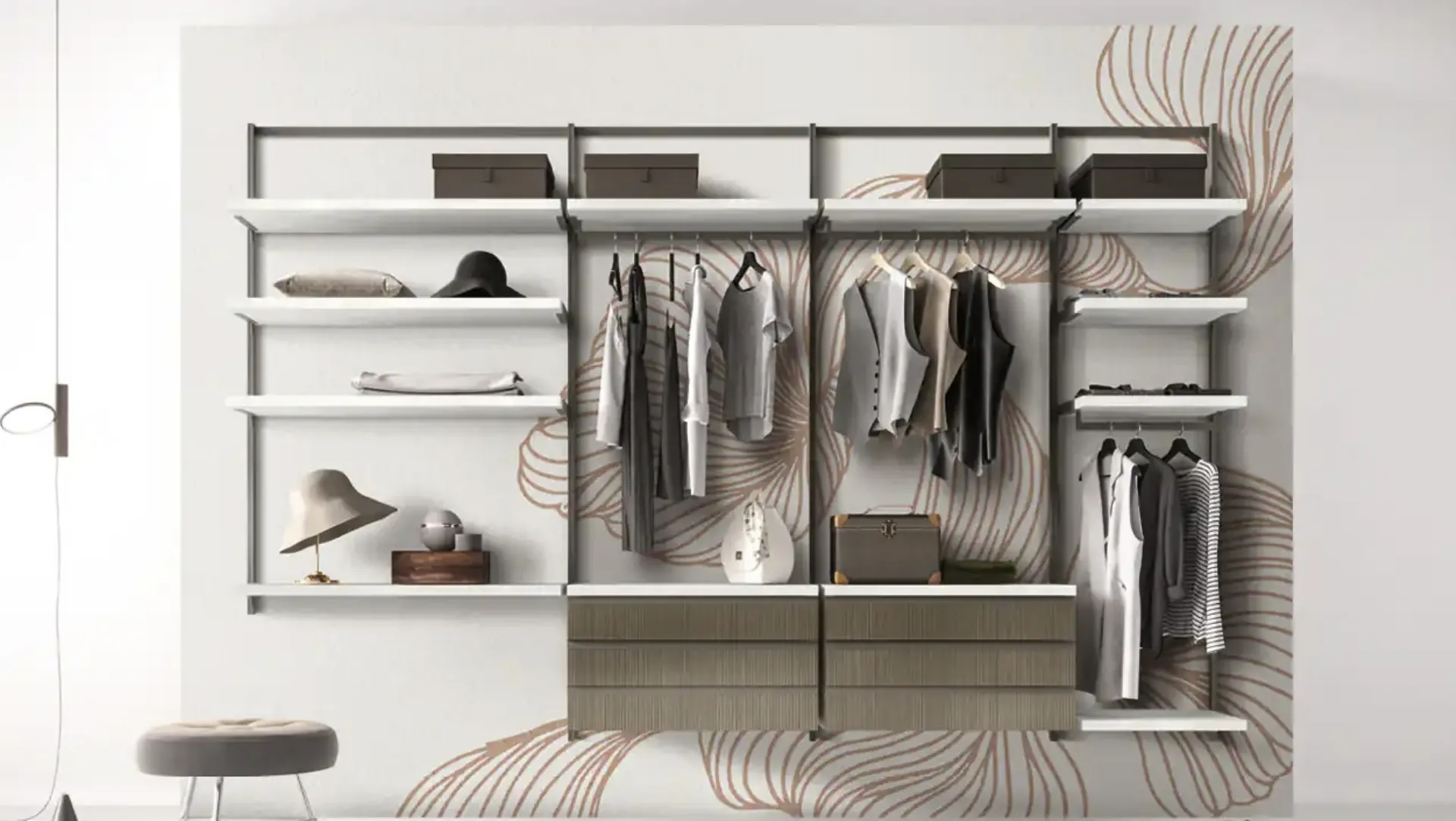 Come posso configurare l'interno della cabina armadio Orion O422?La cabina armadio Orion O422 offre ampia flessibilità nella configurazione interna con ripiani, cassetti e tubi appendiabiti. I nostri esperti ti guideranno nella scelta degli accessori per ottimizzare ogni vano, creando la soluzione perfetta per le tue esigenze.